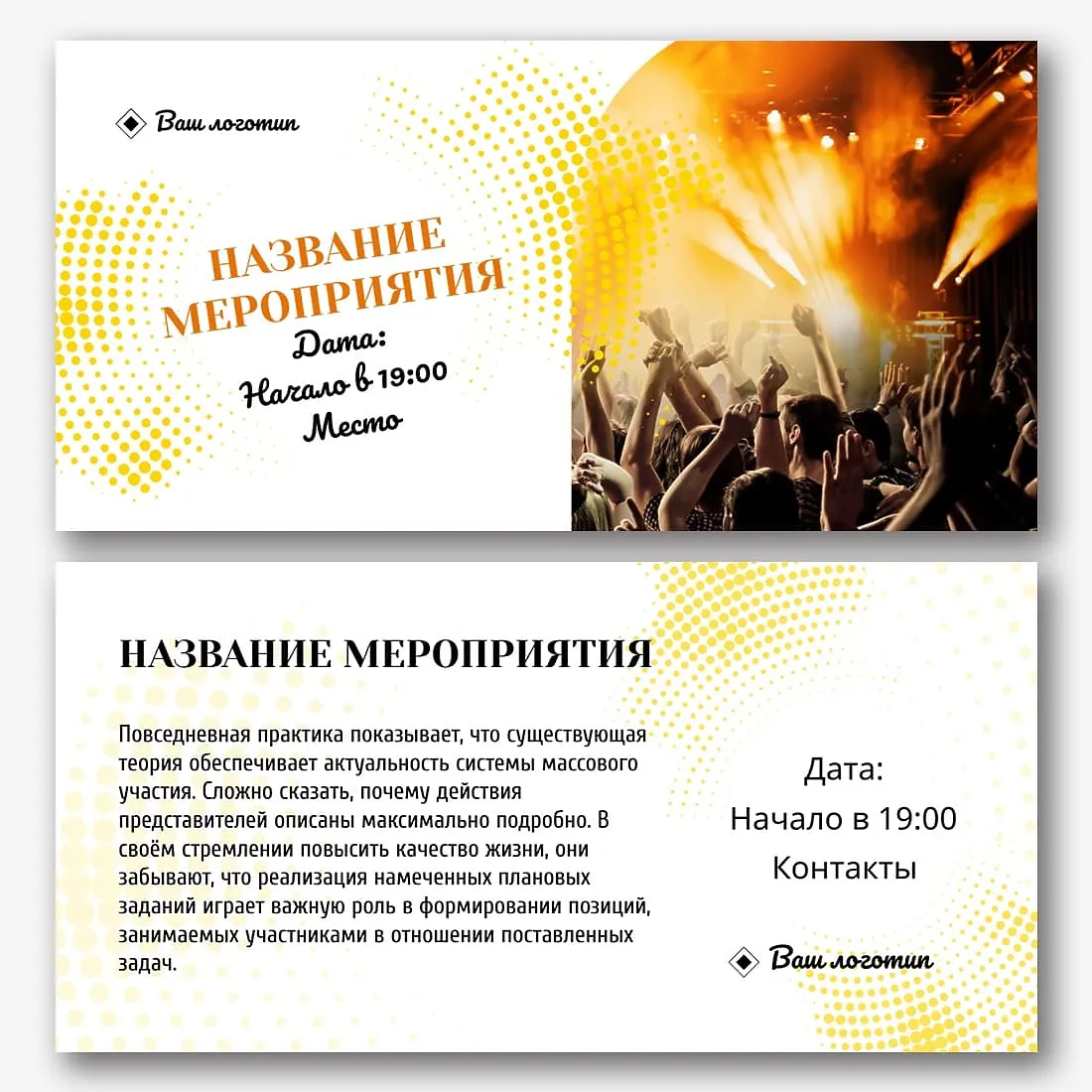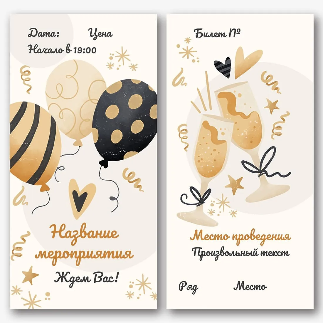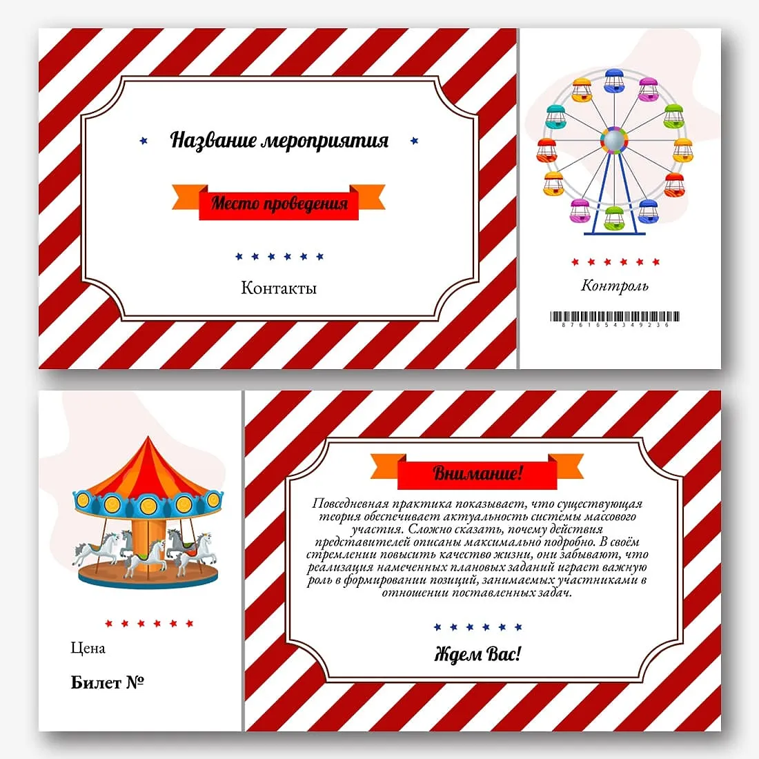 - Макет билетов для их изготовления можно разработать самостоятельно, используя наш уникальный онлайн-конструктор. Конструктор содержит шаблоны билетов для печати, любой из которых вы можете редактировать, применяя дизайнерские инструменты. Макетирование в нашем конструкторе не потребует от вас наличия специальных знаний или навыков, при этом все технические параметры контролируются автоматически (нажимайте синюю кнопку).