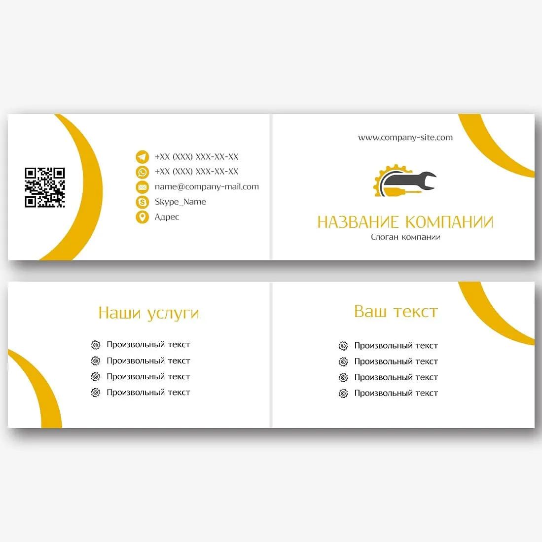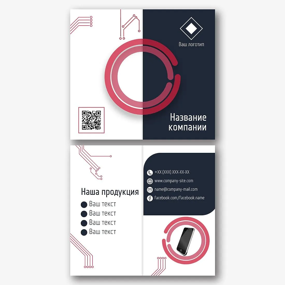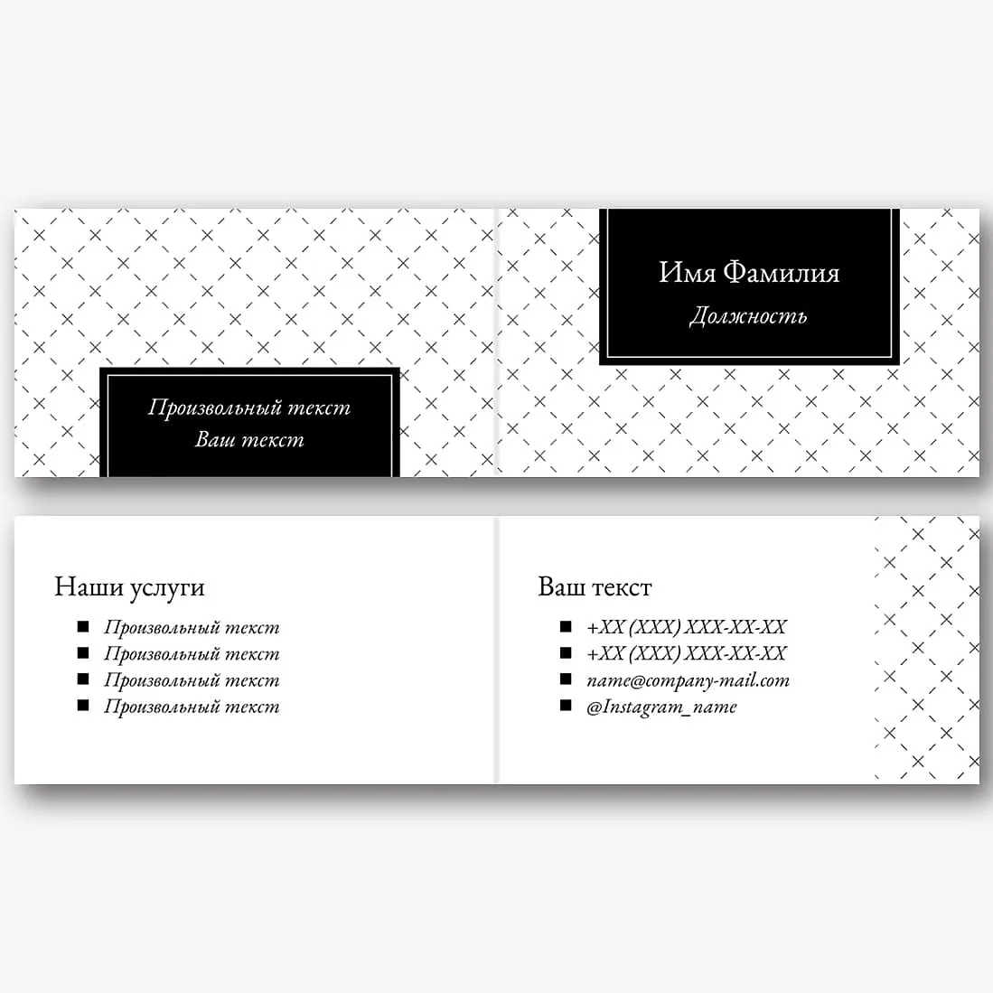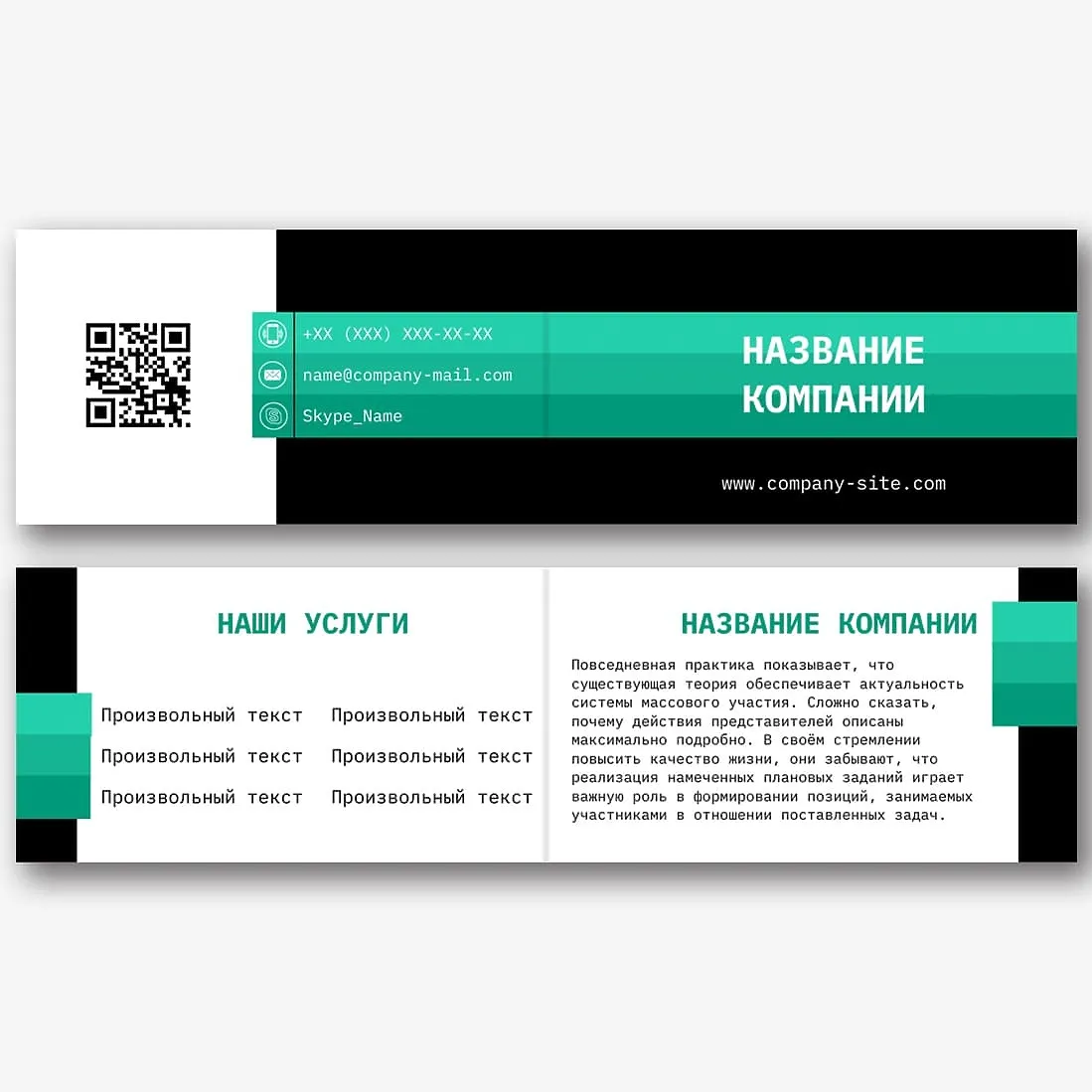 Благодаря этому двойная визитка легко поместится в визитницу, но позволяет разместить на четырех страницах гораздо больше информации, чем это возможно в классическом варианте, например: