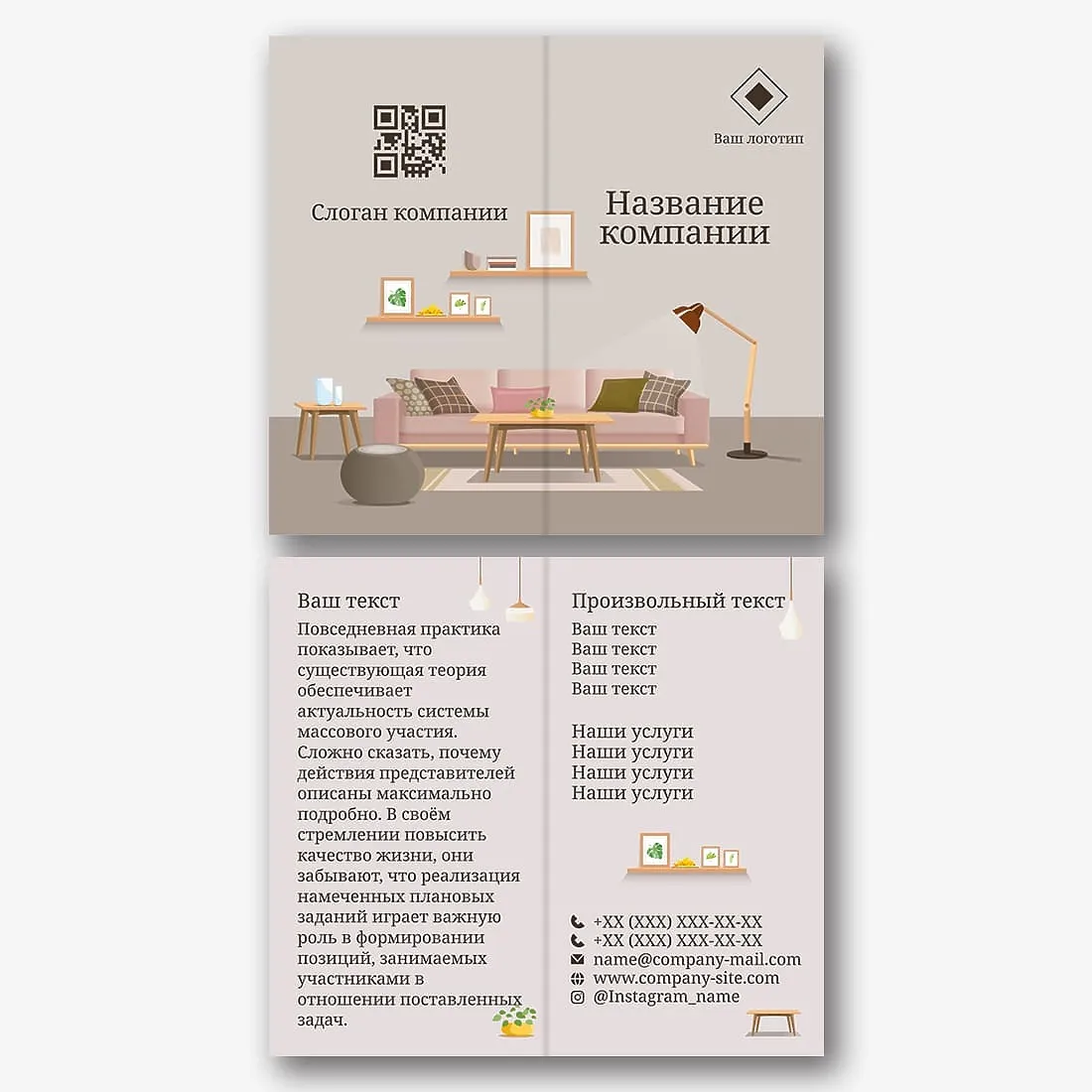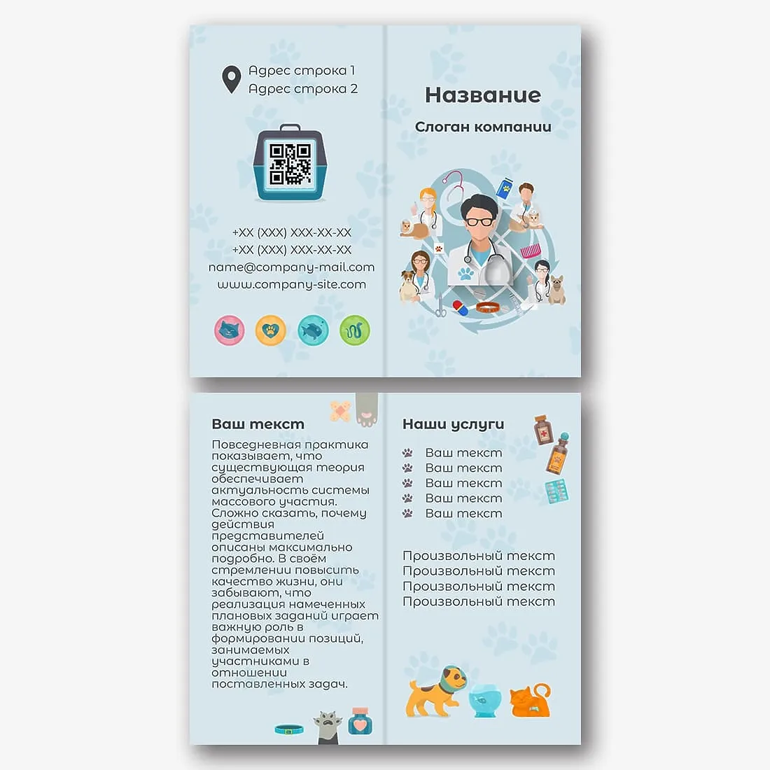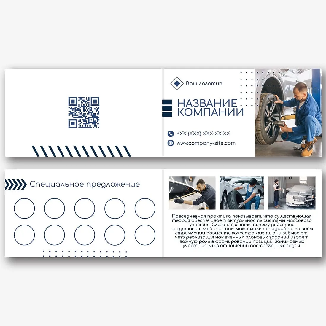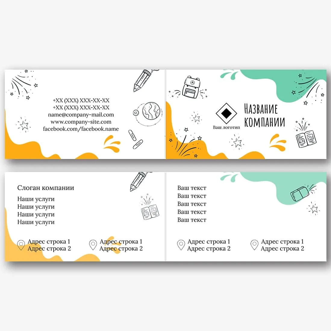Благодаря этому двойная визитка легко поместится в визитницу, но позволяет разместить на четырех страницах гораздо больше информации, чем это возможно в классическом варианте, например: