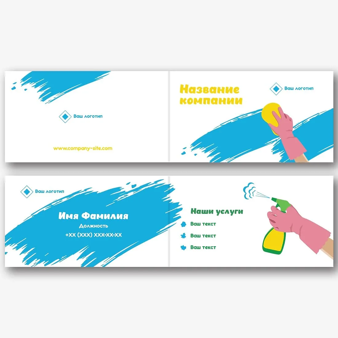 - Разработать своими руками макет двойной визитки в онлайн-конструкторе, используя множество готовых шаблонов макетов (синяя кнопка);