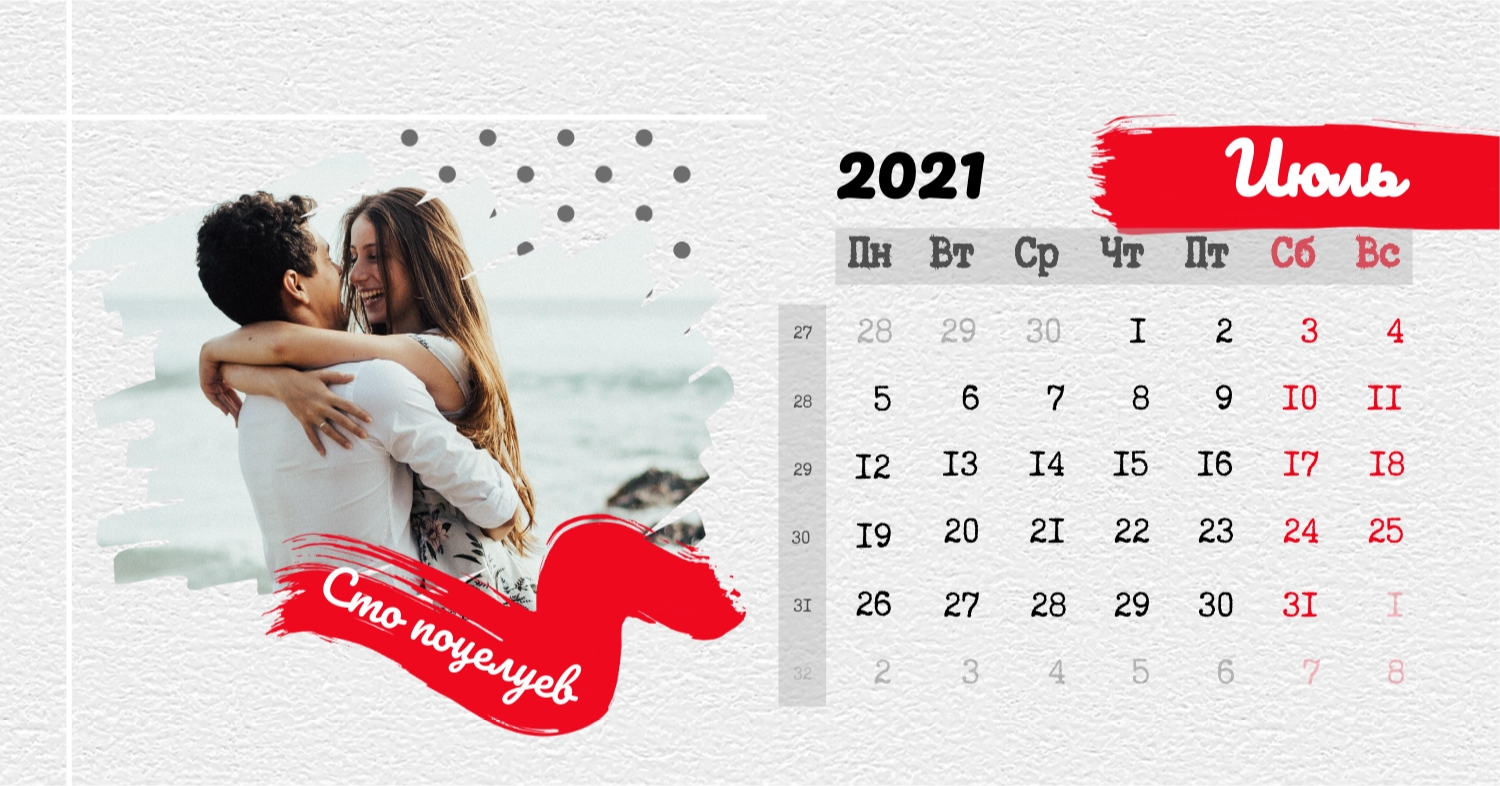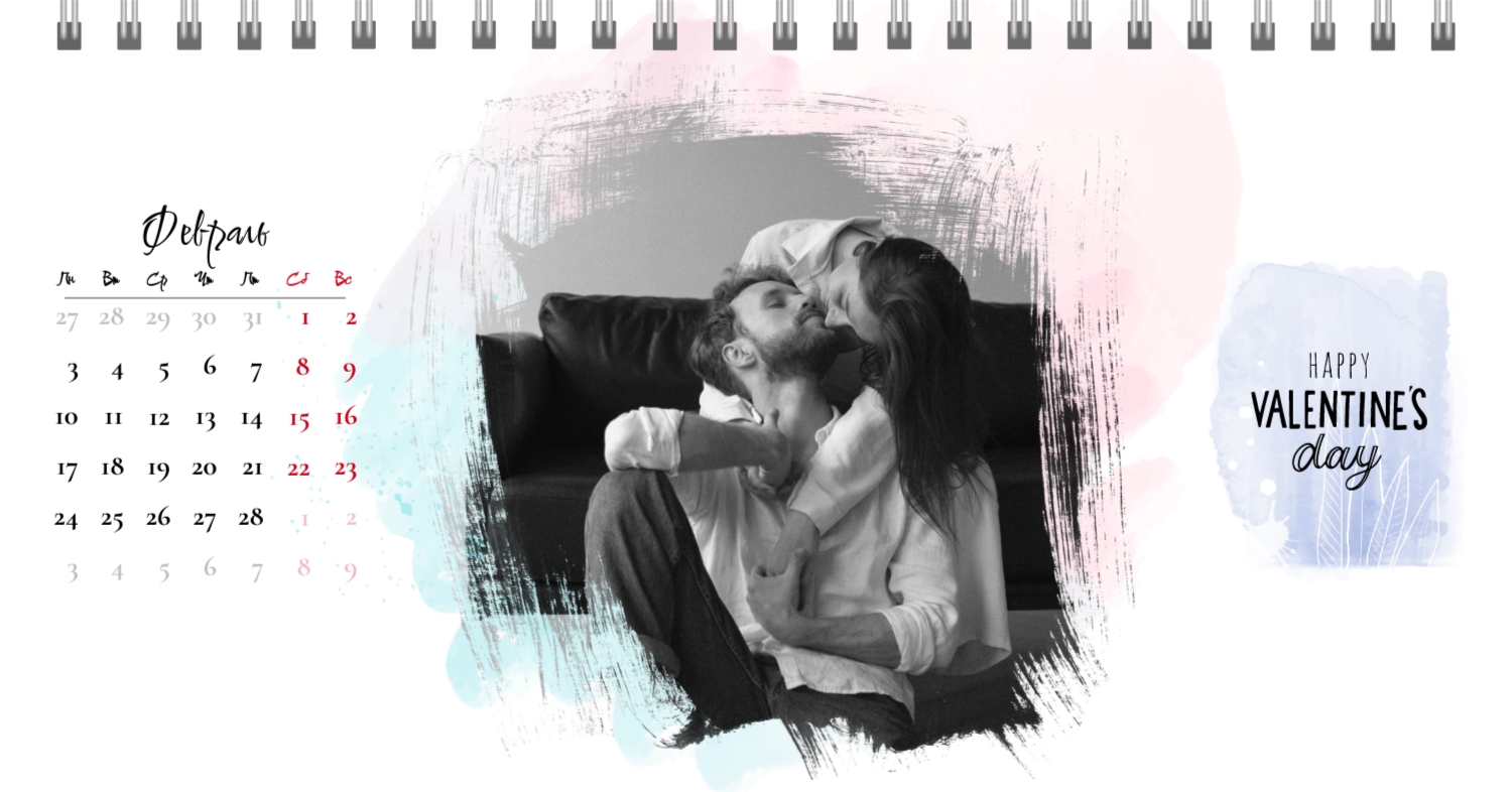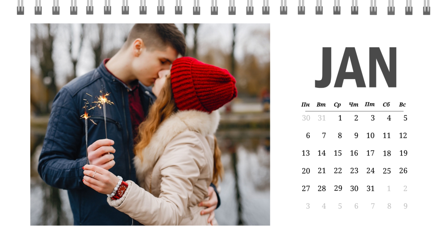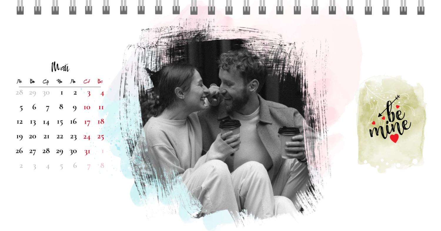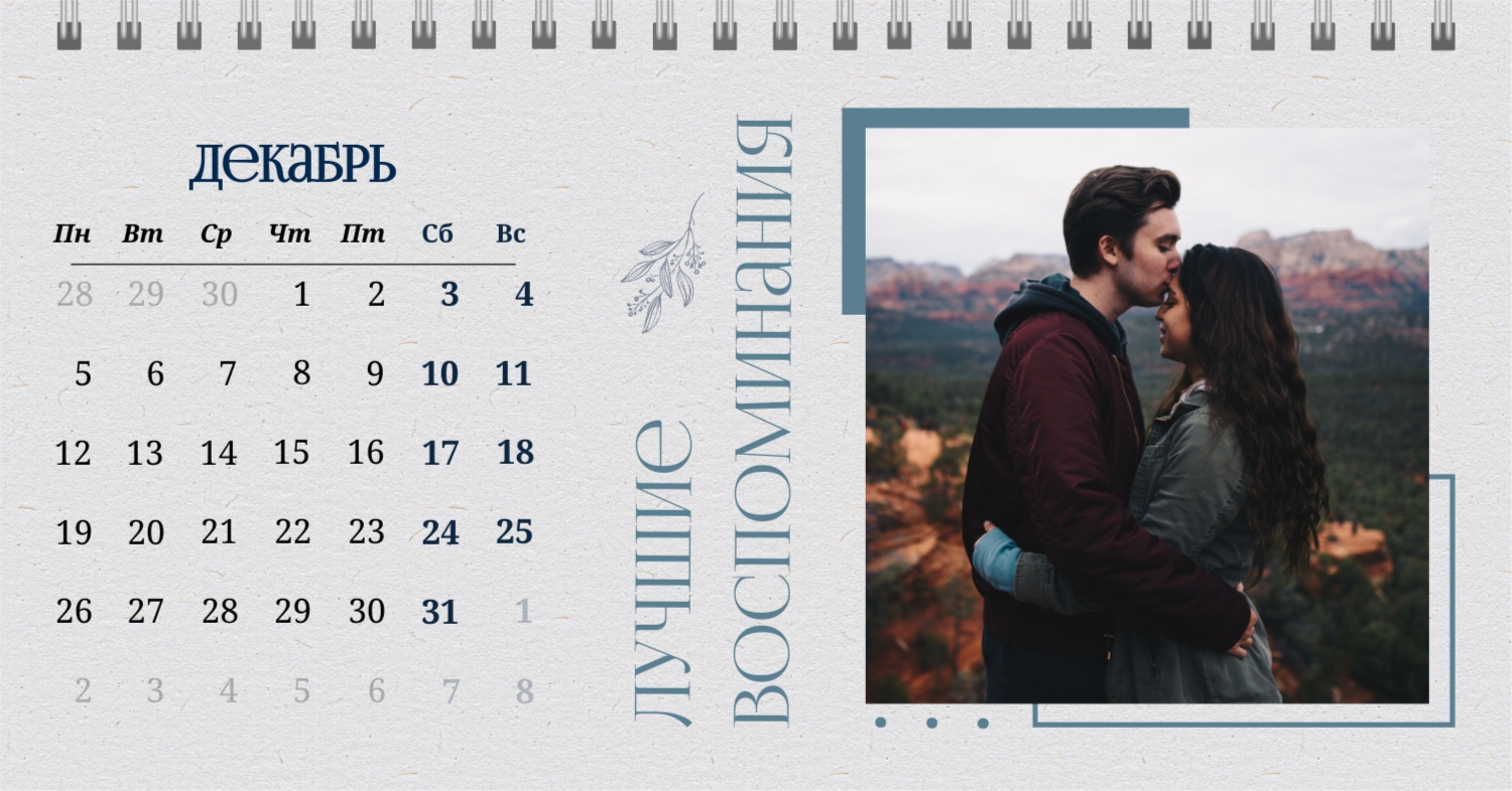 Бесплатный шаблон календаря c лучшими воспоминаниями влюбленной пары. Создайте макет своими руками в конструкторе календарей.