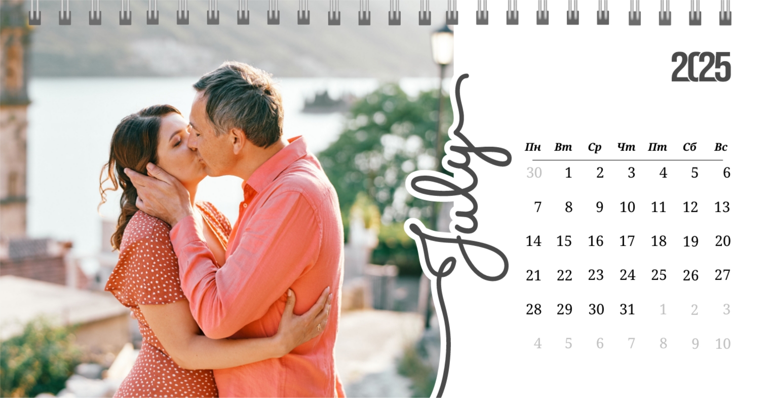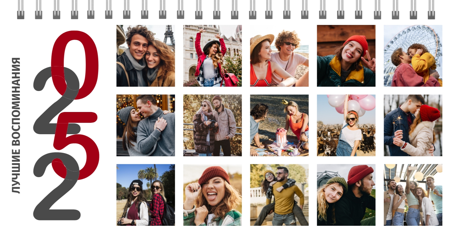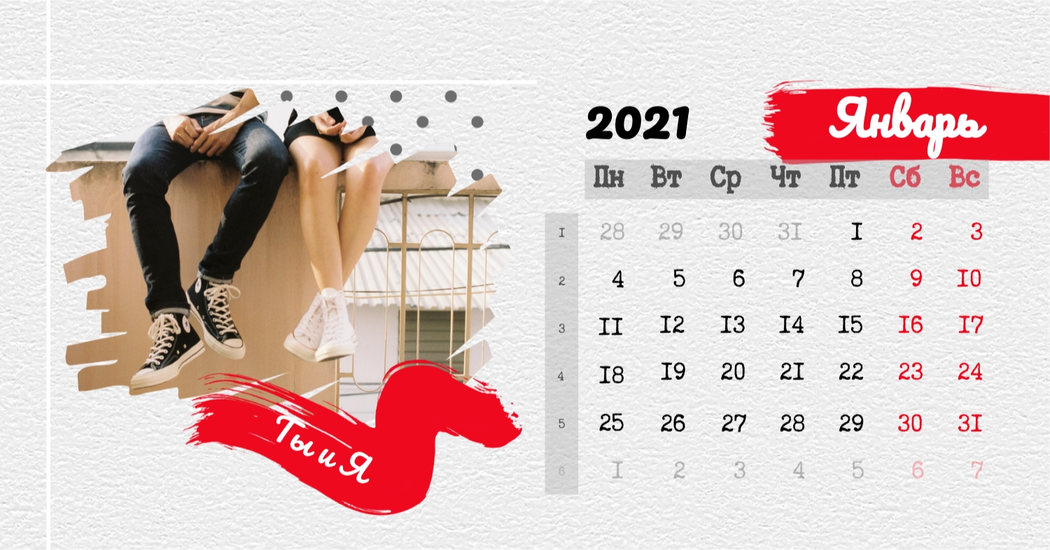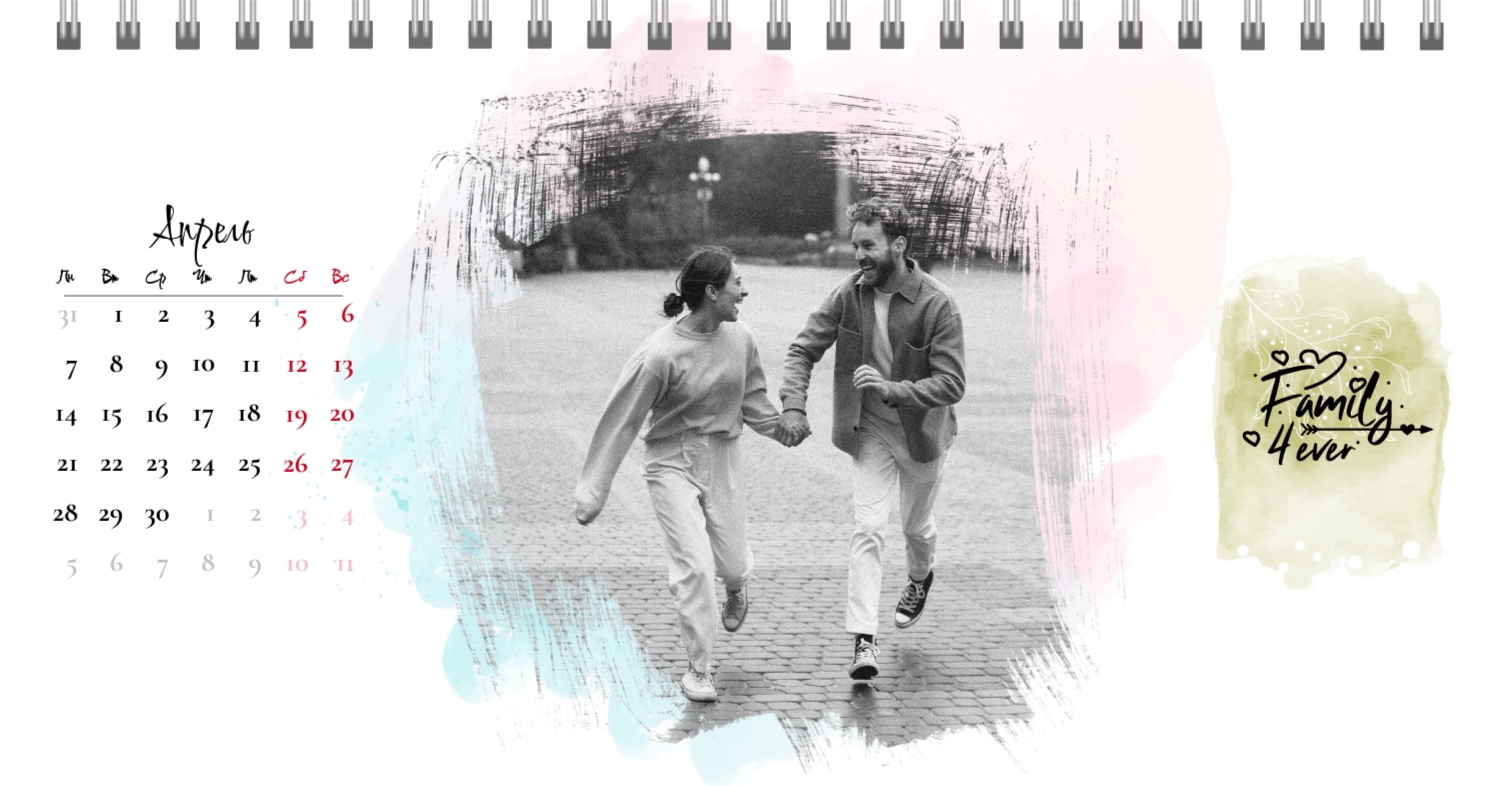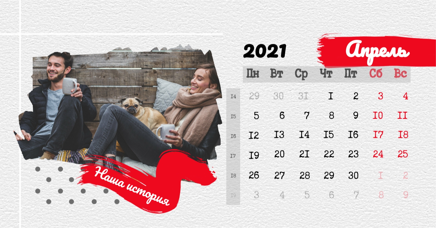 Бесплатный шаблон календаря c лучшими воспоминаниями влюбленной пары. Создайте макет своими руками в конструкторе календарей.