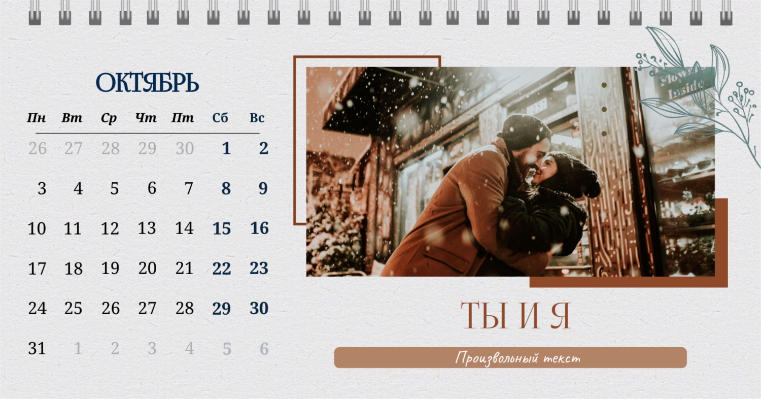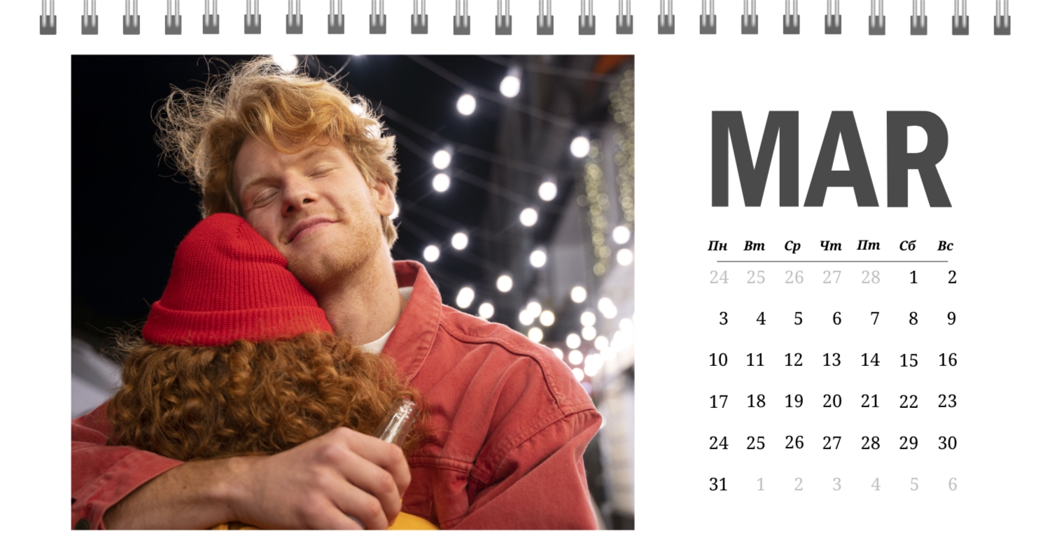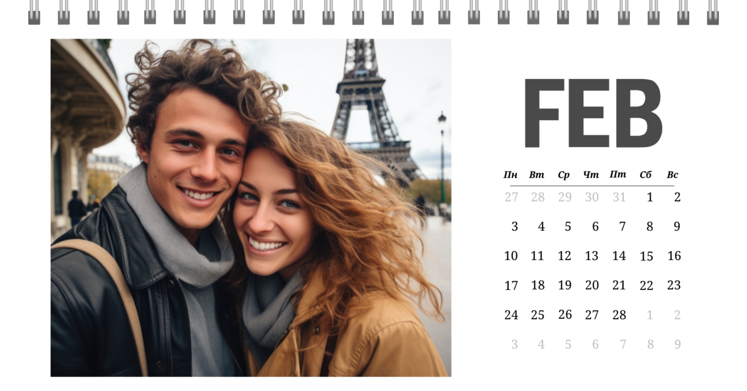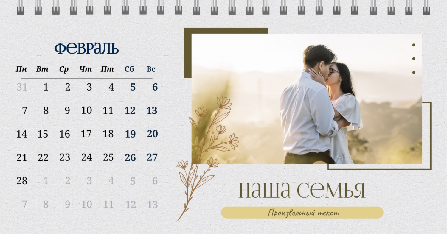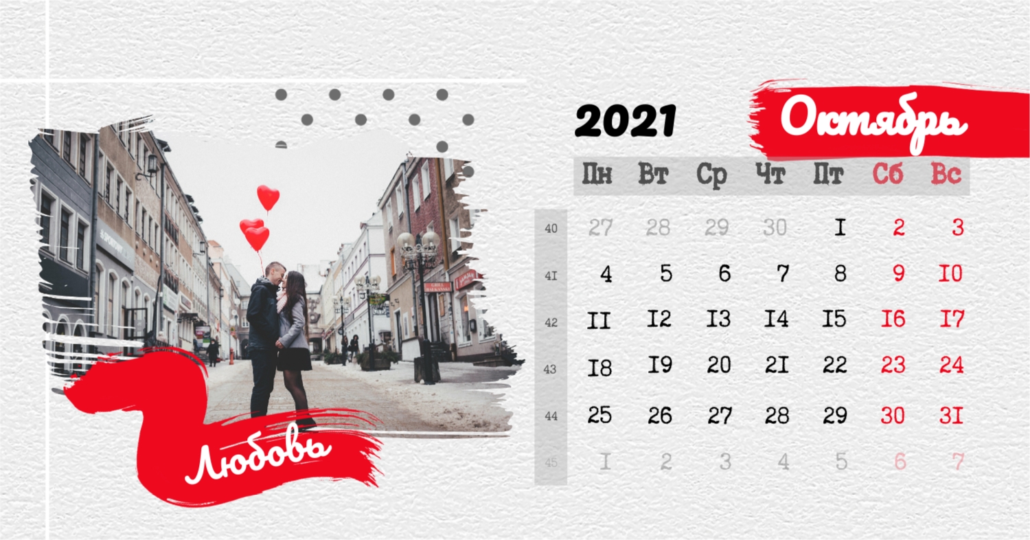 Бесплатный шаблон календаря c лучшими воспоминаниями влюбленной пары. Создайте макет своими руками в конструкторе календарей.