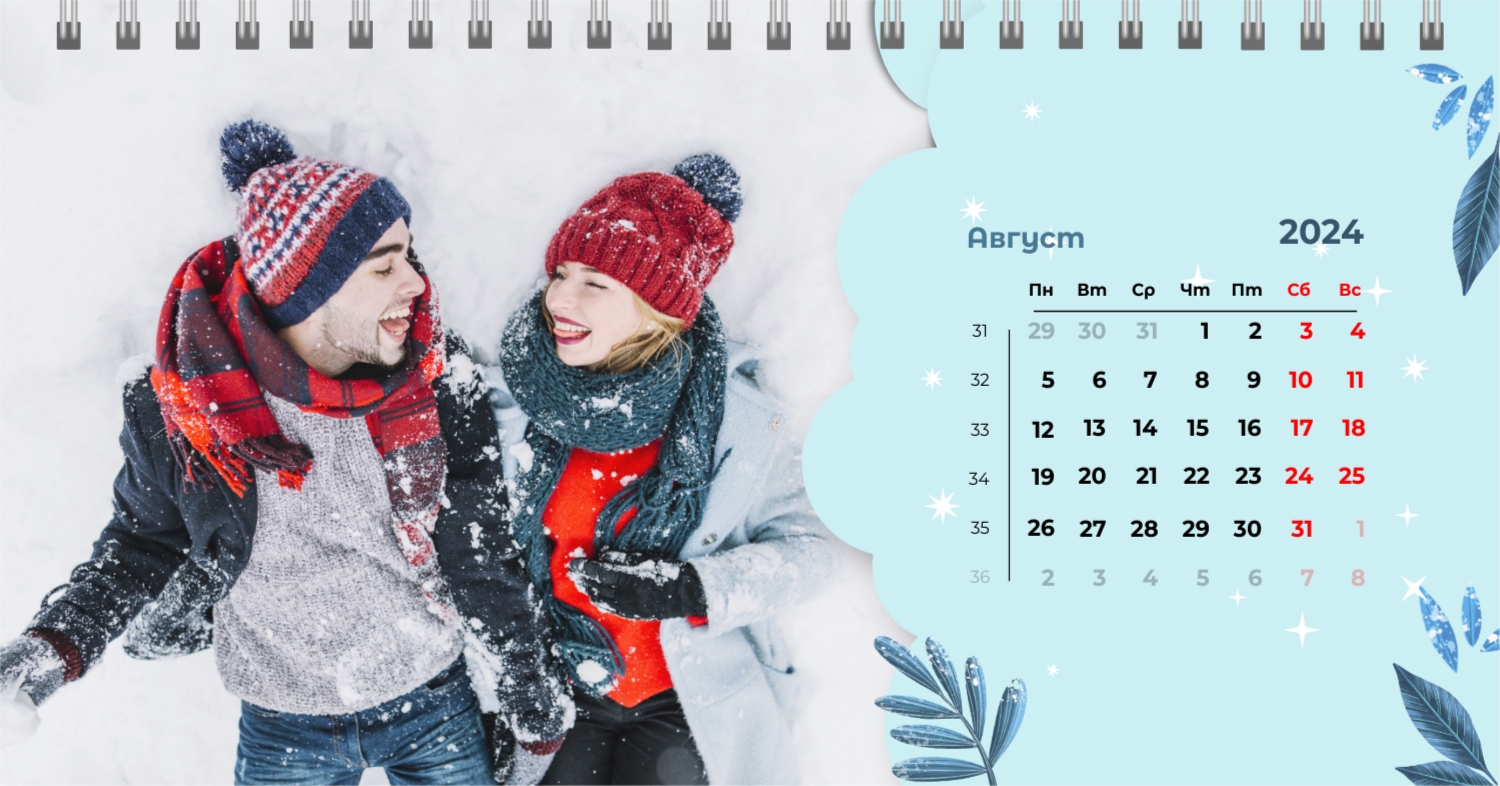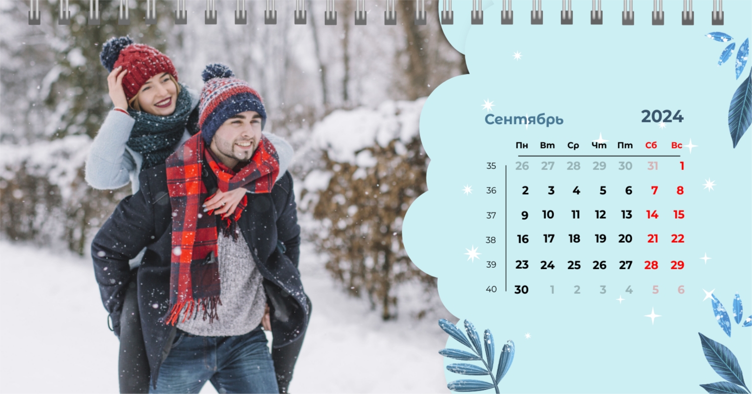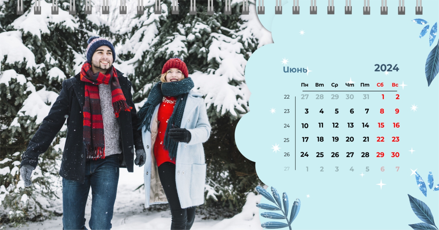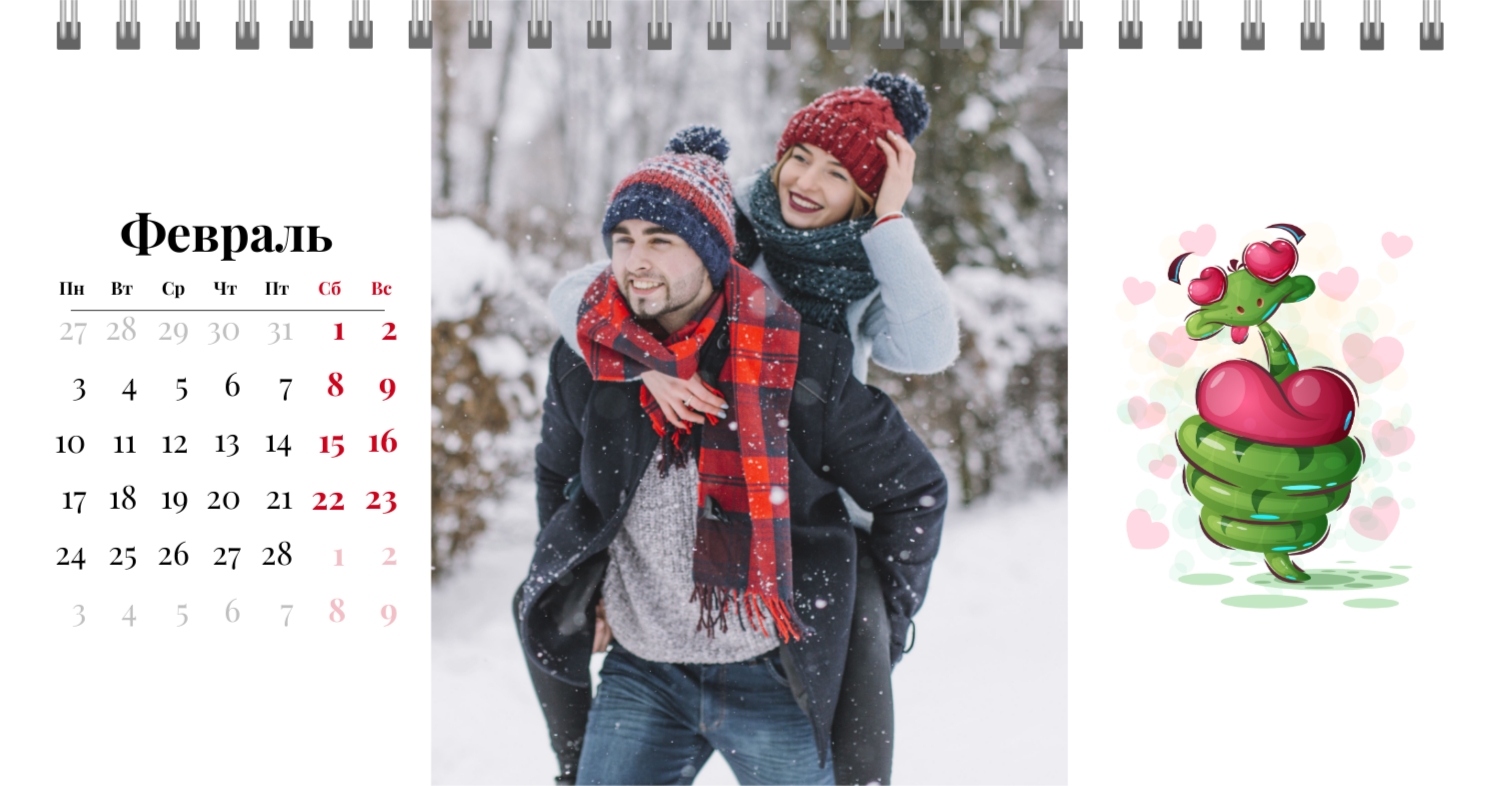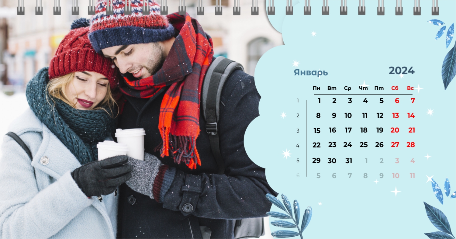 Бесплатный шаблон календаря c лучшими воспоминаниями влюбленной пары. Создайте макет своими руками в конструкторе календарей.