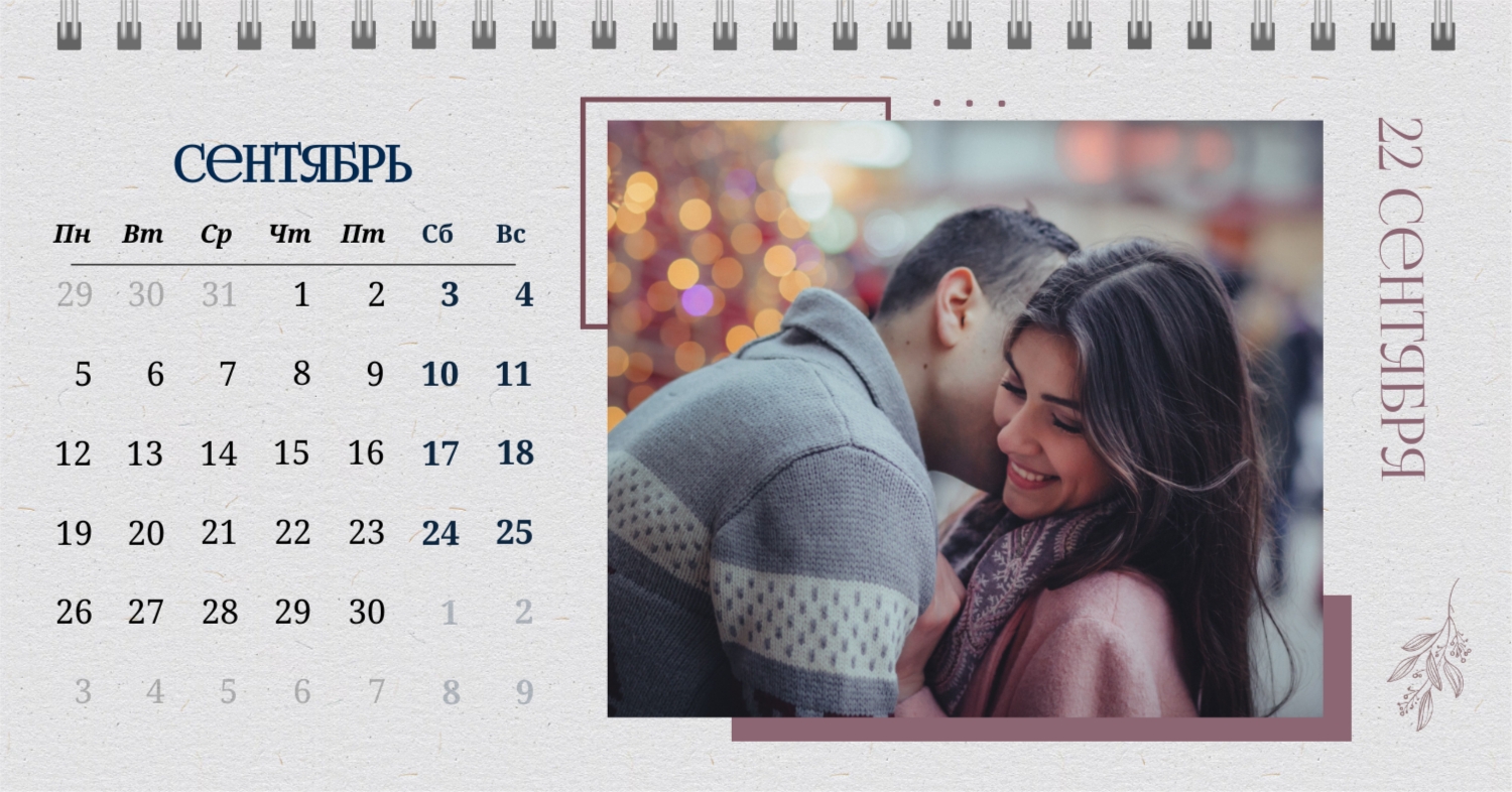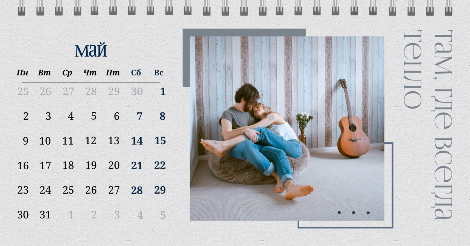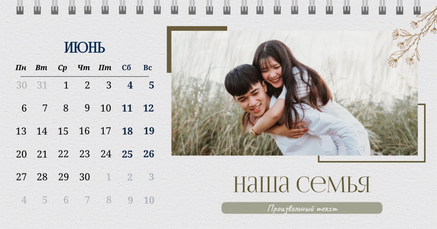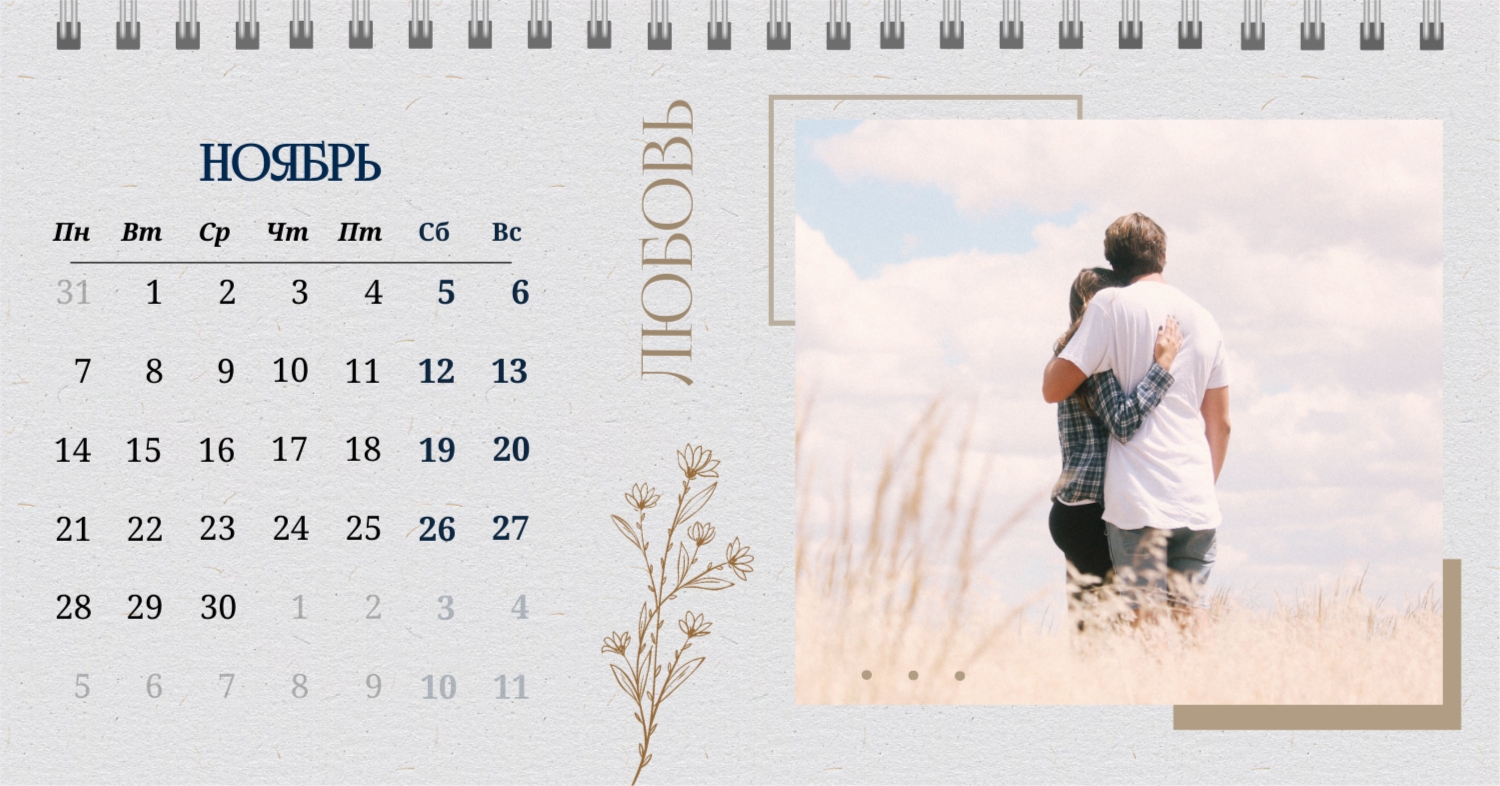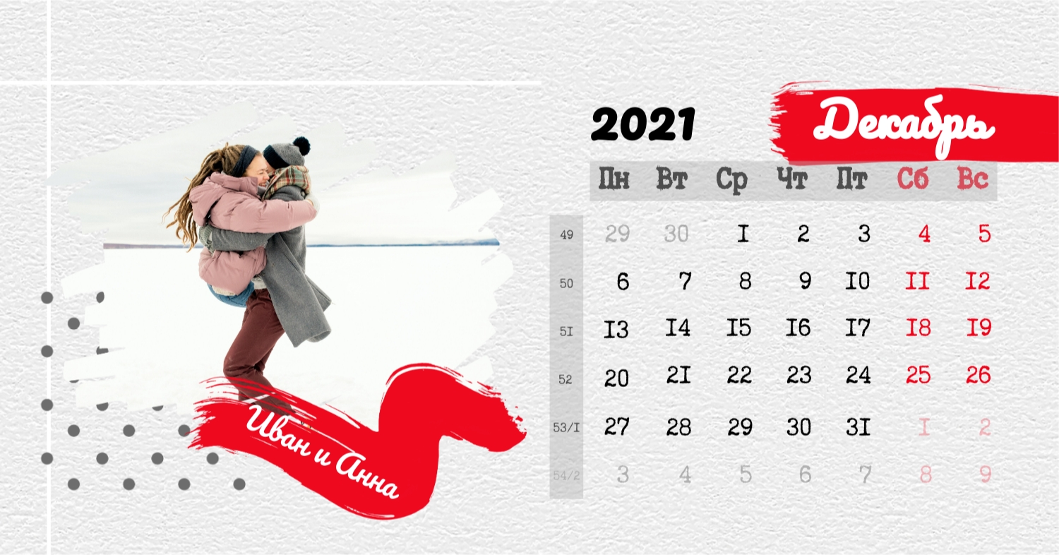 Бесплатный шаблон календаря c лучшими воспоминаниями влюбленной пары. Создайте макет своими руками в конструкторе календарей.