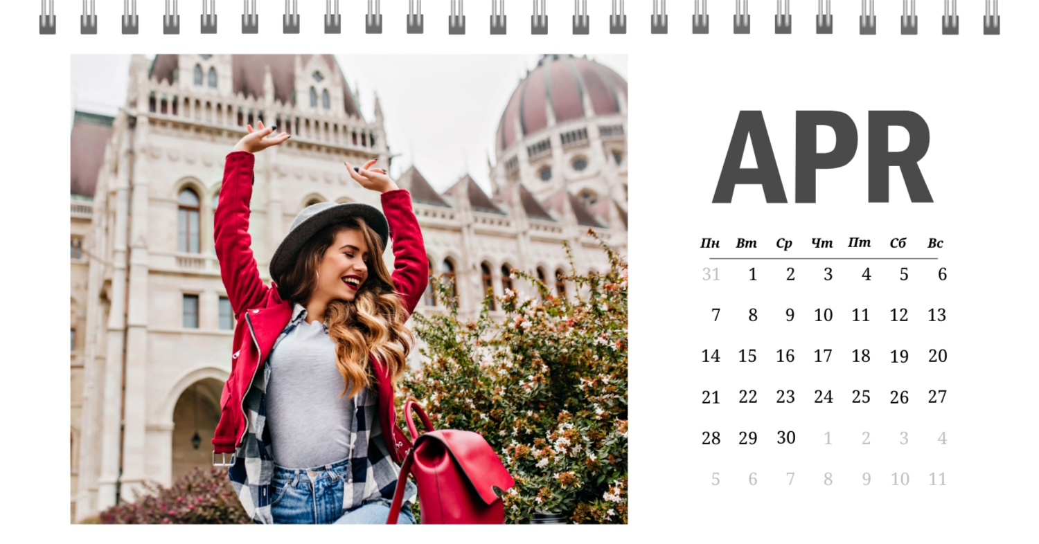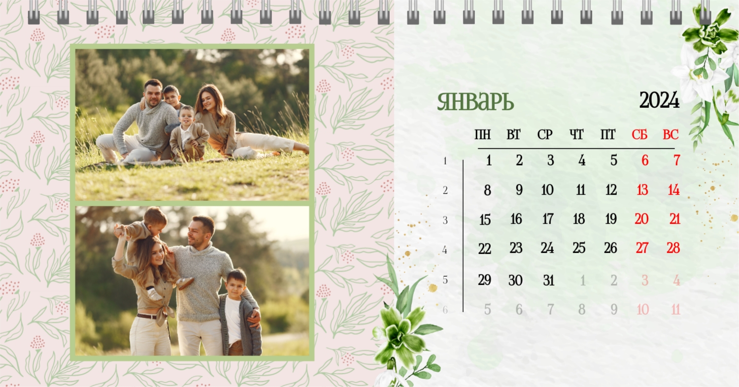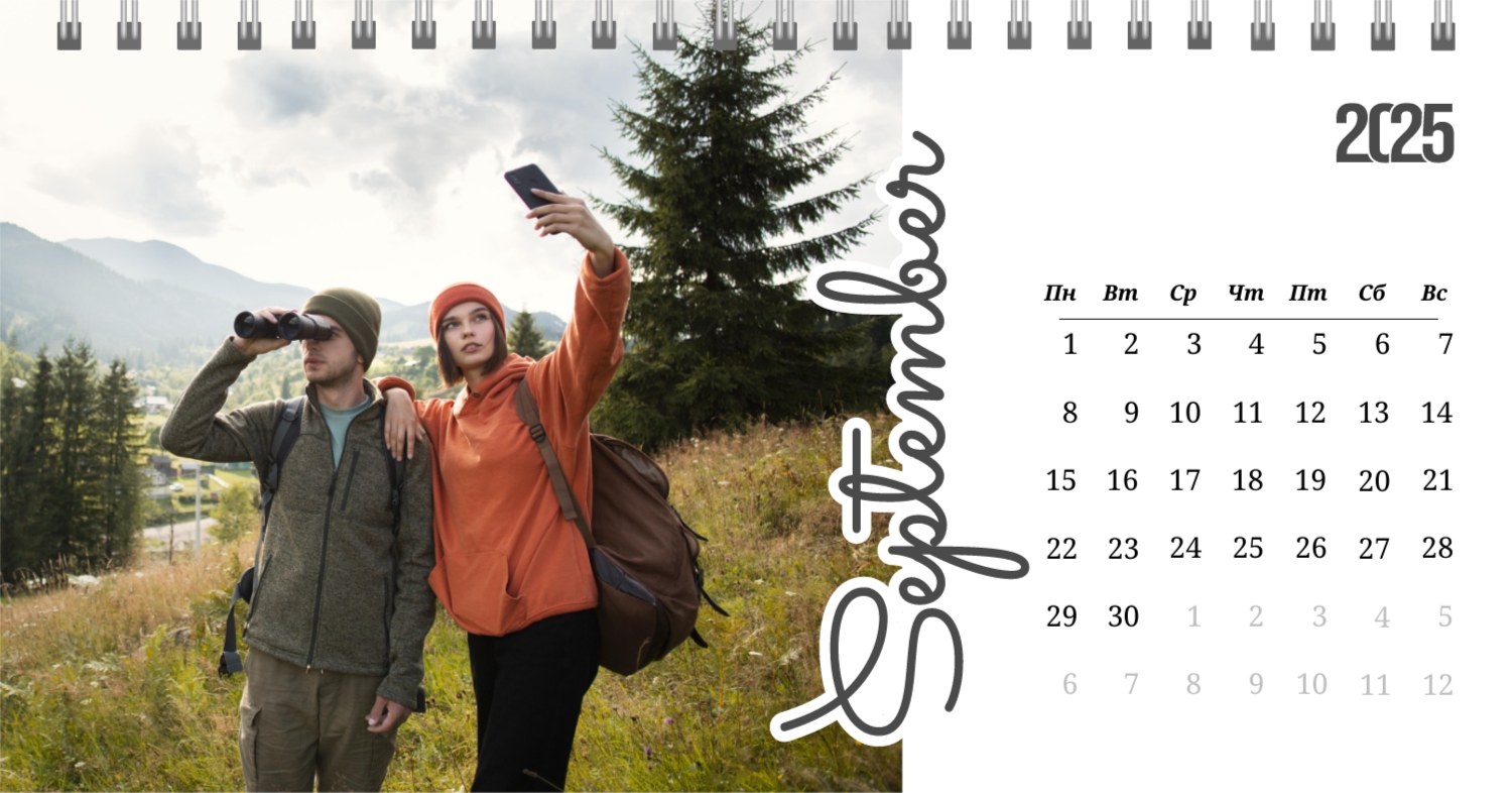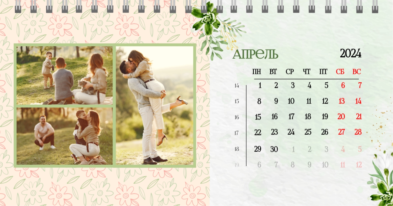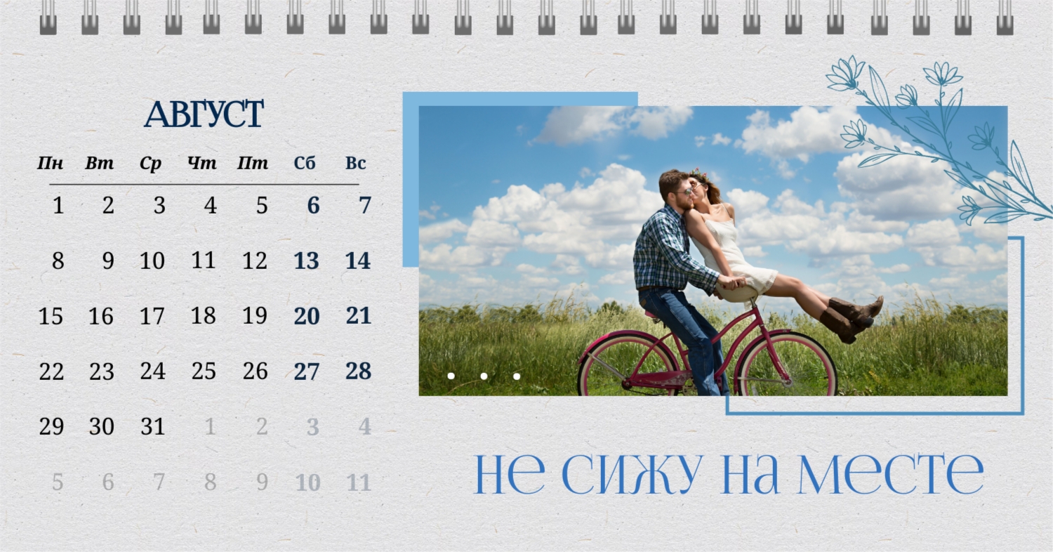 Бесплатный шаблон календаря c лучшими воспоминаниями влюбленной пары. Создайте макет своими руками в конструкторе календарей.