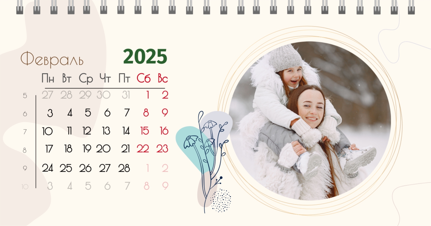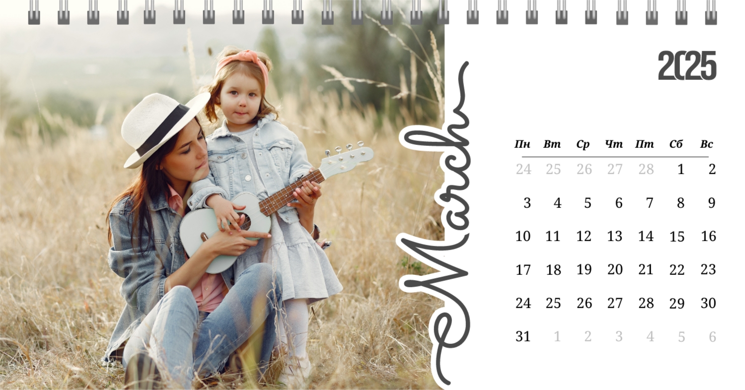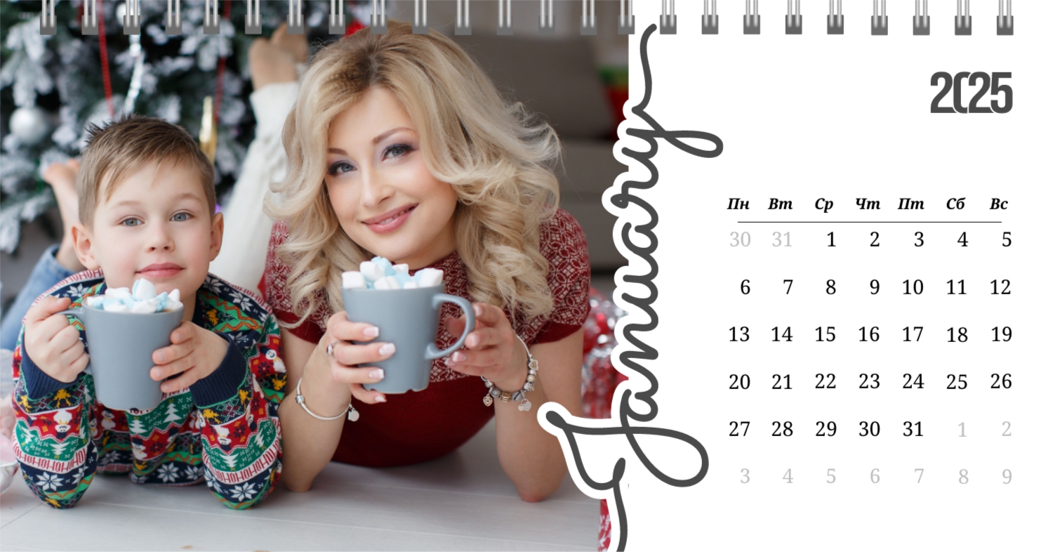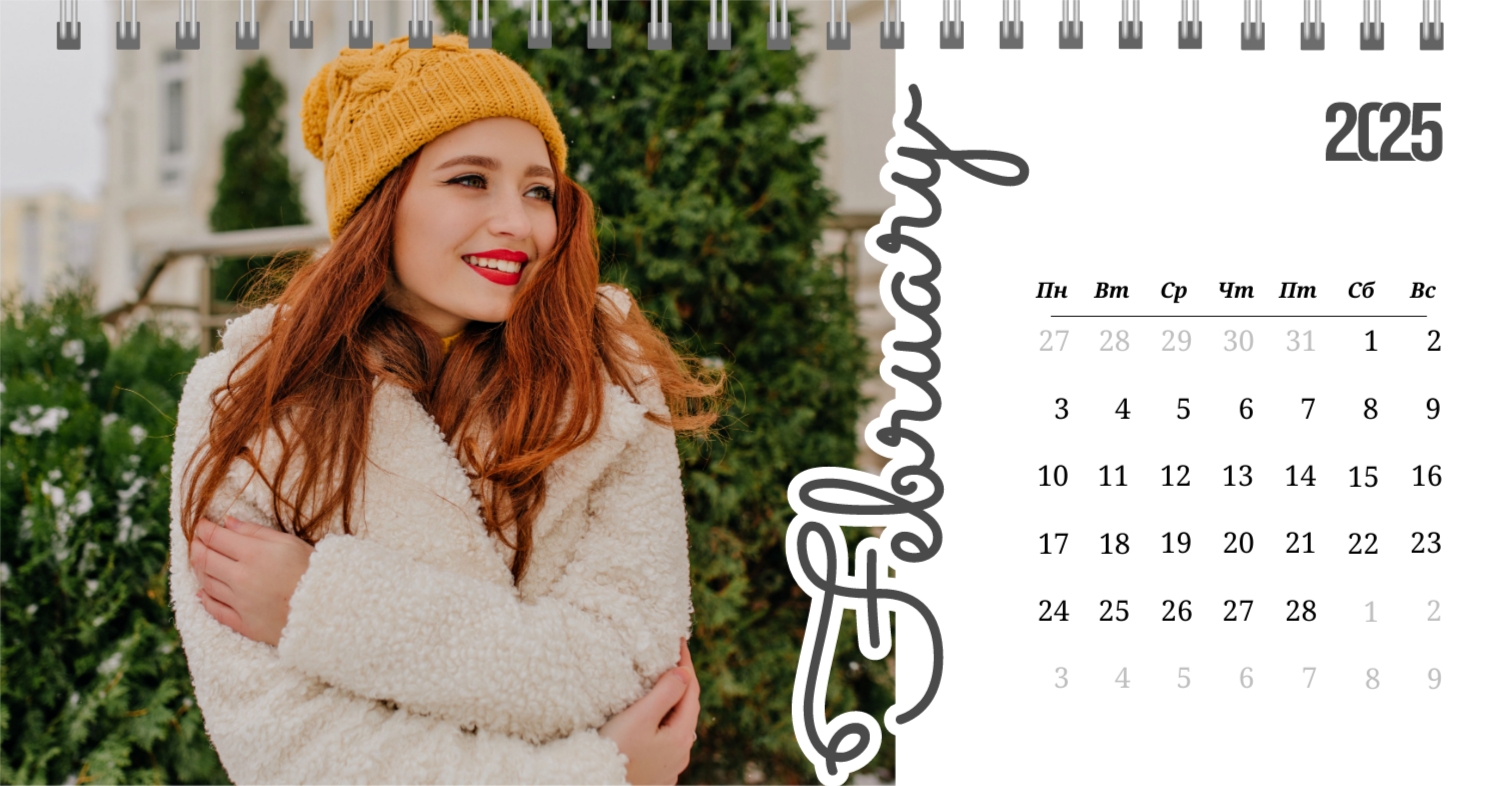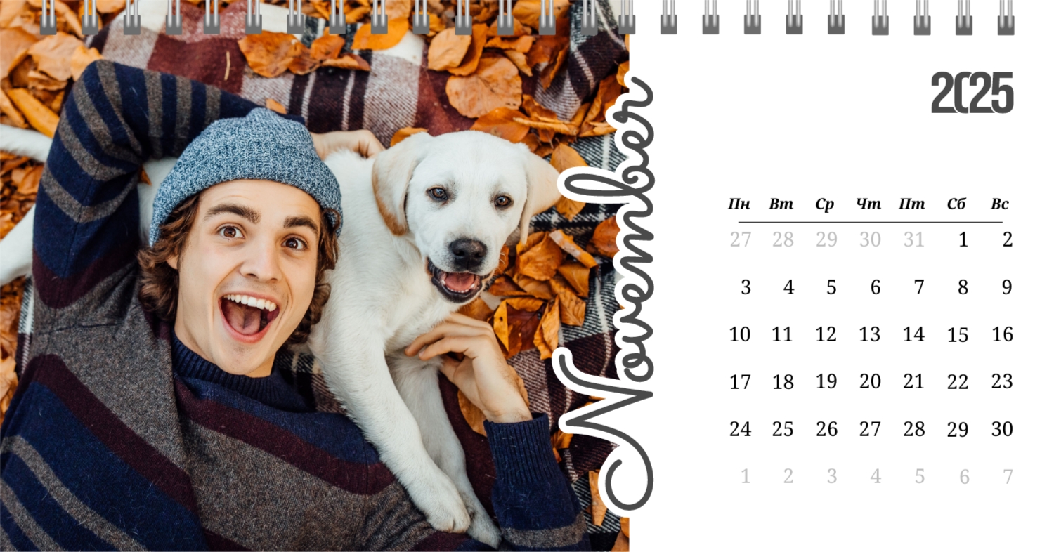 Бесплатный шаблон календаря c лучшими воспоминаниями влюбленной пары. Создайте макет своими руками в конструкторе календарей.