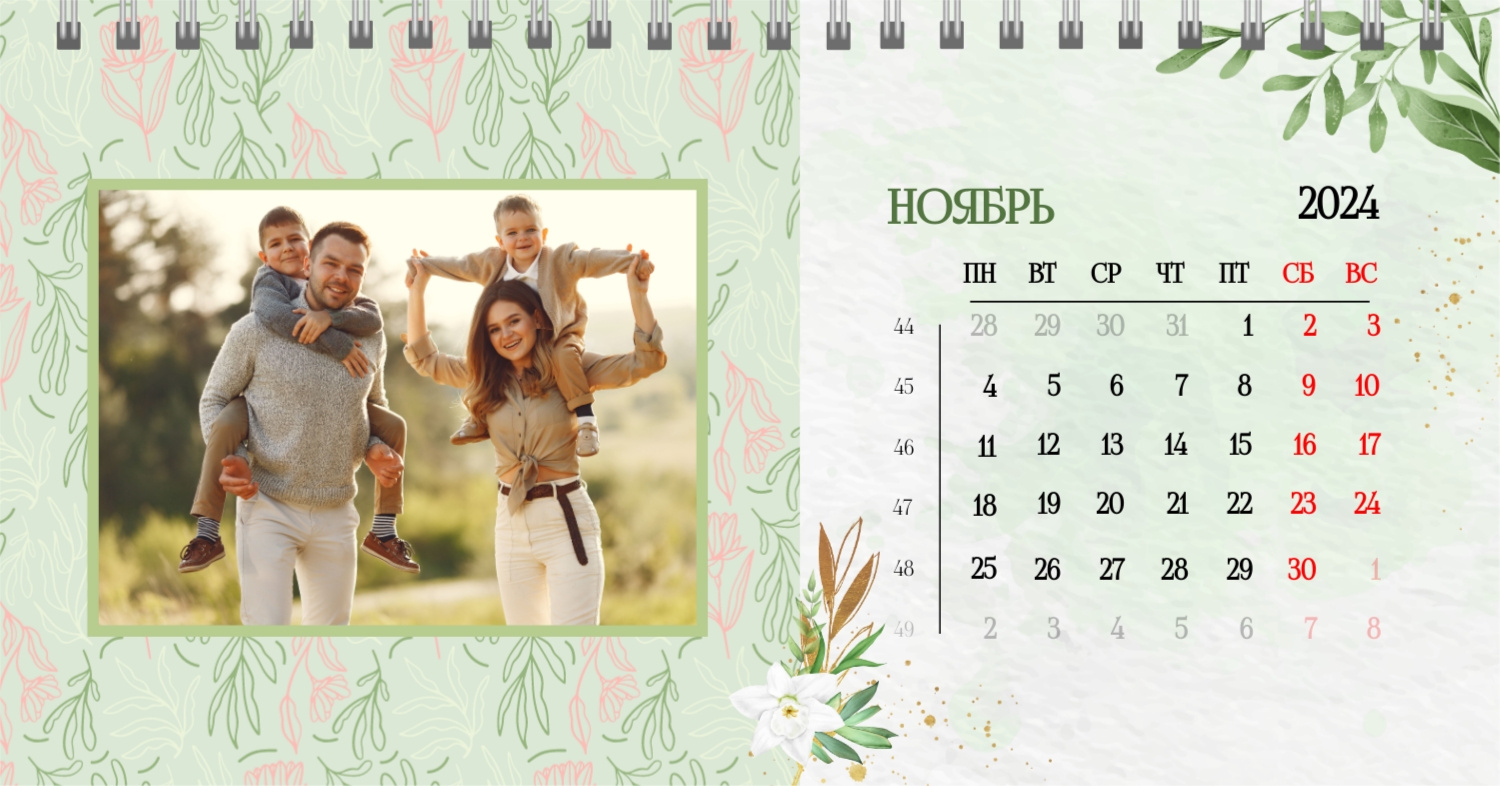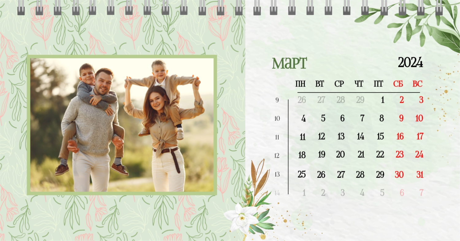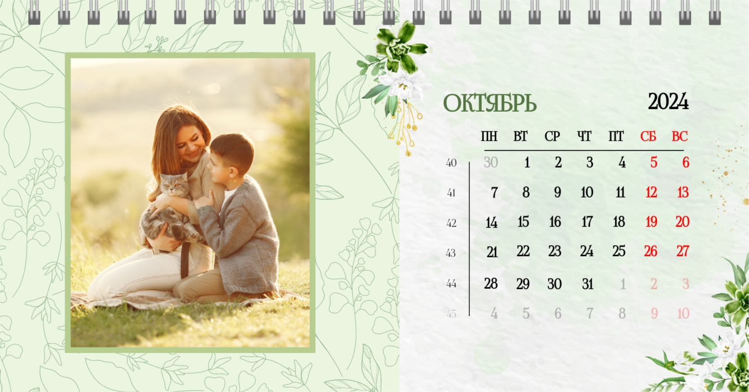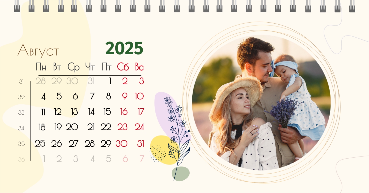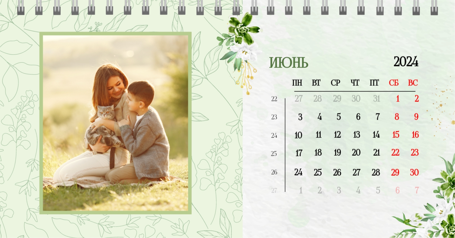 Бесплатный шаблон календаря c лучшими воспоминаниями влюбленной пары. Создайте макет своими руками в конструкторе календарей.