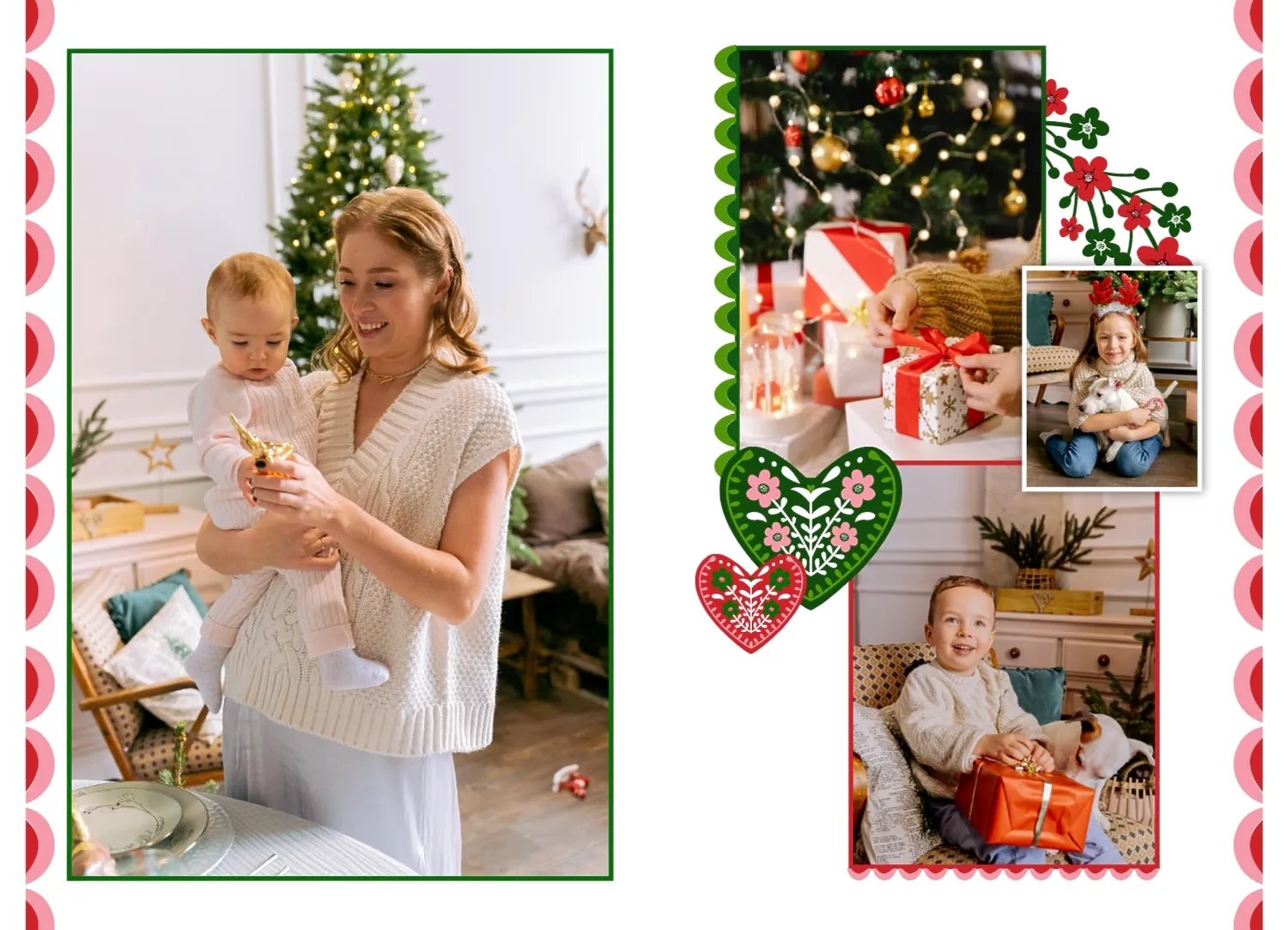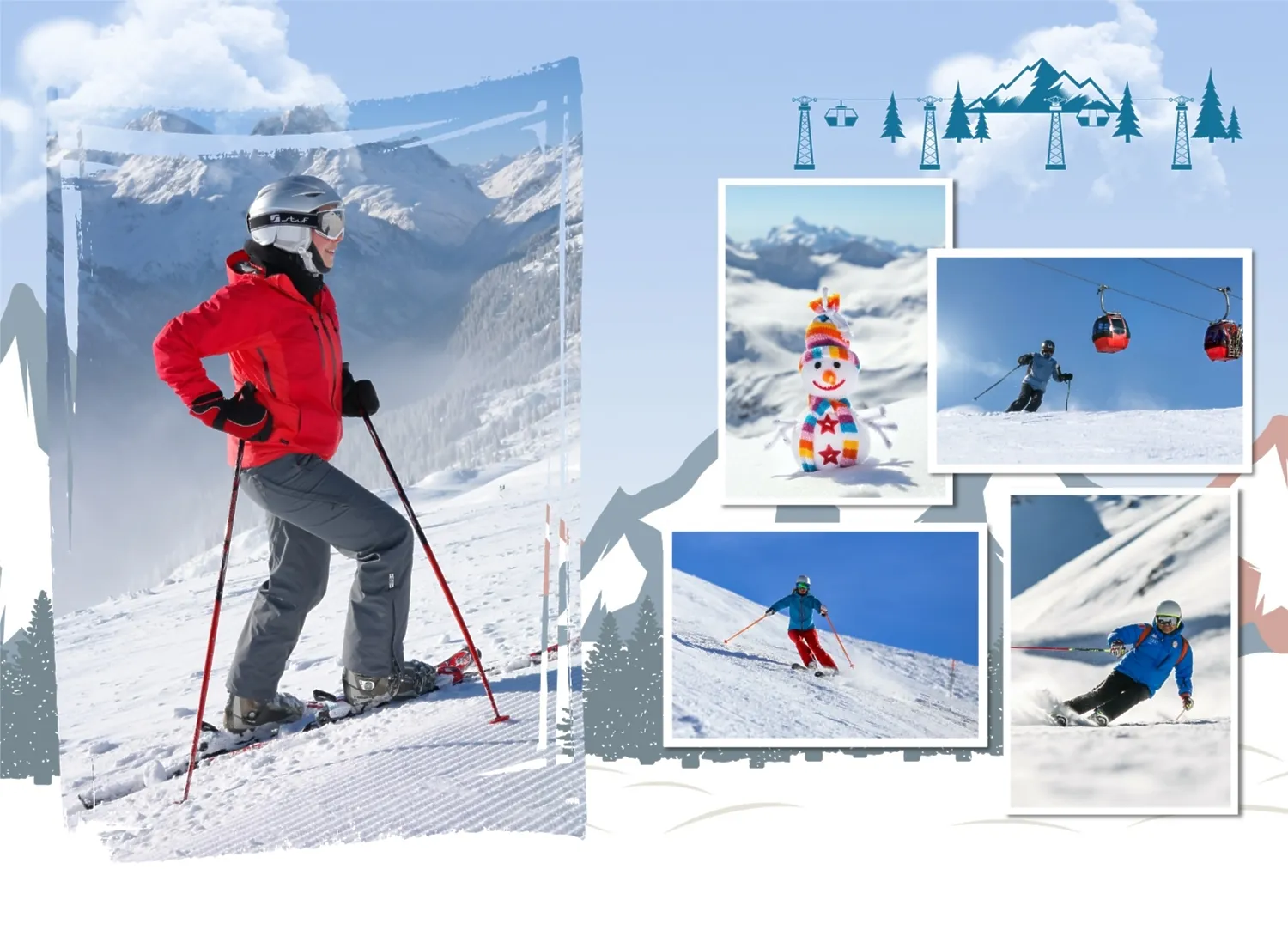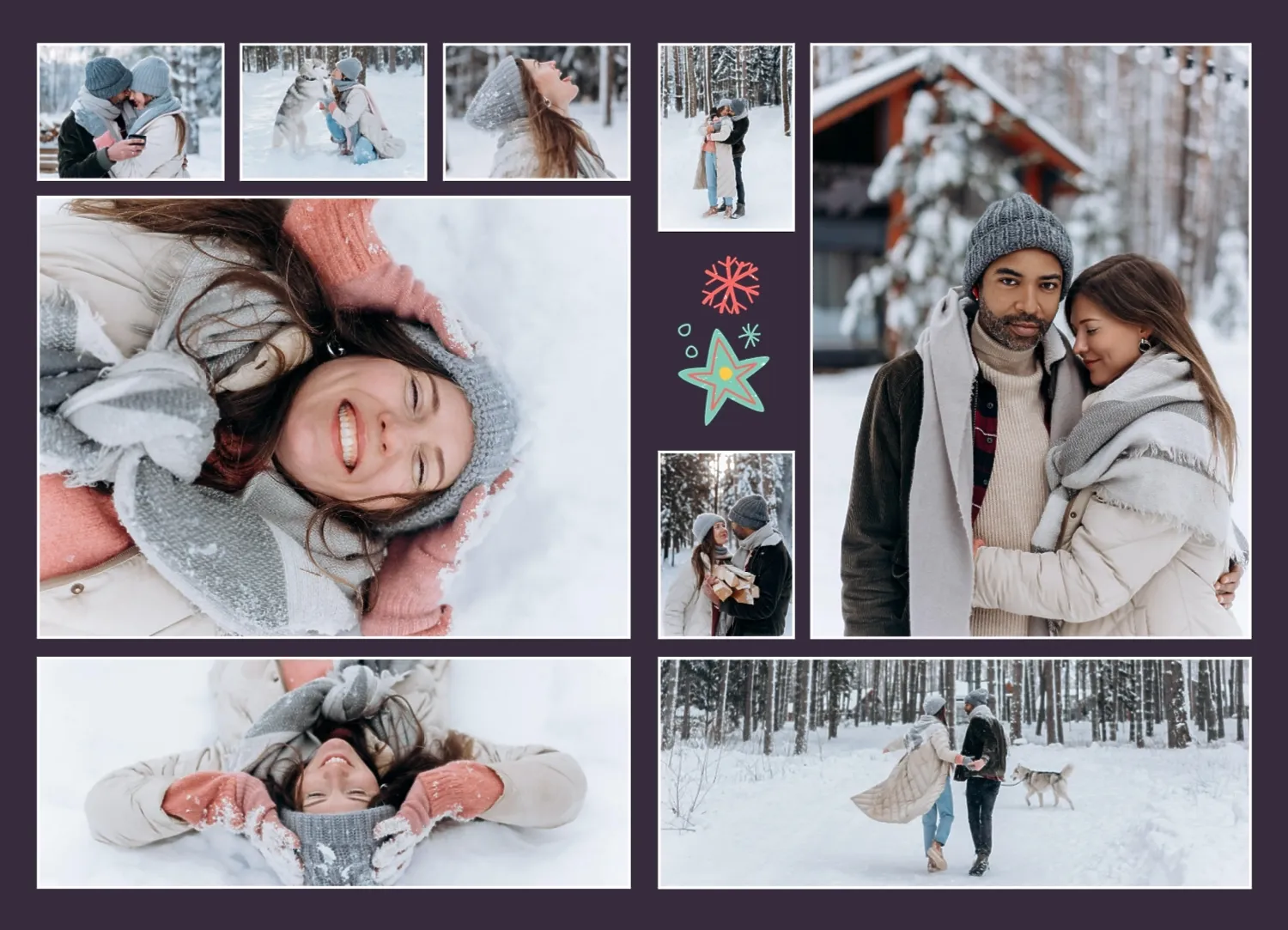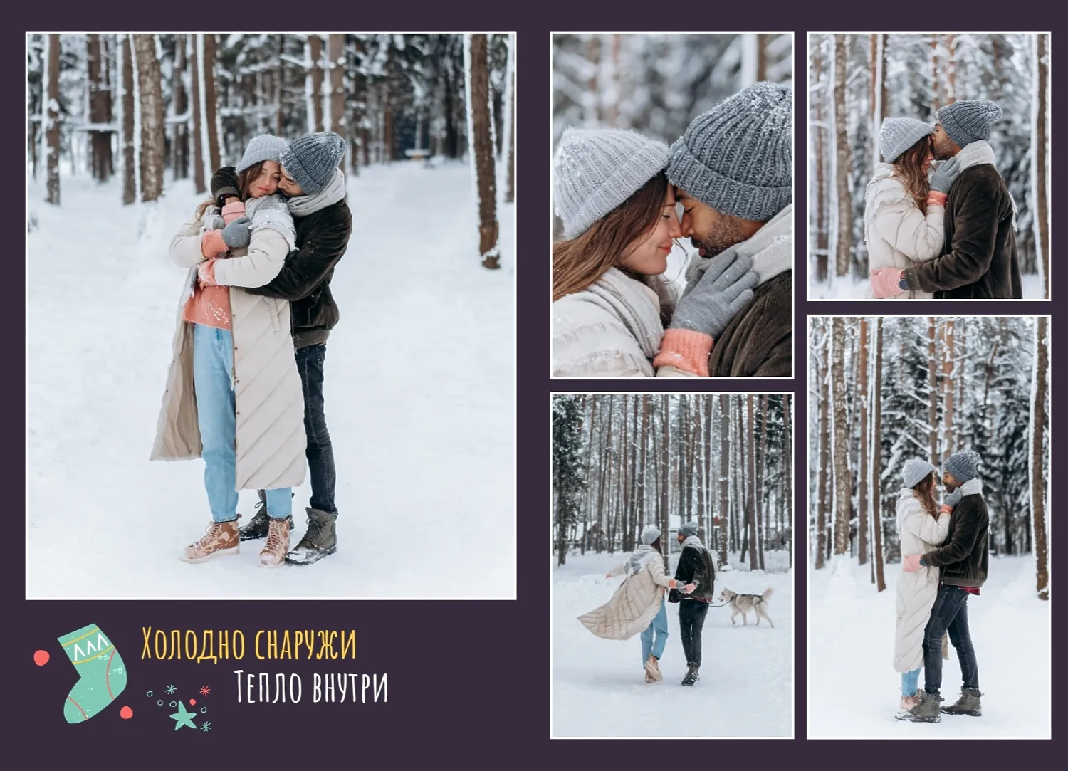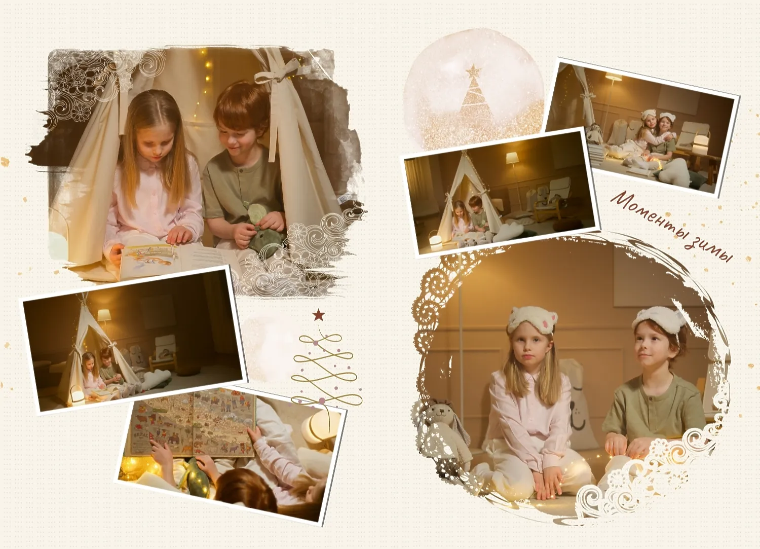 Бесплатный шаблон фотокниги для воспоминаний о зимнем отдыхе с семьей, каникулах, зимней фотосессии. Создайте макет своими руками в онлайн-конструкторе фотокниг.
