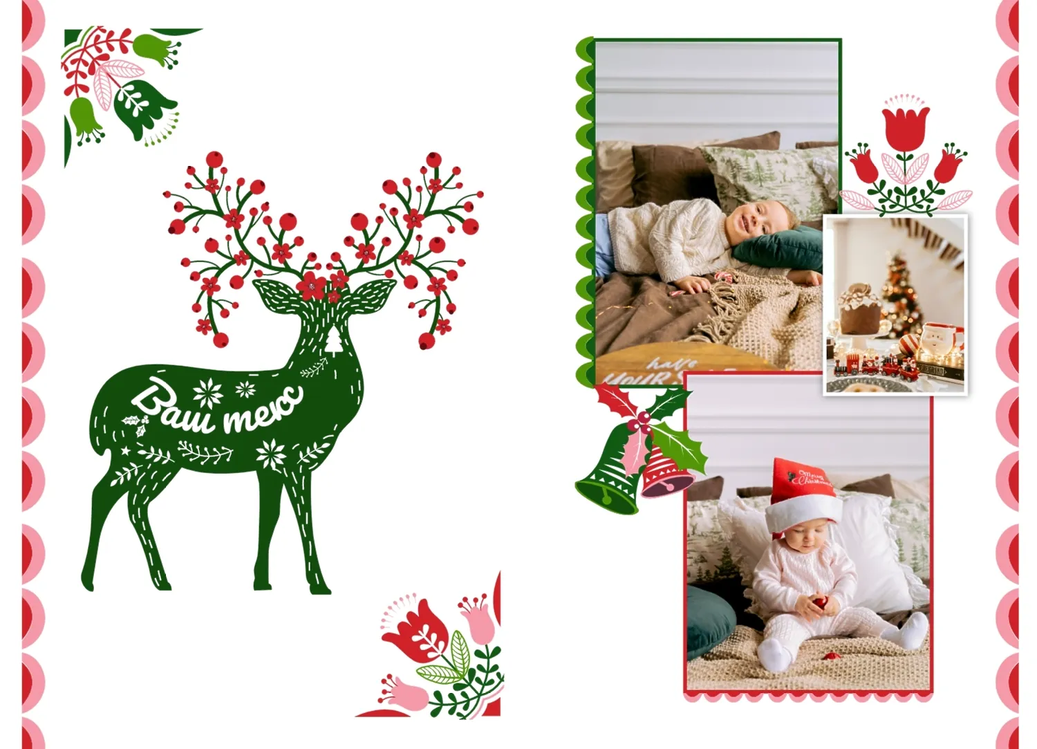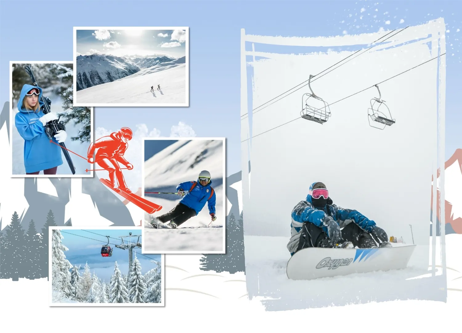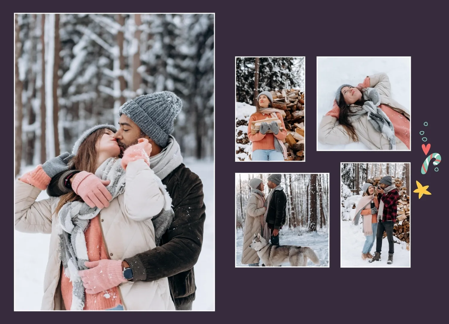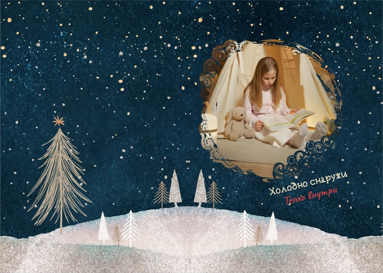 Бесплатный шаблон фотокниги для воспоминаний о зимнем отдыхе с семьей, каникулах, зимней фотосессии. Создайте макет своими руками в онлайн-конструкторе фотокниг.