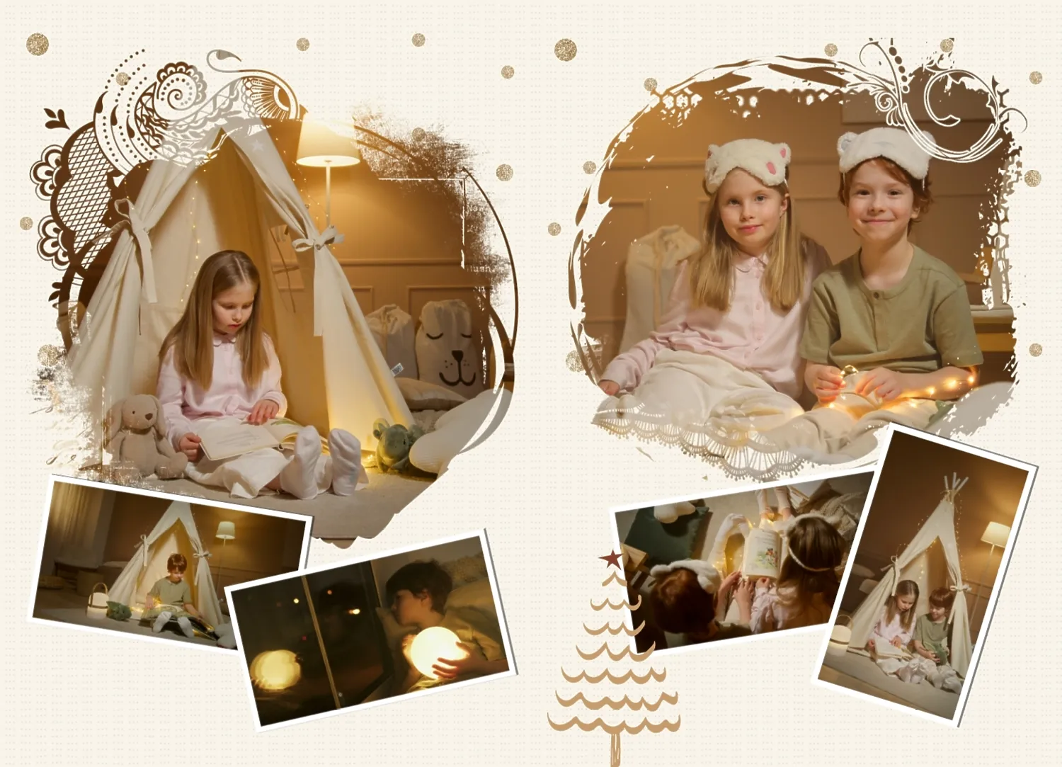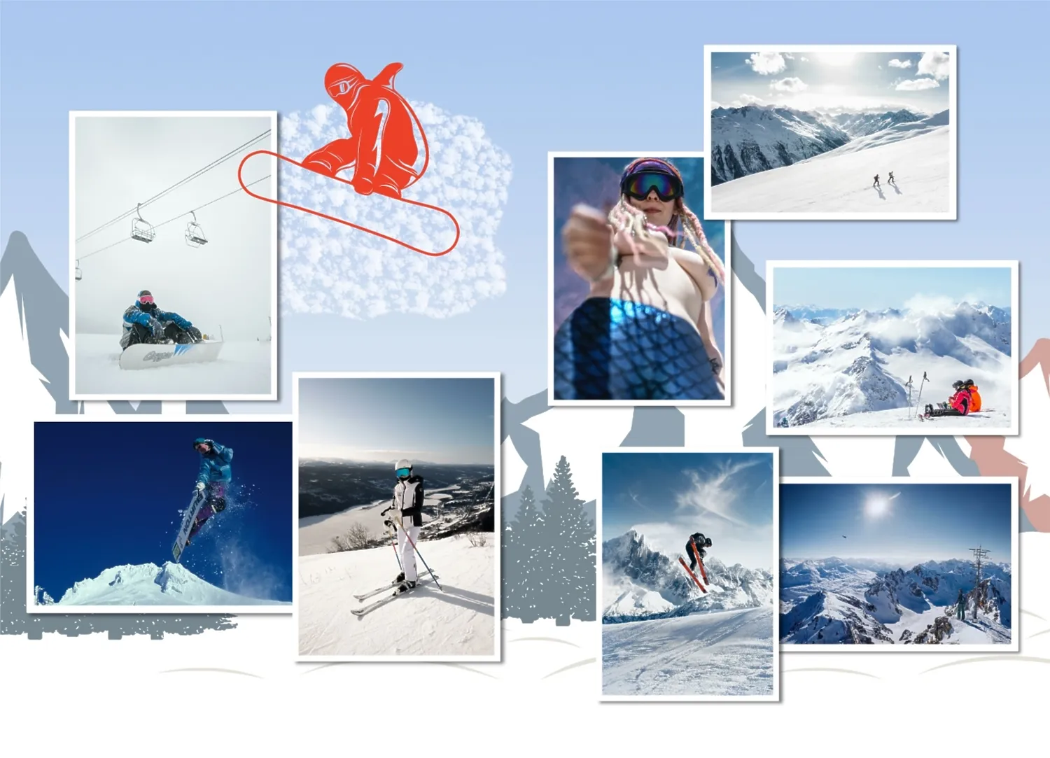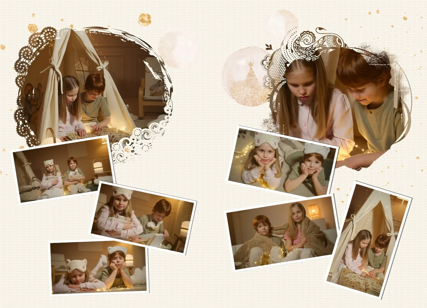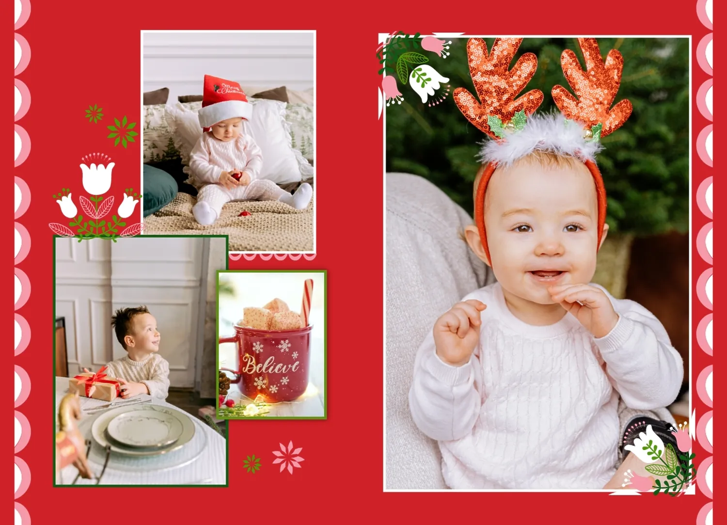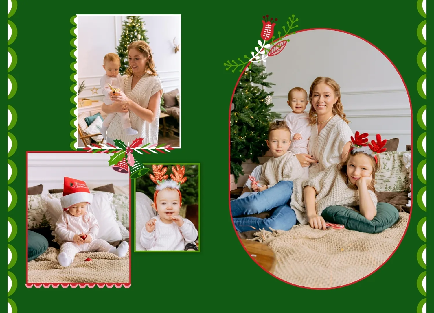 Бесплатный шаблон фотокниги для воспоминаний о зимнем отдыхе с семьей, каникулах, зимней фотосессии. Создайте макет своими руками в онлайн-конструкторе фотокниг.