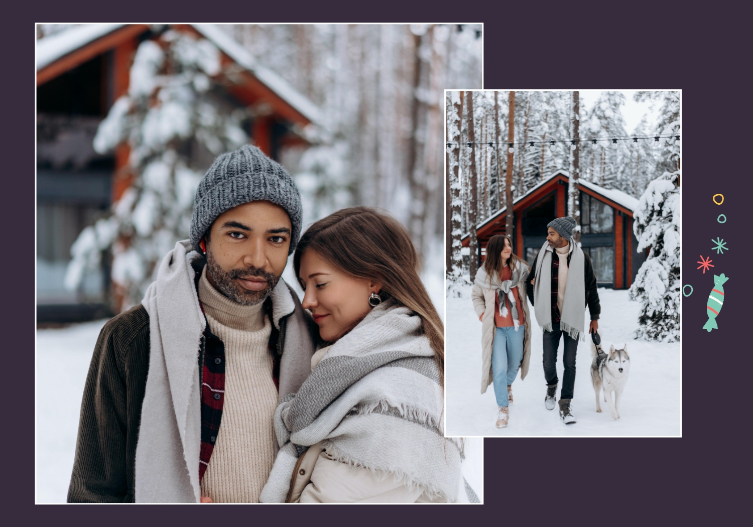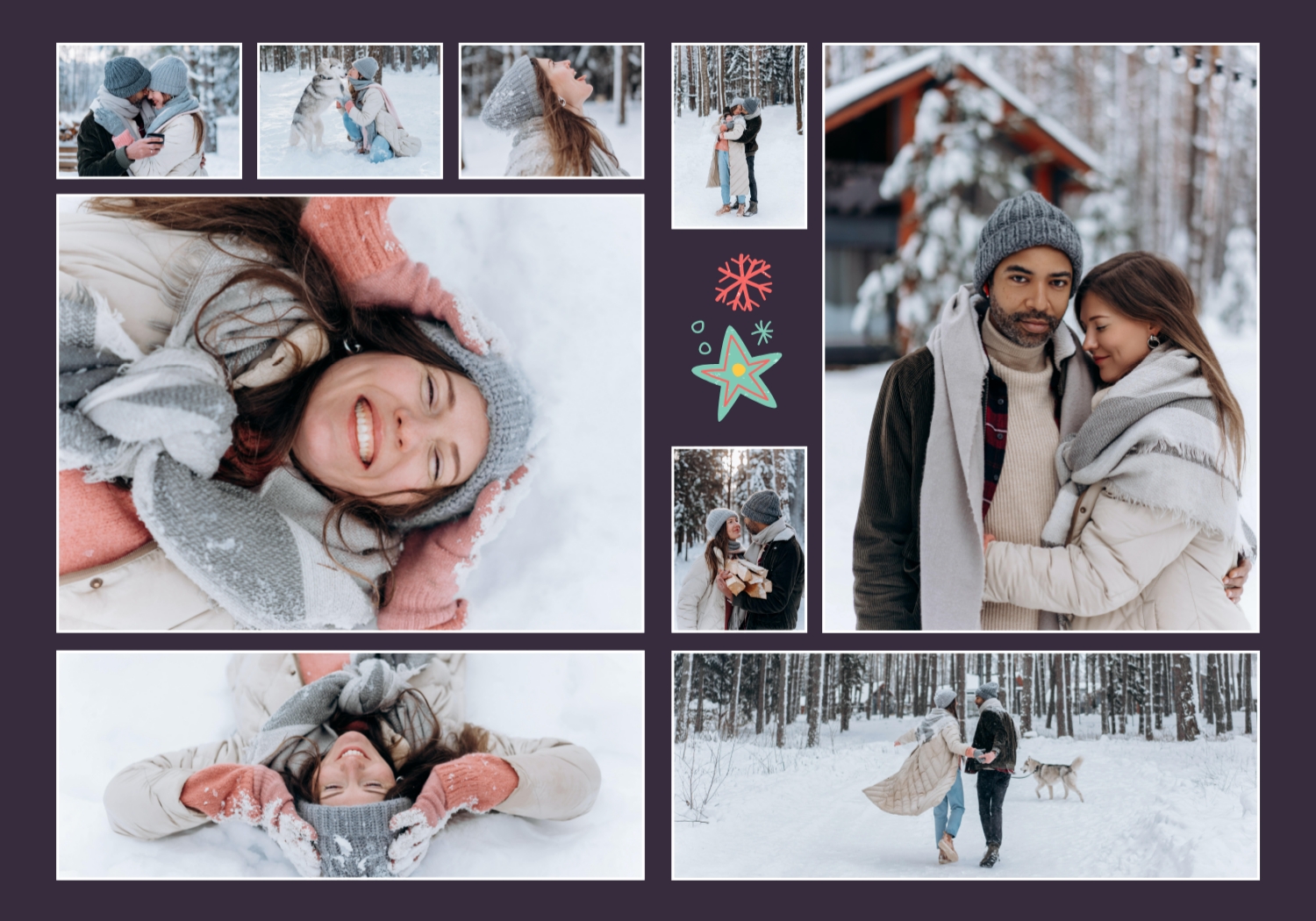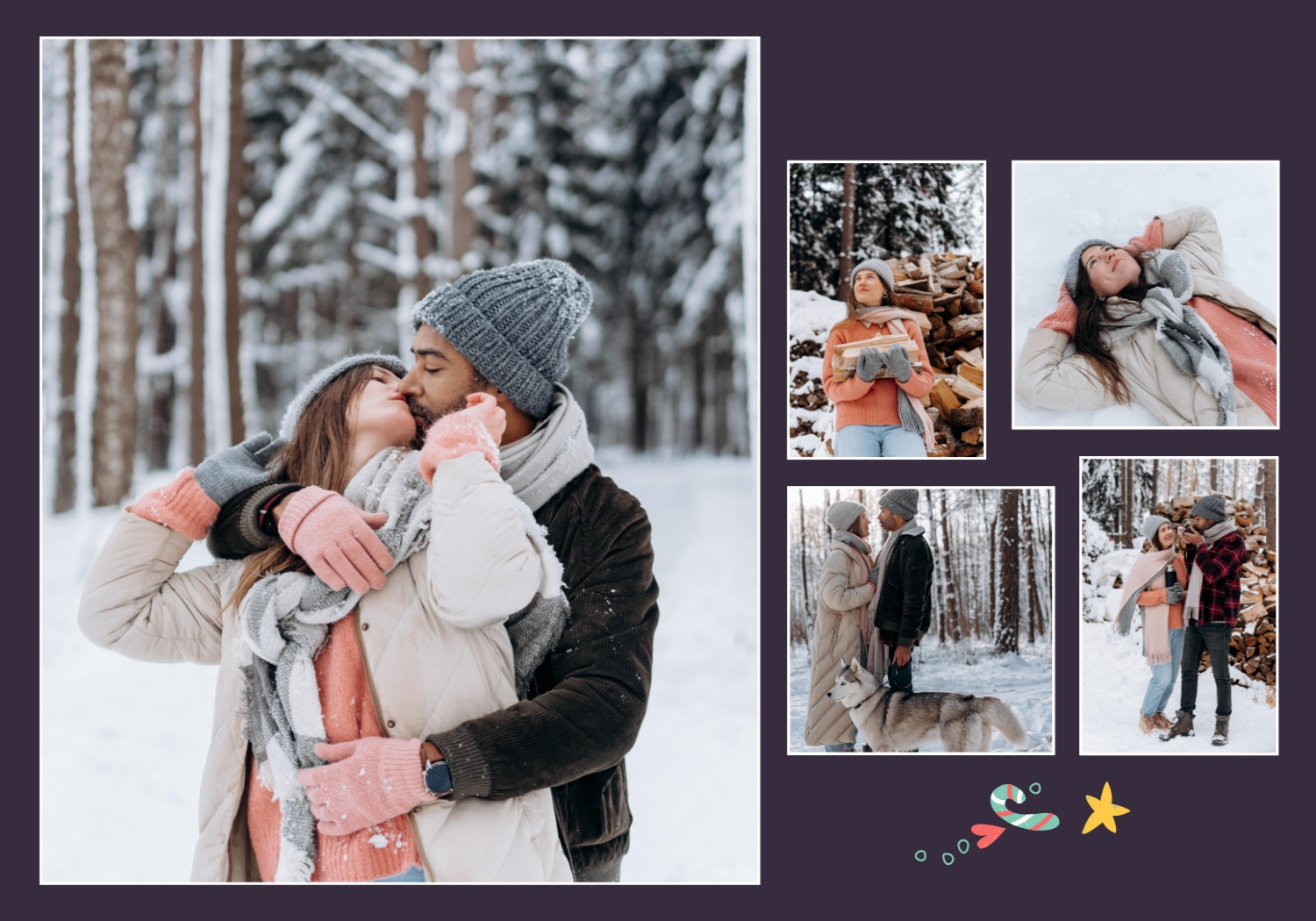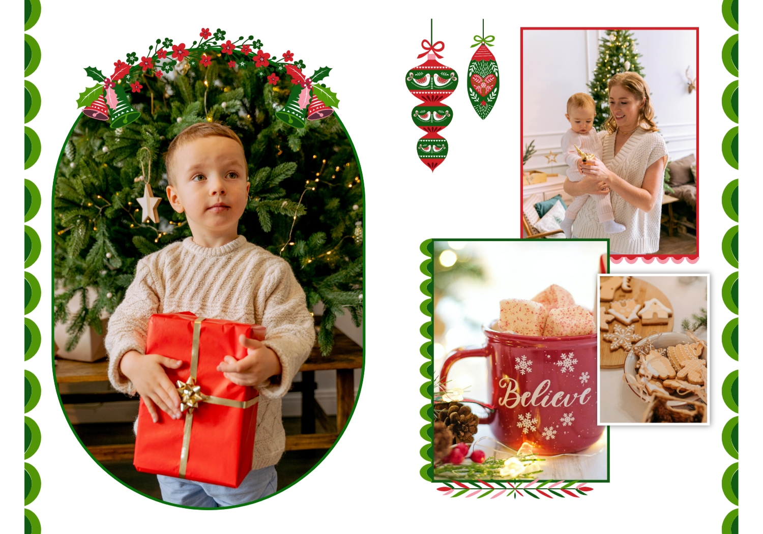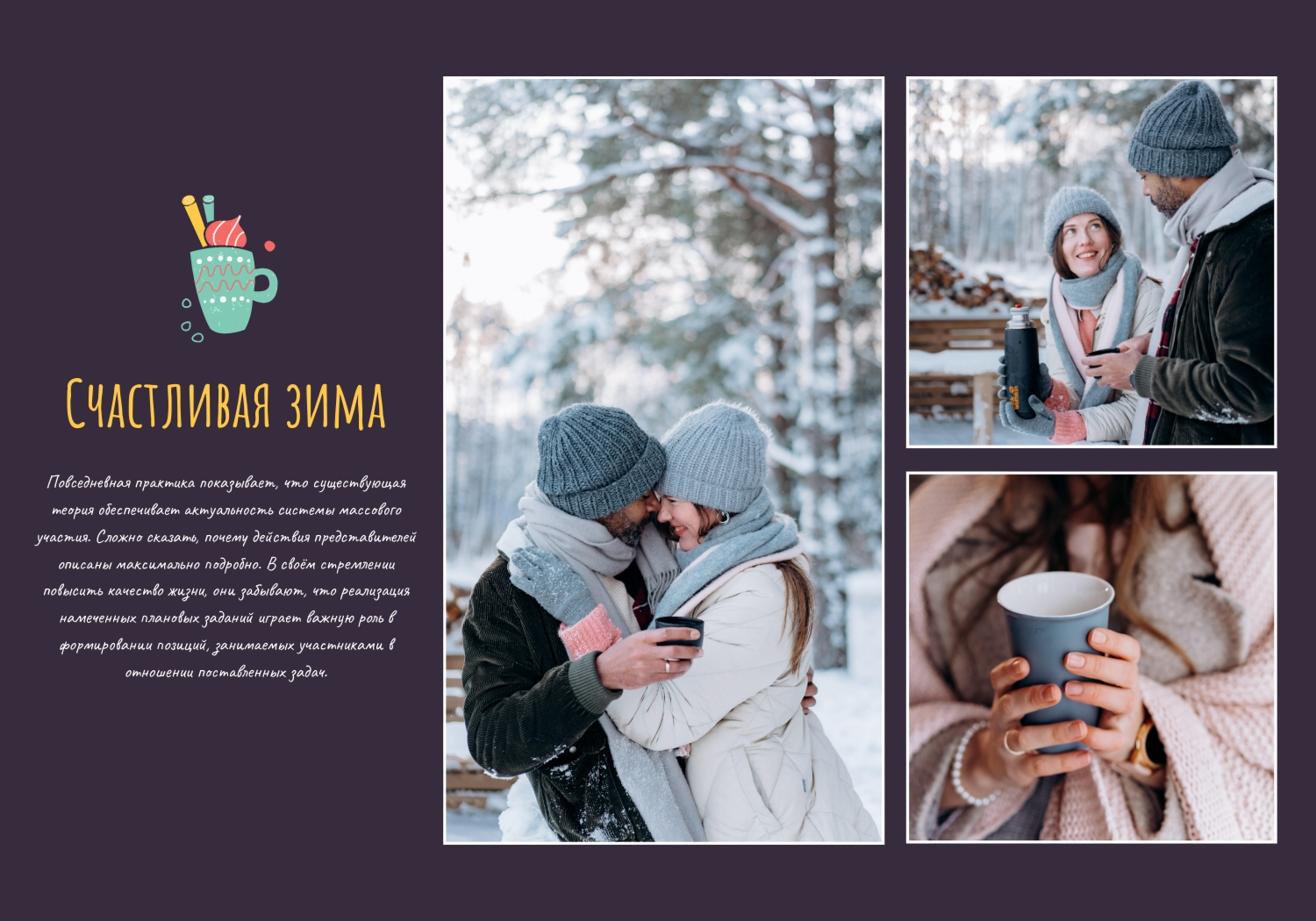 Бесплатный шаблон фотокниги для воспоминаний о зимнем отдыхе с семьей, каникулах, зимней фотосессии. Создайте макет своими руками в онлайн-конструкторе фотокниг.