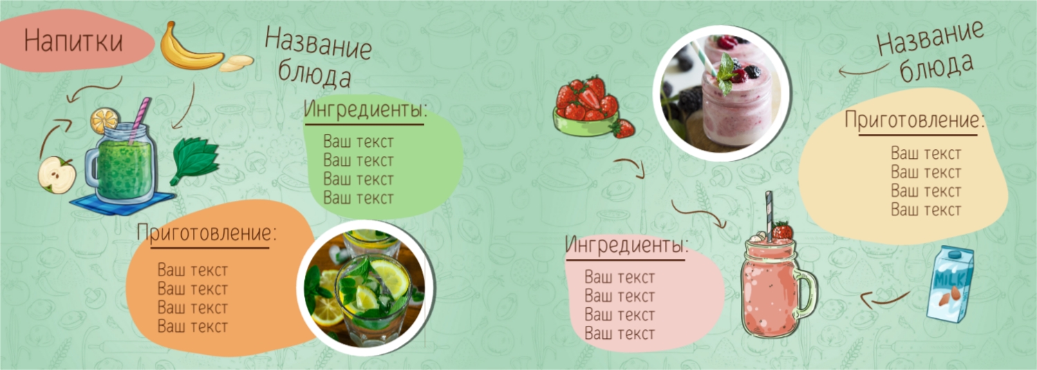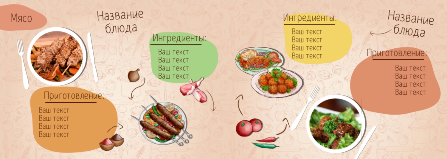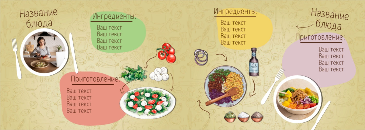 Бесплатный шаблон фотокниги рецептов горизонтальный. Создайте макет своими руками в онлайн-конструкторе фотокниг.