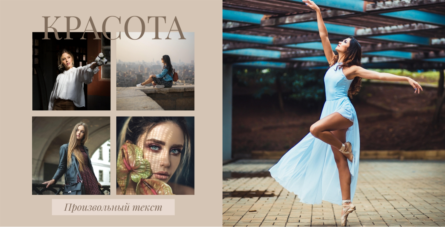 Бесплатный шаблон фотокниги-портфолио квадратный для фотостудий, фотографов и фотохудожников. Создайте макет своими руками в онлайн-конструкторе фотокниг.