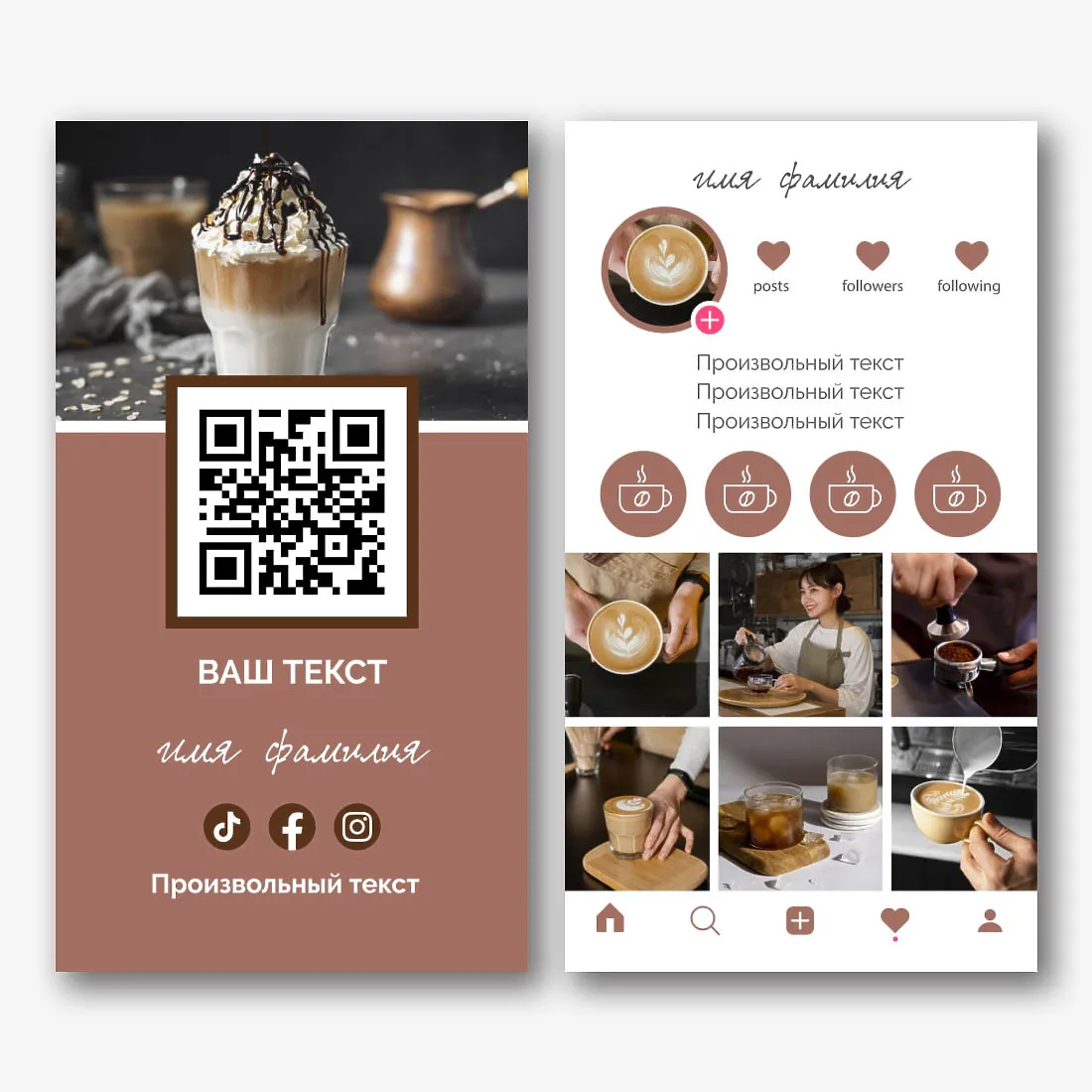 Бесплатный шаблон визитки кофейни, поставщика кофе, магазина кофе. Создайте макет своими руками в конструкторе визиток.