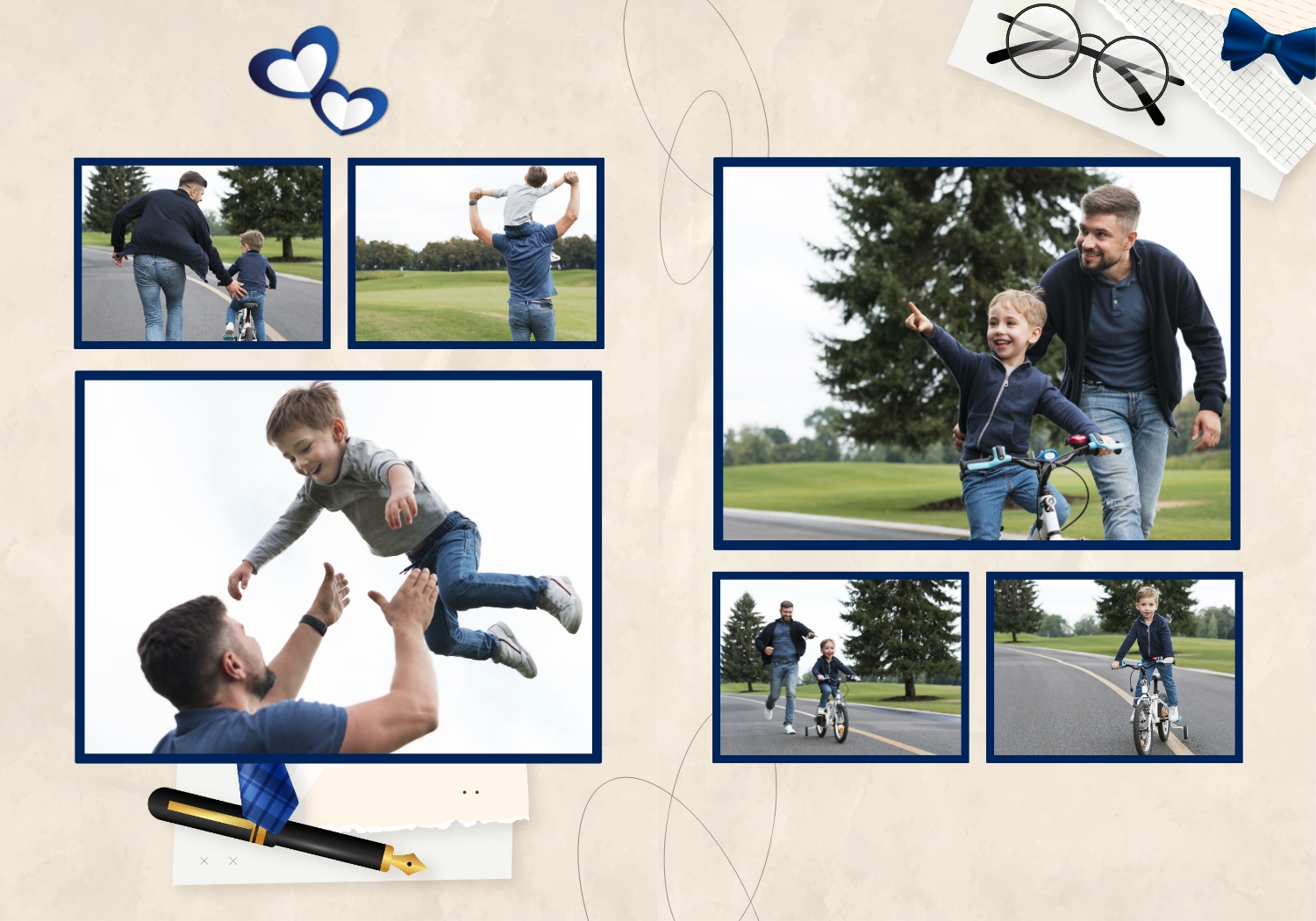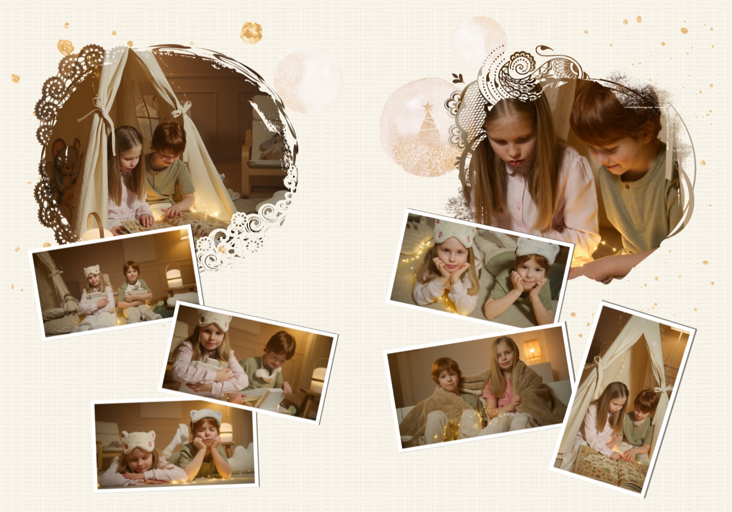 Шаблон семейного фотоальбома представляет собой многостраничную книгу, которая соберет в себе фотографии всех членов семьи, от групповых снимков до фотографий каждого члена семьи отдельно. В таком фотоальбоме можно сохранить приятные моменты проведенного времени, воспоминания о поездках, отдыхе, праздниках и других мероприятиях, которые были когда-то проведены вместе с близкими людьми. Использование онлайн-конструктора при создании своего фотоальбома позволяет создать готовое решение качественно и быстро. Такой инструмент без труда поможет создать самый красивый и уникальный фотоальбом для семейных фотографий.