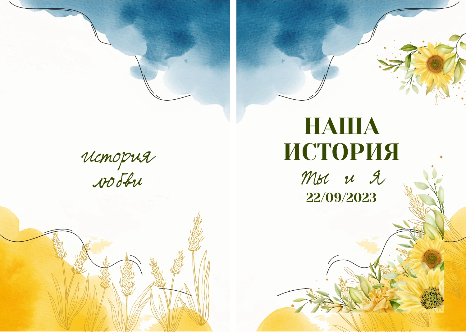 Шаблон фотокниги истории любви в цветах флага Украины - это прекрасный способ запечатлеть ваши романтические моменты и выразить свою любовь в стильном и уникальном дизайне. Он сочетает в себе яркие национальные цвета - синий и желтый - для создания привлекательного и эмоционального образа, отражающего вашу привязанность к Украине и вашу историю любви. Этот шаблон фотокниги истории любви подойдет для всех влюбленных, которые хотят создать особенный и значимый подарок для своего партнера. Он позволит вам собрать вместе ваши самые важные и памятные фотографии, рассказывая о вашем путешествии любви. В онлайн-конструкторе вы можете использовать этот шаблон для создания вашего собственного фотоальбома lovestory легко и удобно. Вы сможете добавить ваши фотографии, тексты и даже выбрать подходящие фоны и элементы дизайна.