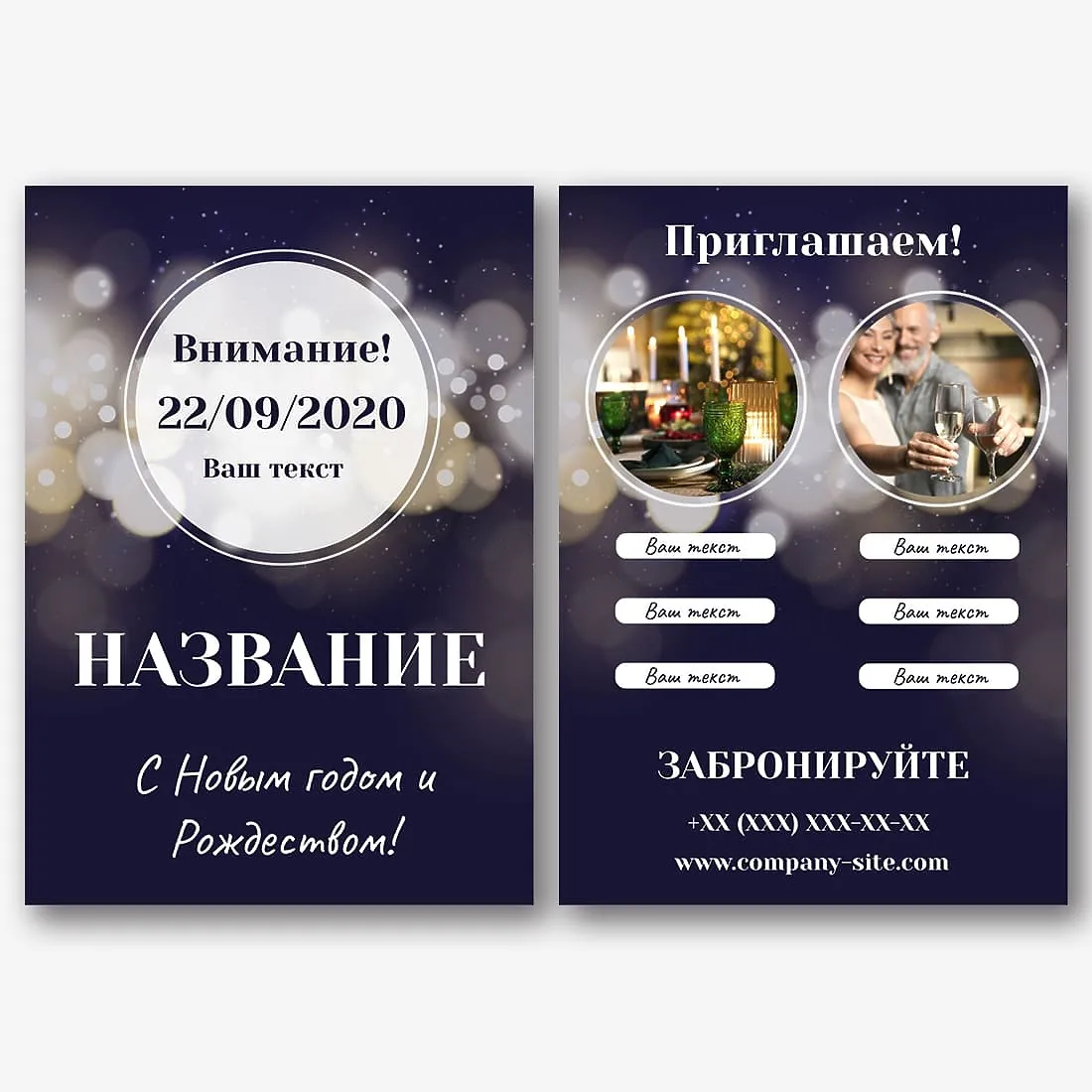 Бесплатный шаблон листовки для рекламы организации мероприятий, ивент агентства. Создайте макет листовки своими руками в онлайн-конструкторе листовок.