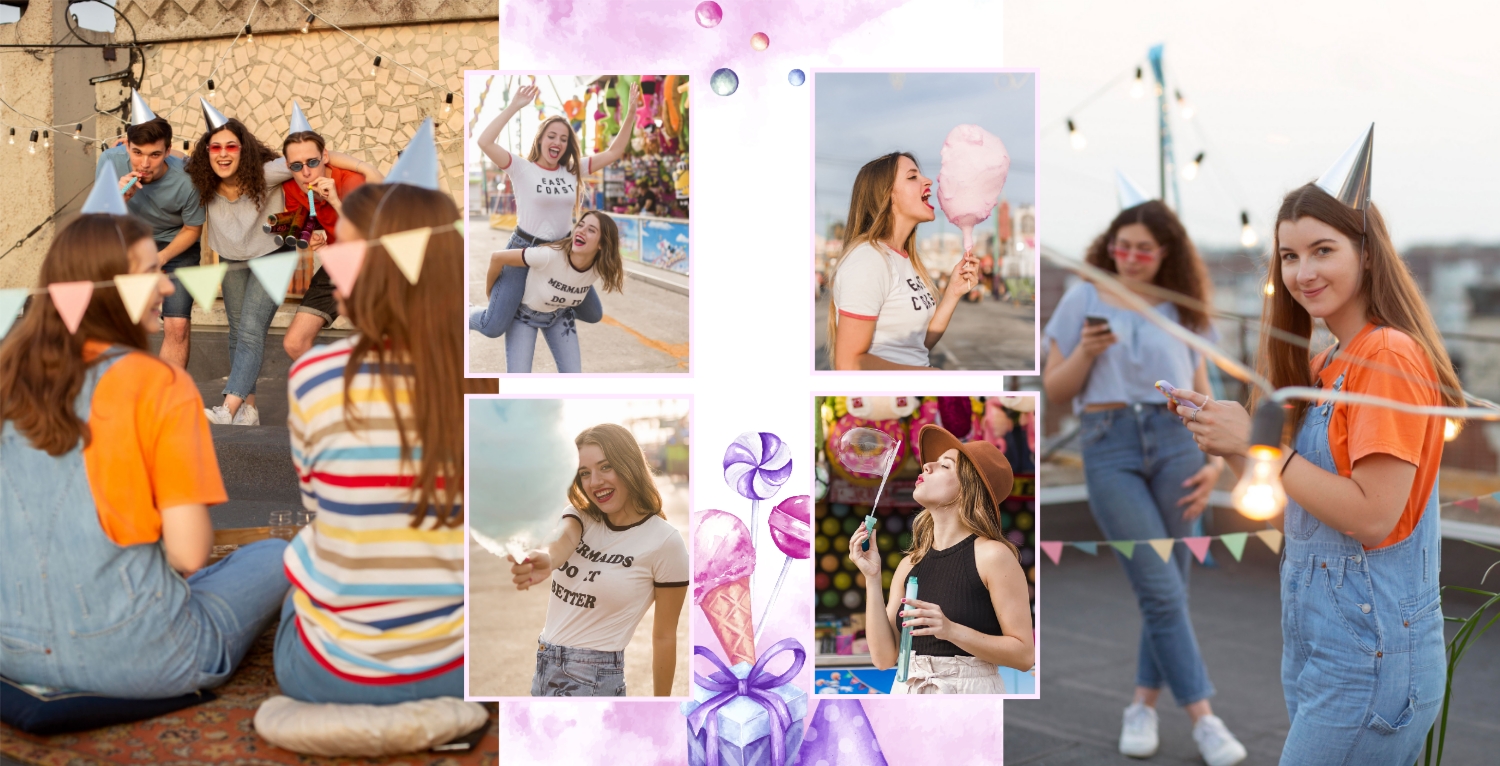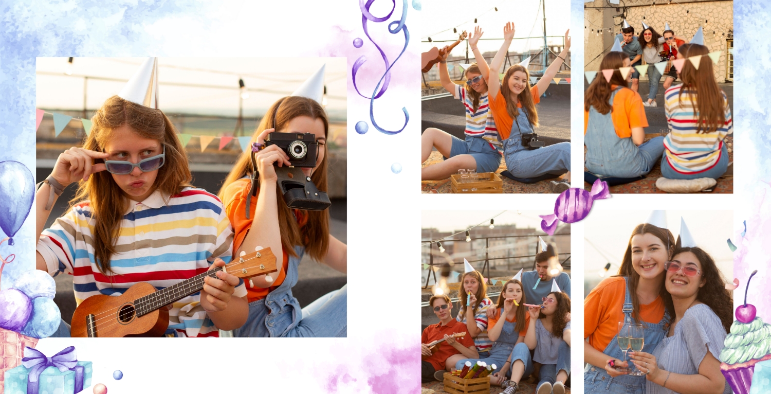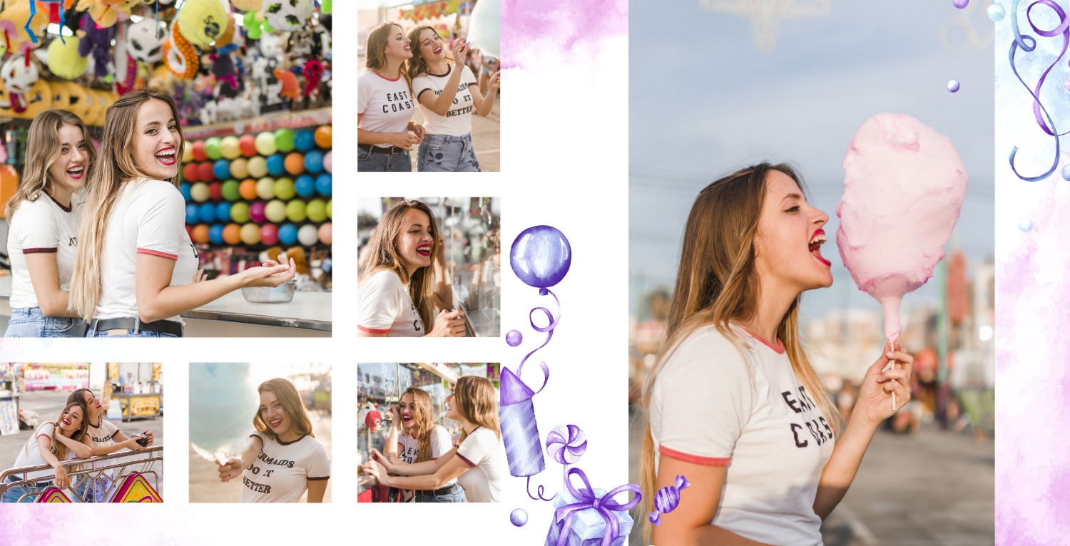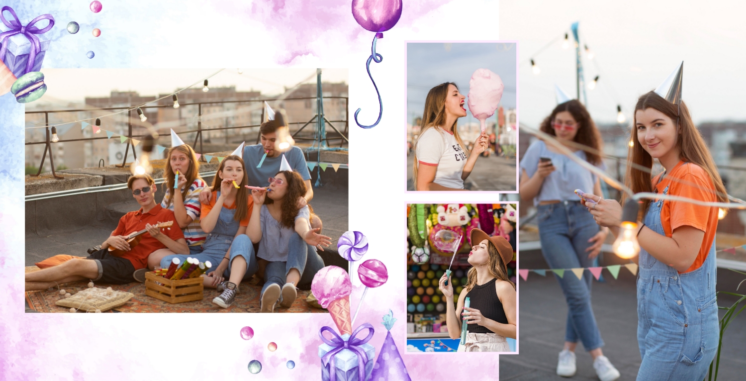 Шаблон фотокниги для детских фотографий на день рождения, оформленный в стиле принцессы, очень милый и волшебный. Этот шаблон поможет создать уникальный альбом в честь дня рождения вашей маленькой принцессы. Обложка фотокниги оформлена в стиле принцессы, с изображением девочки в роли принцессы, а также с использованием розовых, фиолетовых и других нежных цветов. Используйте страницы для добавления цитат о принцессах, счастье и любви к вашей дочери. Вы также можете писать поздравления и пожелания на страницах с фотографиями. Используя такой панорамный квадратный шаблон для фотокниги в твердой обложке, вы сможете легко создать волшебный и милый фотоальбом, который будет долгие годы напоминать вам о счастливом дне рождения вашей дочери. Онлайн-конструктор предоставляет возможность настраивать шаблон и добавлять свои фотографии и тексты, чтобы сделать альбом уникальным и особенным.