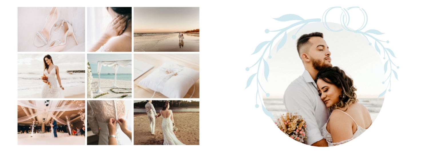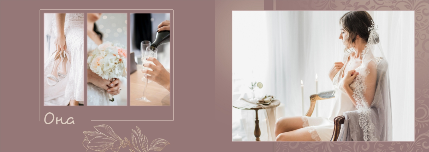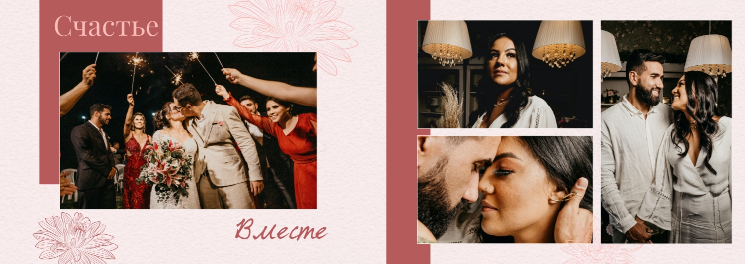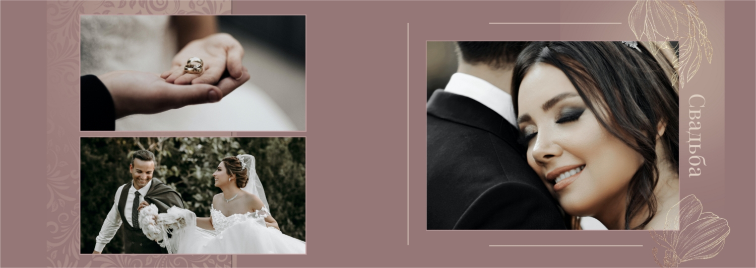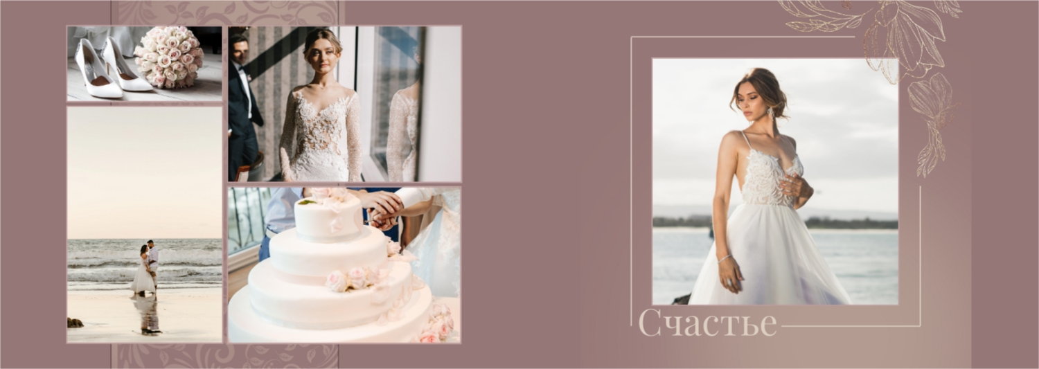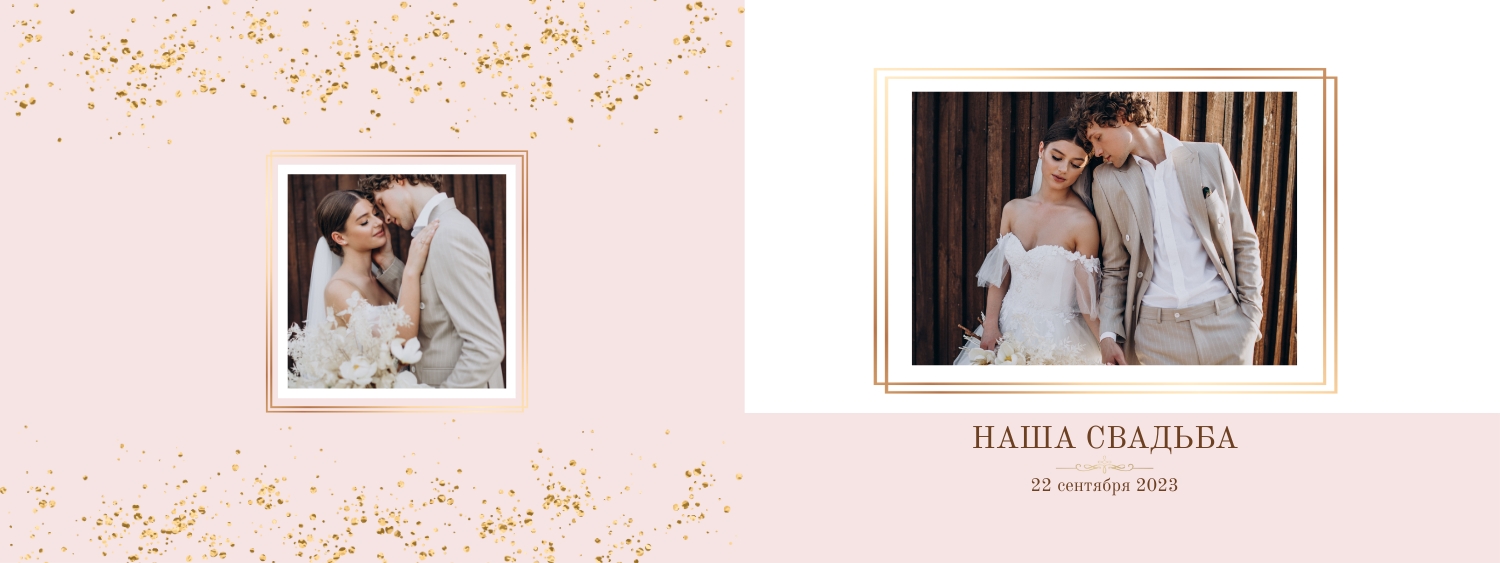 Шаблон фотокниги для свадебных фотографий - это готовый дизайн, который вы можете использовать в онлайн-конструкторе для создания своего уникального фотоальбома свадьбы. Этот шаблон предоставляет основу для оформления вашего альбома, включая размещение фотографий, выбор стилей шрифтов, распределение элементов и создание общей эстетики. Используя такой шаблон, вы можете легко создать свою уникальную широкую свадебную фотокнигу в твердой обложке. Просто загрузите свои фотографии, вставьте текст и настройте дизайн в соответствии с вашими предпочтениями. В онлайн-конструкторе есть широкий выбор шаблонов и инструментов для настройки, чтобы ваша фотокнига стала по-настоящему особенной и запоминающейся.