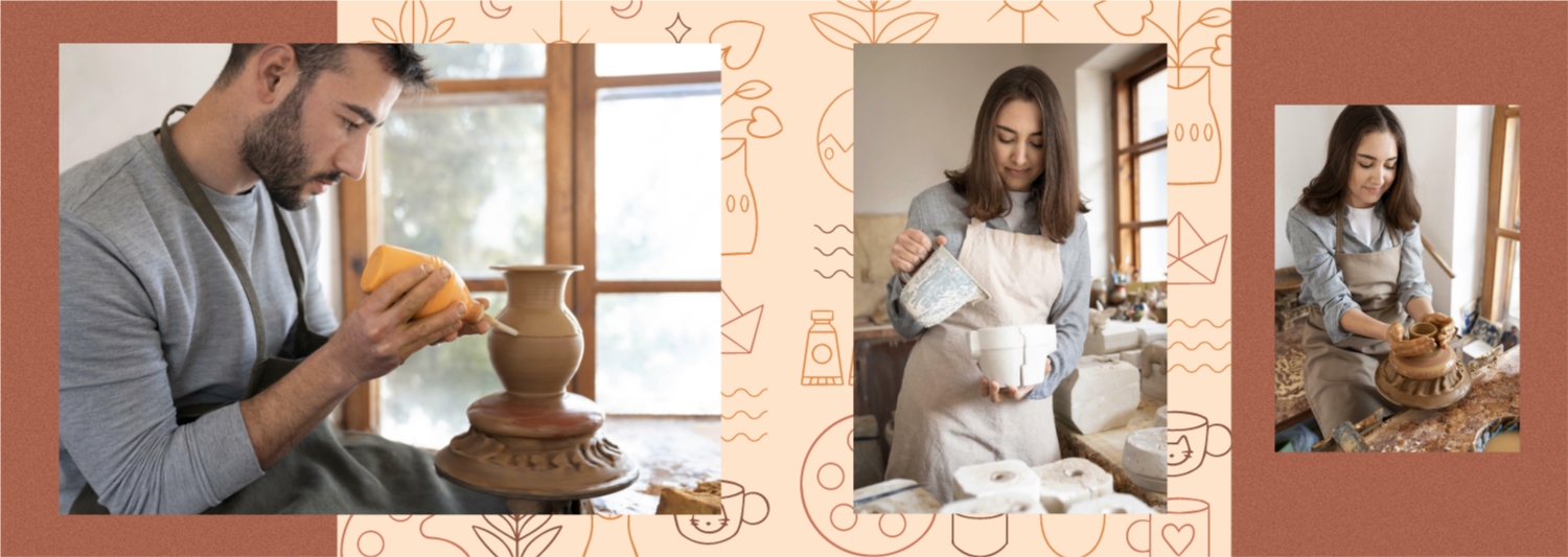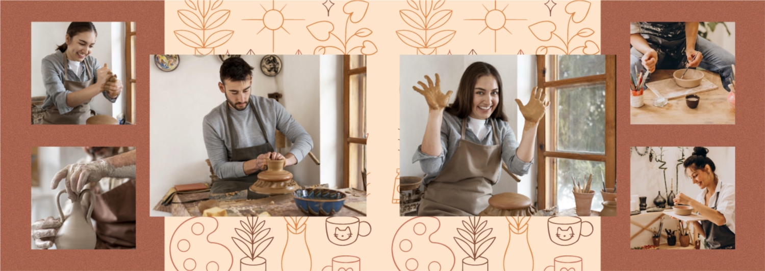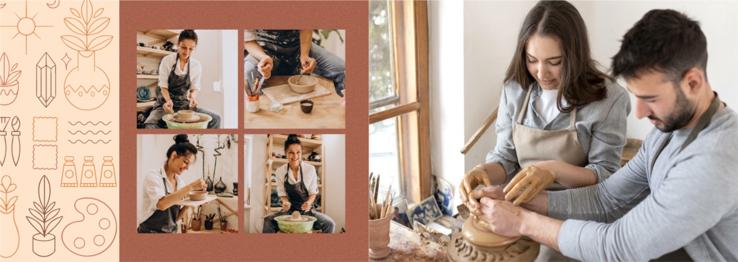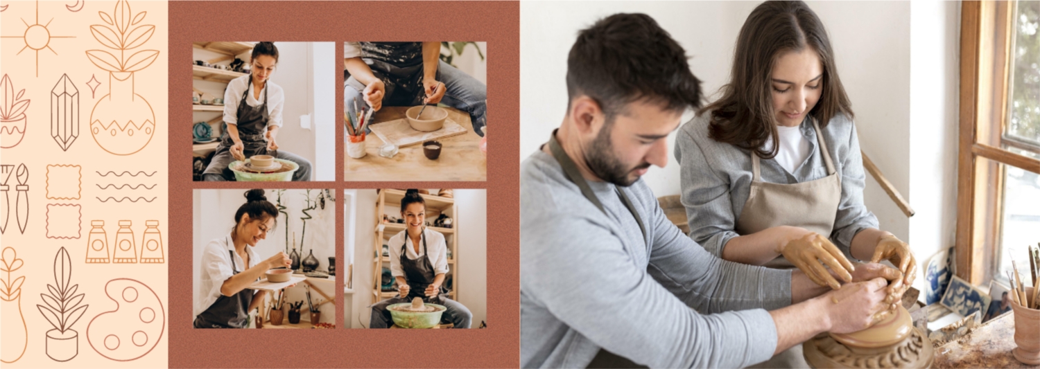 Шаблон фотокниги "Лучшие воспоминания с мастер-класса гончарства" представляет собой идеальную основу для сохранения и поделки ваших незабываемых моментов, связанных с мастерством в гончарном деле. Этот альбом является исключительной формой, позволяющей олицетворить вашу любовь к глине и созданию уникальных керамических произведений. На обложке фотокниги мы предлагаем поместить изображение вашего самого любимого гончарного шедевра. Это может быть чашка, ваза или любой другой предмет, который вы создали своими руками. Вокруг этого изображения можно добавить декоративные элементы в стиле гончарства, такие как глиняные узоры или фрагменты непокрытой глазурью. Не забудьте включить в фотокнигу фотографии с моментами, когда вы работали вместе с друзьями или семьей. Это добавит теплоты и эмоциональной ценности вашей книге, отражая вашу страсть к гончарству и тесные отношения с близкими. Используя этот шаблон в нашем онлайн-конструкторе, вы сможете создать уникальную широкую фотокнигу в твердой обложке, которая станет не только драгоценным артефактом в вашей коллекции, но и замечательным подарком для друзей и близких, делясь с ними вашими лучшими моментами из мира гончарства.