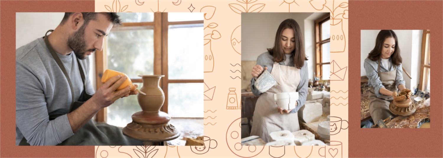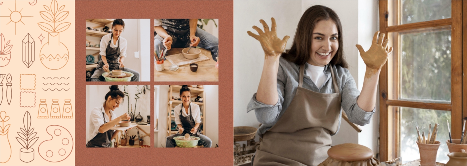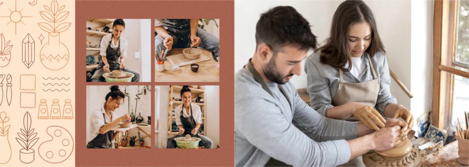 Шаблон фотокниги "Лучшие воспоминания с мастер-класса гончарства" представляет собой идеальную основу для сохранения и поделки ваших незабываемых моментов, связанных с мастерством в гончарном деле. Этот альбом является исключительной формой, позволяющей олицетворить вашу любовь к глине и созданию уникальных керамических произведений. На обложке фотокниги мы предлагаем поместить изображение вашего самого любимого гончарного шедевра. Это может быть чашка, ваза или любой другой предмет, который вы создали своими руками. Вокруг этого изображения можно добавить декоративные элементы в стиле гончарства. Другие страницы также можно украсить на личный вкус. Используя этот шаблон в нашем онлайн-конструкторе, вы сможете создать уникальную широкую панорамную фотокнигу, которая станет не только драгоценным артефактом в вашей коллекции, но и замечательным подарком для друзей и близких, делясь с ними вашими лучшими моментами из мира гончарства.