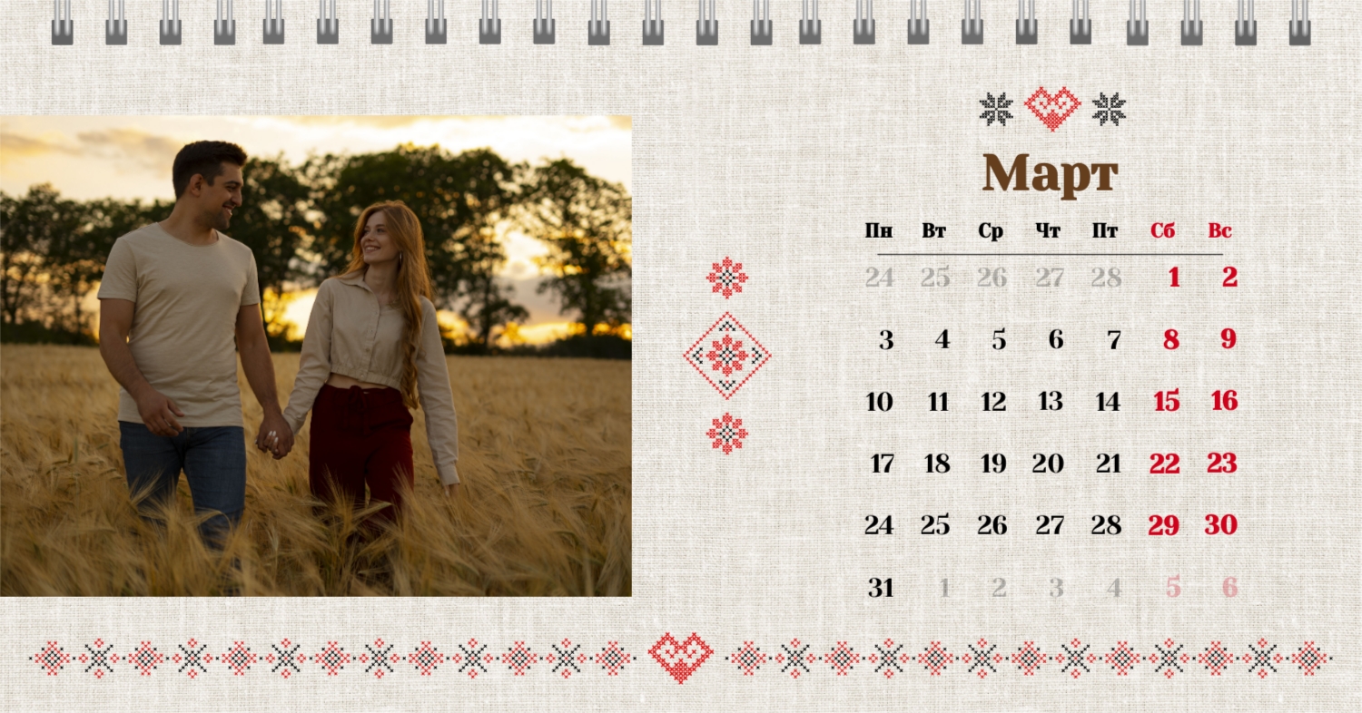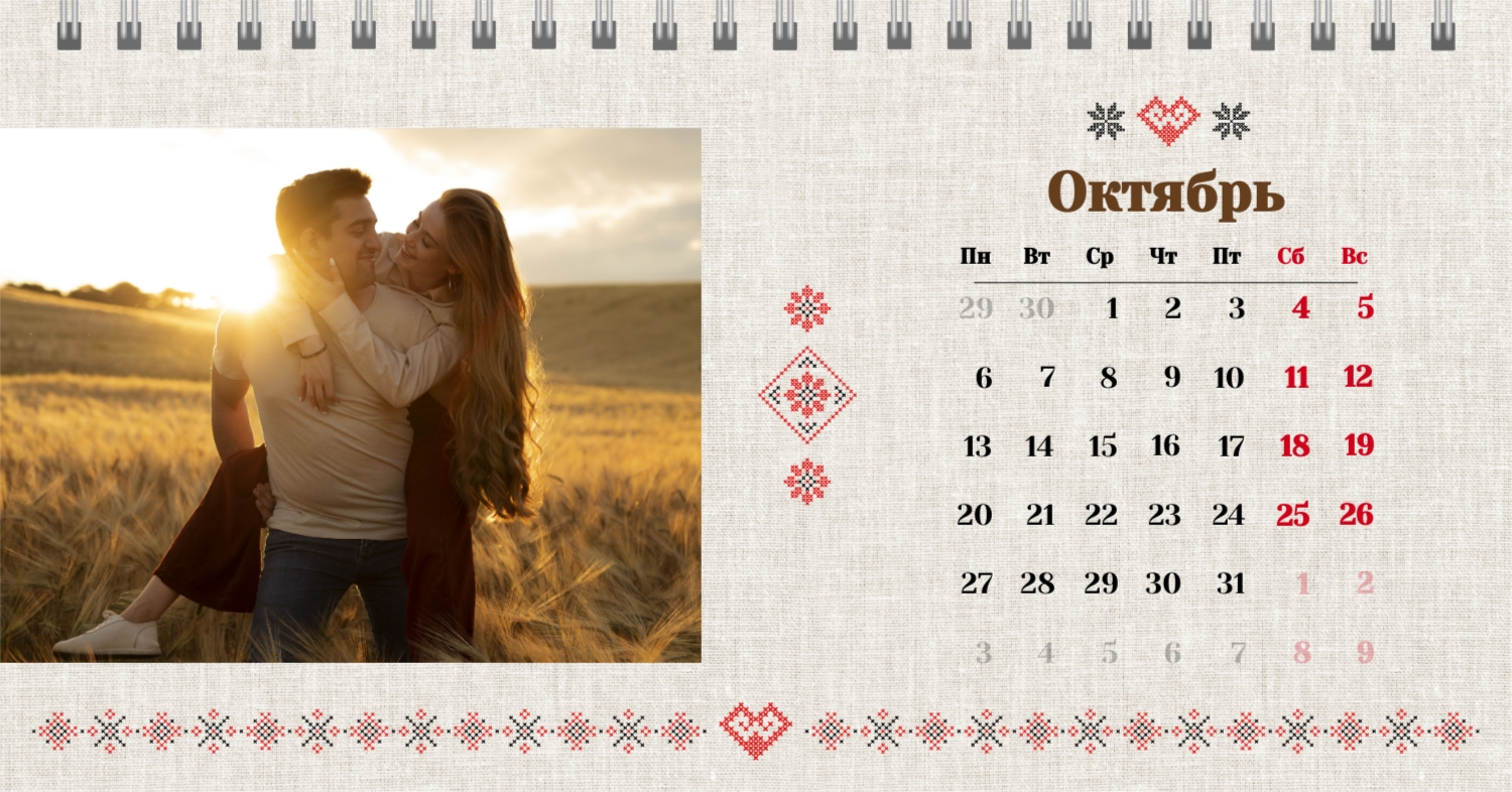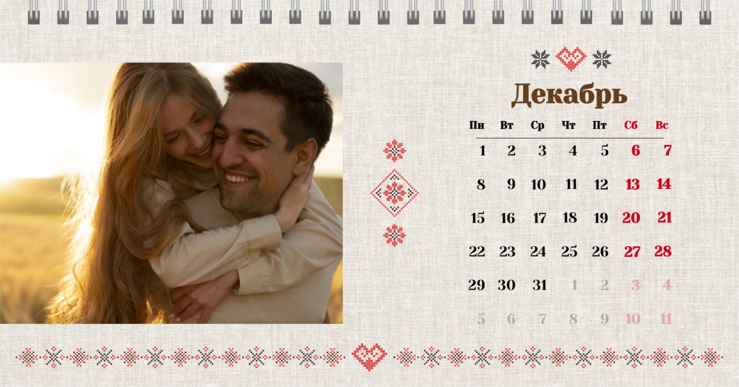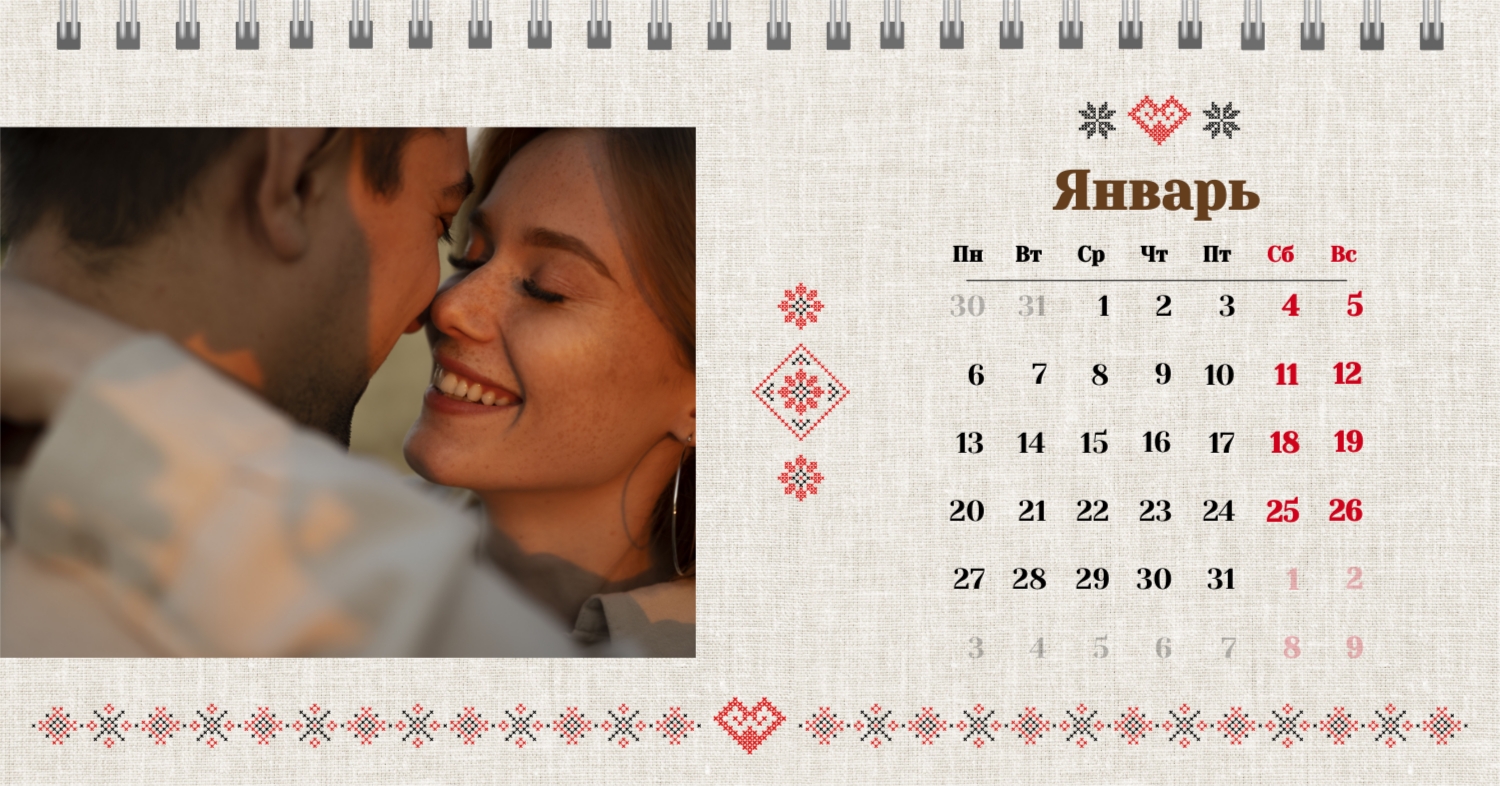 Шаблон "Счастливая зима для влюбленных" представляет собой идеальное сочетание уюта и романтики, созданное специально для пар, желающих отмечать свои важные даты в теплой зимней атмосфере. Все элементы этого календаря нацелены на создание теплого и вдохновляющего настроения. Онлайн-конструктор предоставляет широкий спектр возможностей для персонализации этого шаблона. Вы можете легко изменить цветовую гамму, выбрав те оттенки, которые отражают вашу уникальную любовь. Шаблон "Счастливая зима для влюбленных" дает вам возможность не только следить за датами, но и создавать вместе с вашими воспоминаниями неповторимую картину вашего совместного времени.