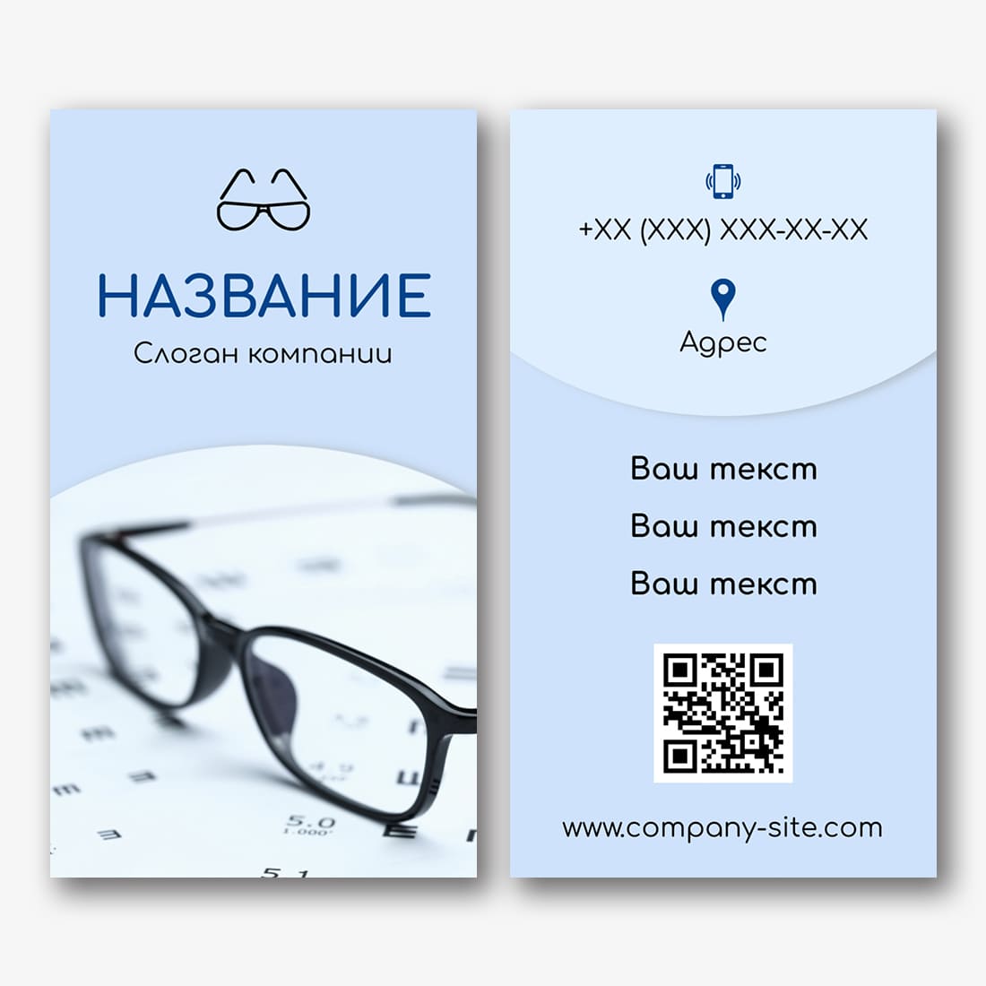 Шаблон визитки яркой, интересной для оптики вы легко сможете адаптировать под свои нужды. Этот шаблон предельно прост в использовании и подходит для настройки в вашем онлайн-конструкторе. Вы можете легко загрузить его и настроить под свои нужды: изменить цветовую схему, добавить свой логотип, а также внести другие дополнительные элементы дизайна, чтобы сделать визитку более персональной и уникальной для вашей оптики. Шаблон предоставляет вам все необходимые инструменты для создания привлекательной и информативной визитки, которая поможет привлечь новых клиентов и укрепить позиции вашего бизнеса в индустрии оптики.