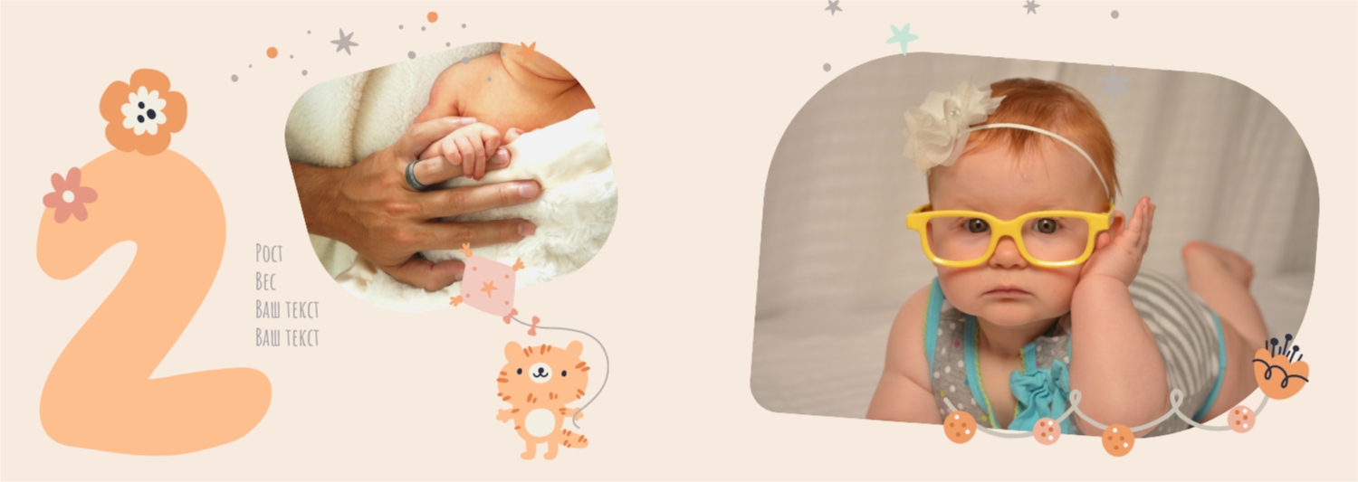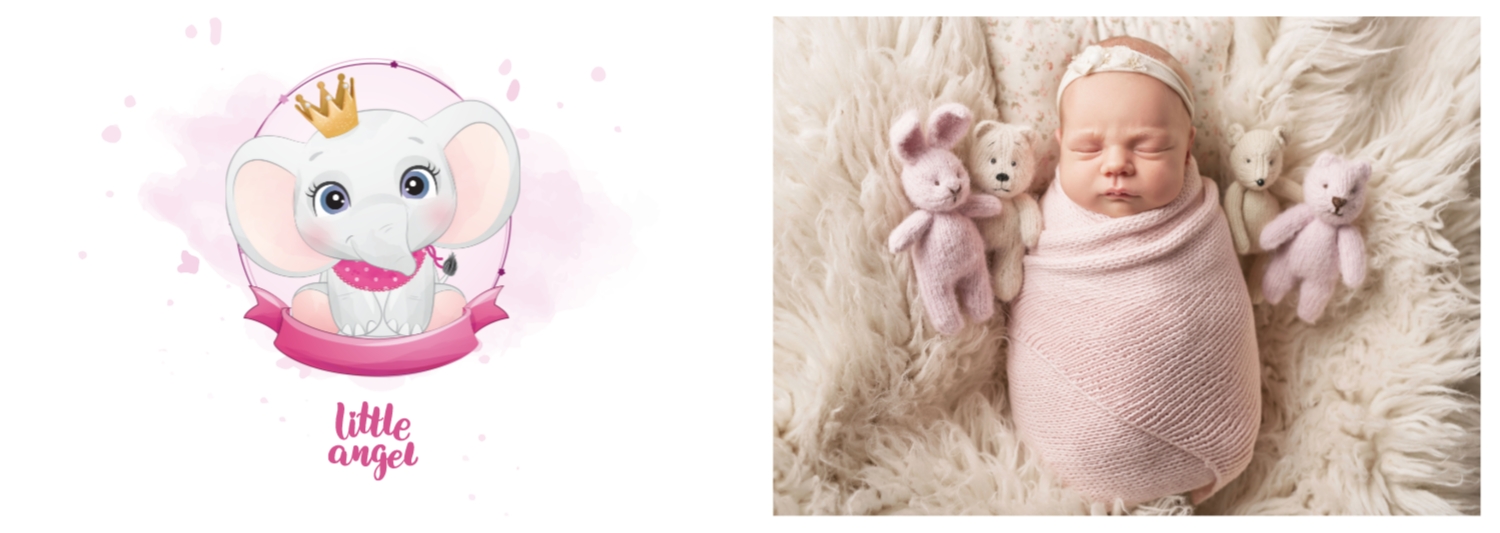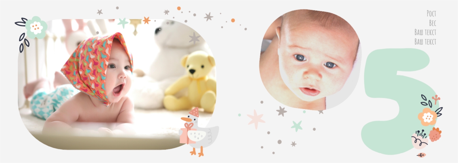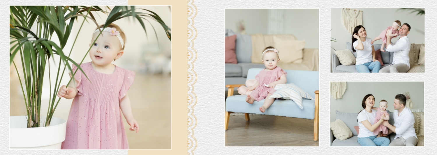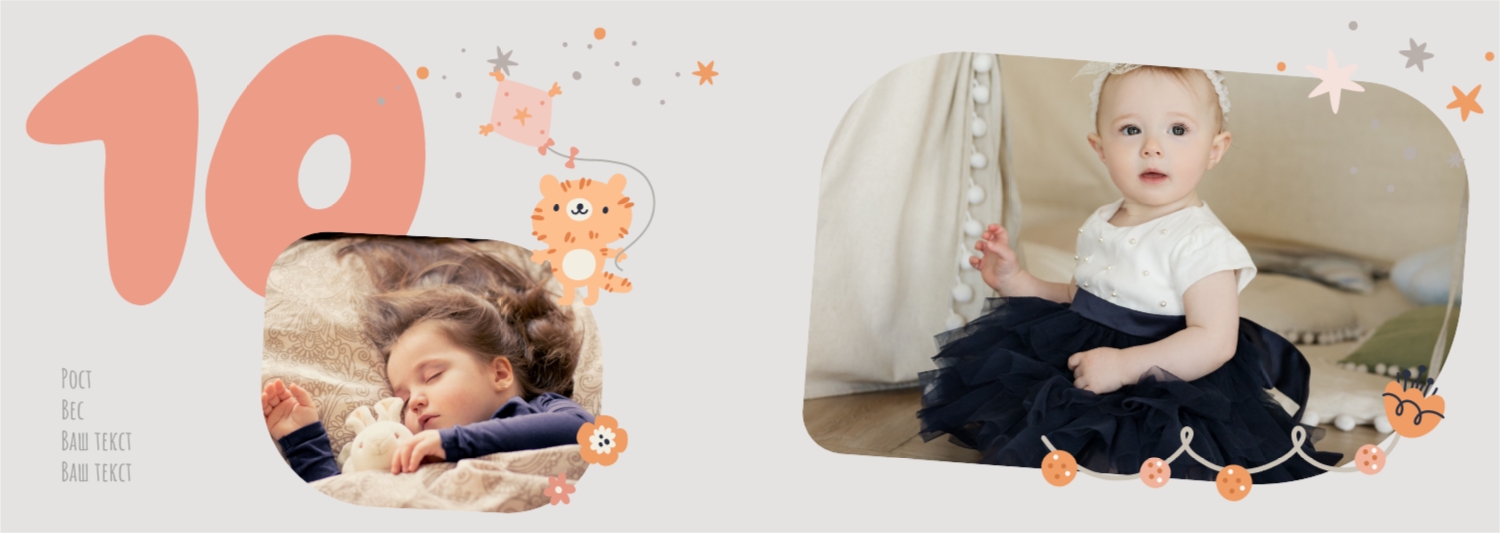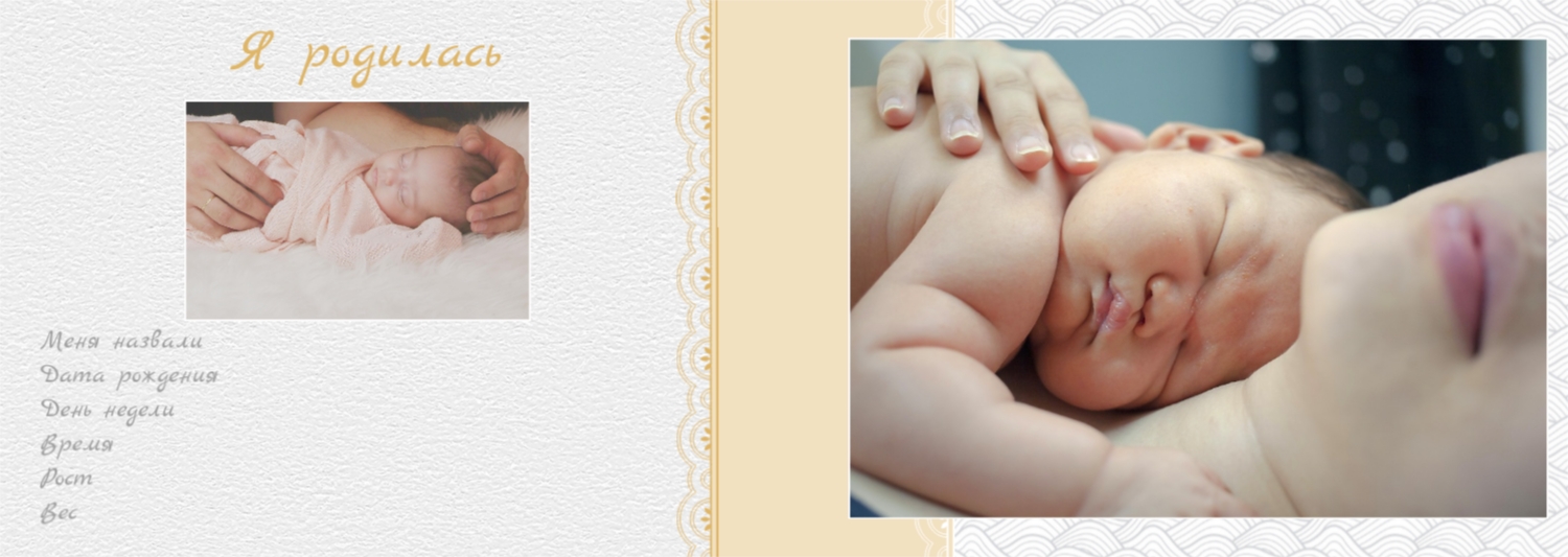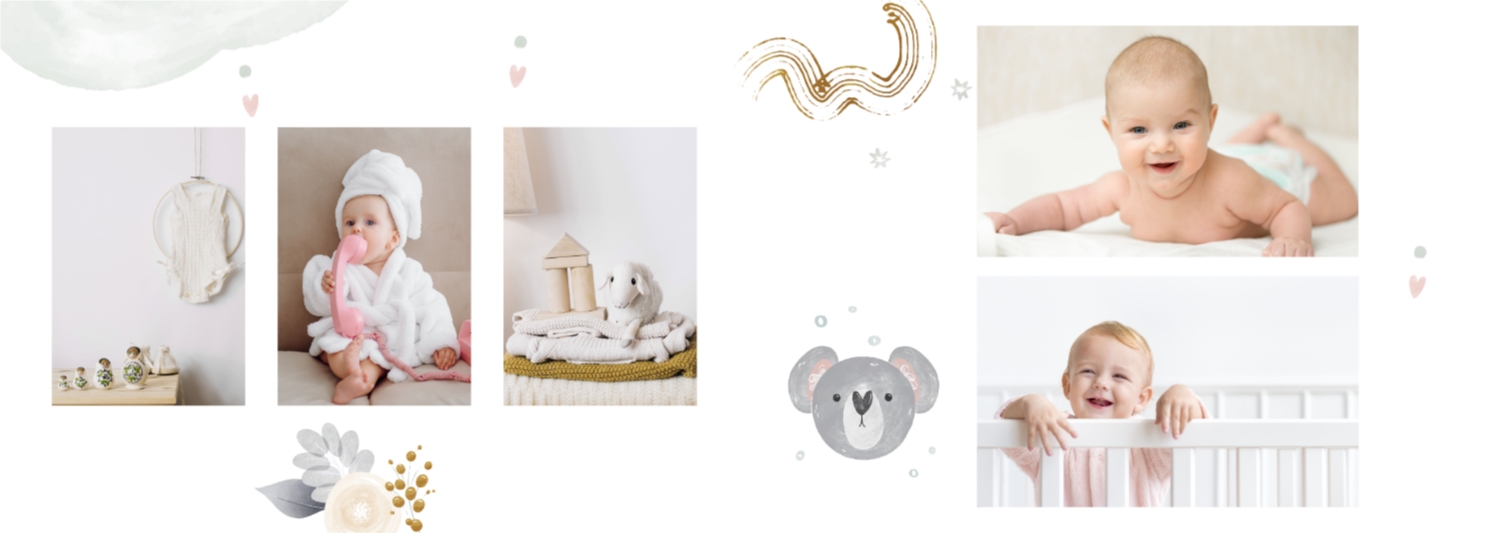Бесплатный шаблон детской фотокниги для новорожденной девочки. Создайте макет своими руками в онлайн-конструкторе фотокниг.