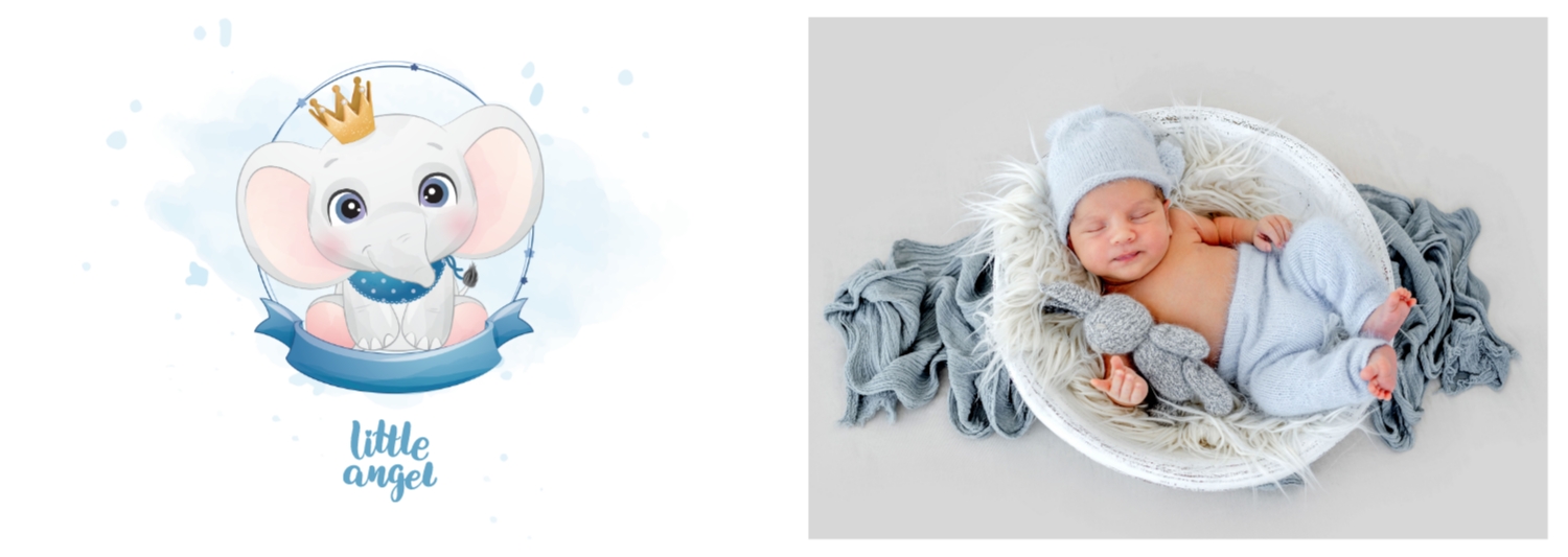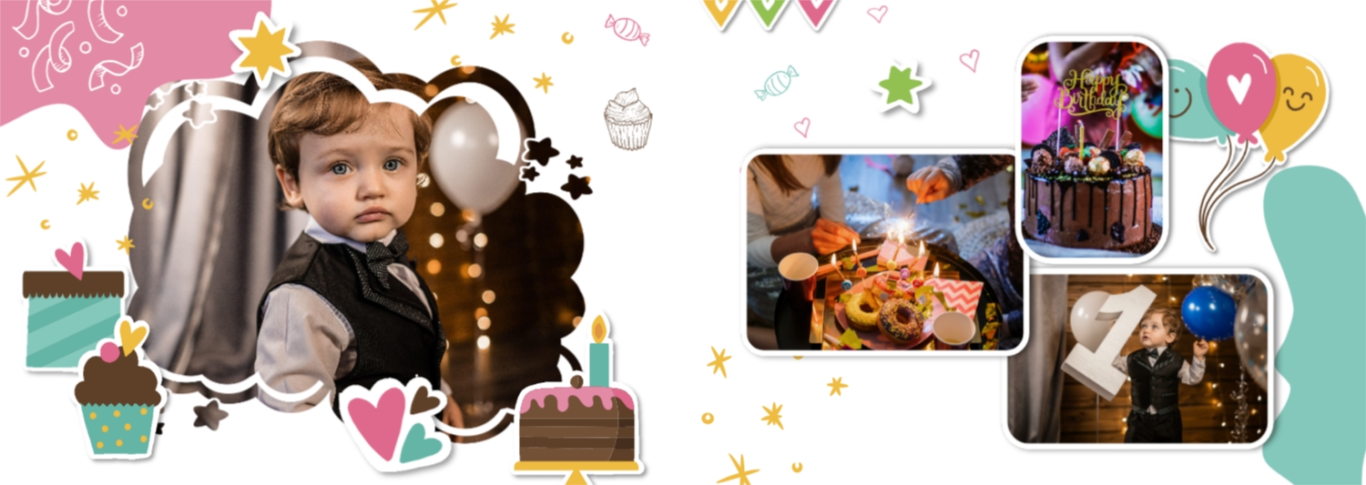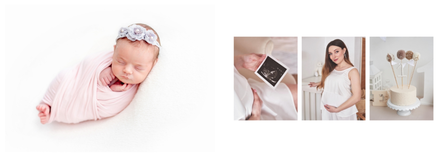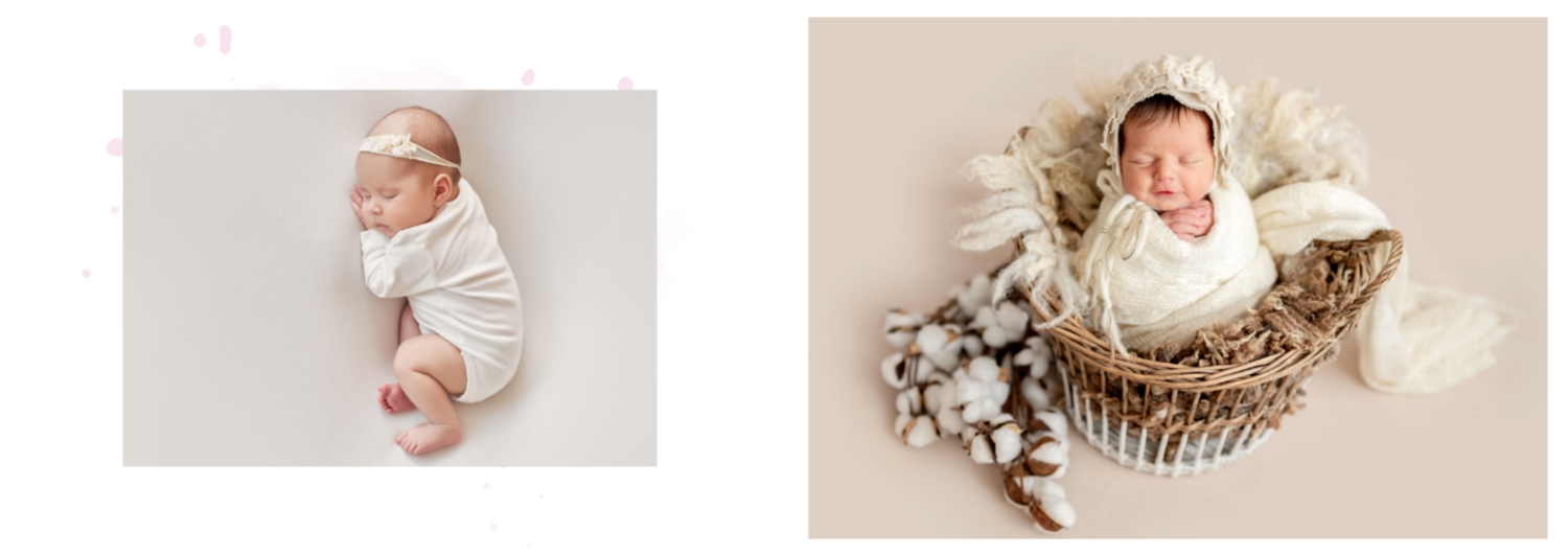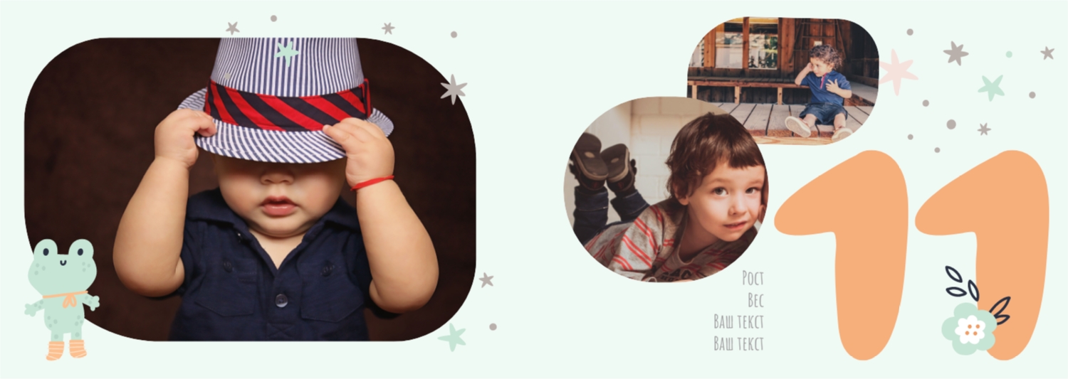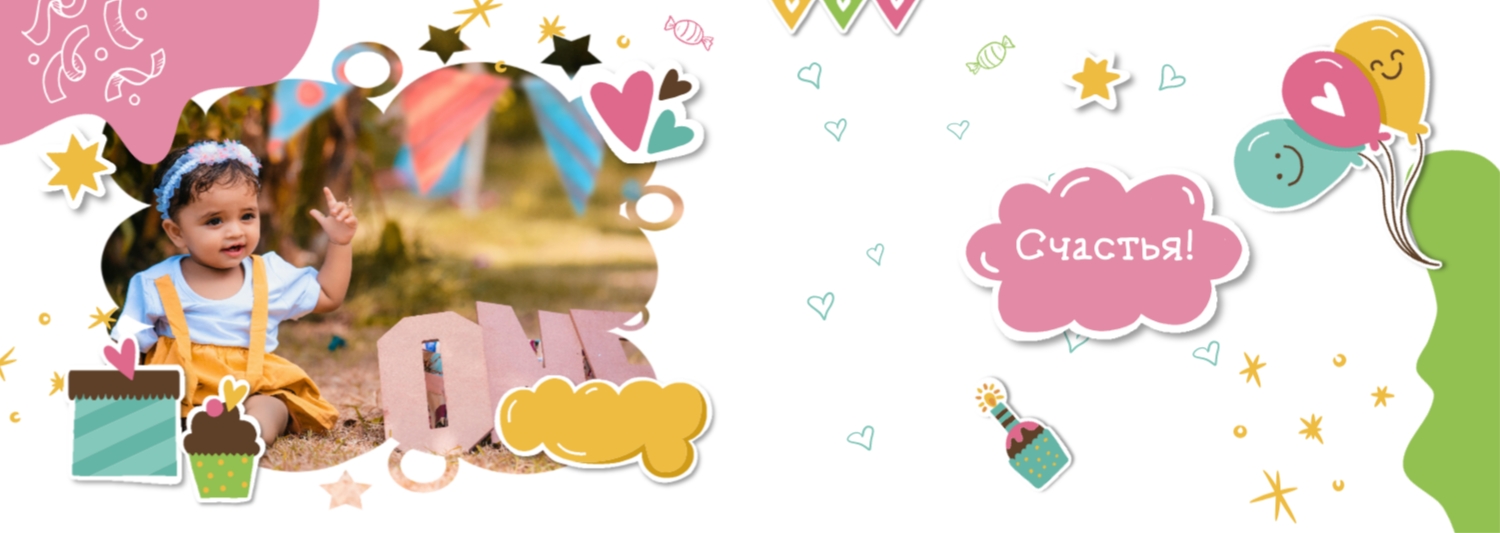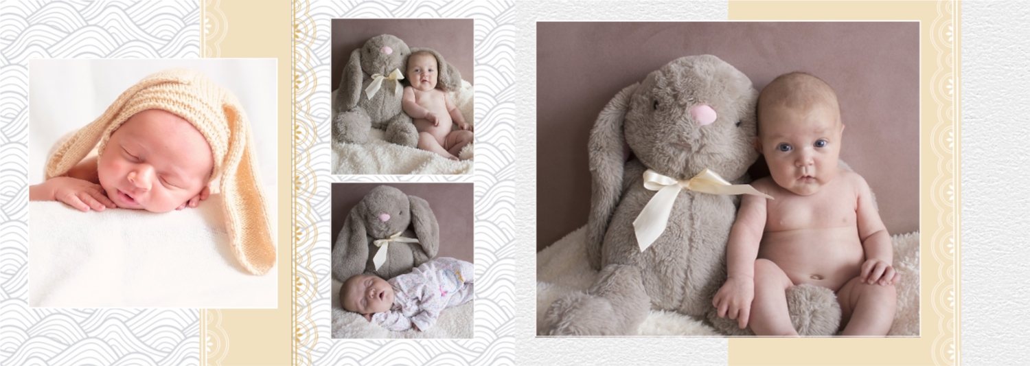 Бесплатный шаблон детской фотокниги для новорожденной девочки. Создайте макет своими руками в онлайн-конструкторе фотокниг.