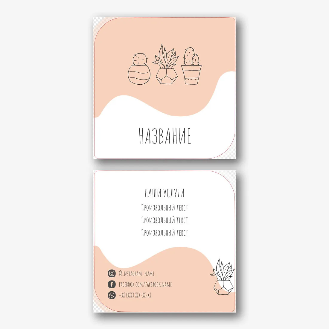 Шаблон фигурной визитки для флориста — это идеальное решение для тех, кто хочет выделиться в мире цветов и растений. Этот дизайн подходит для индивидуалов, работающих в сфере флористики, магазинов цветов, свадебных агентств или организаторов мероприятий, где цветы играют ключевую роль. Возможности редактирования в онлайн-конструкторе позволяют настроить этот шаблон под свои потребности. Вы можете легко изменить цвета, шрифты, добавить логотип или изображения цветов, чтобы создать уникальный и запоминающийся дизайн. Также можно варьировать форму визитки, добавляя элементы, которые отражают вашу индивидуальность и стиль. Используя этот шаблон в нашем онлайн-конструкторе, вы можете создать визитку своими руками, без необходимости обращаться к профессиональному дизайнеру. Это экономит время и деньги, а также позволяет вам полностью контролировать процесс создания вашей уникальной визитки.