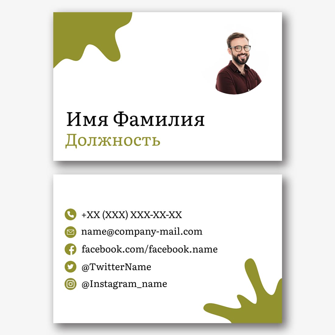 Бесплатный, стильный шаблон личной визитки с фото. Создайте макет своими руками в конструкторе визиток.