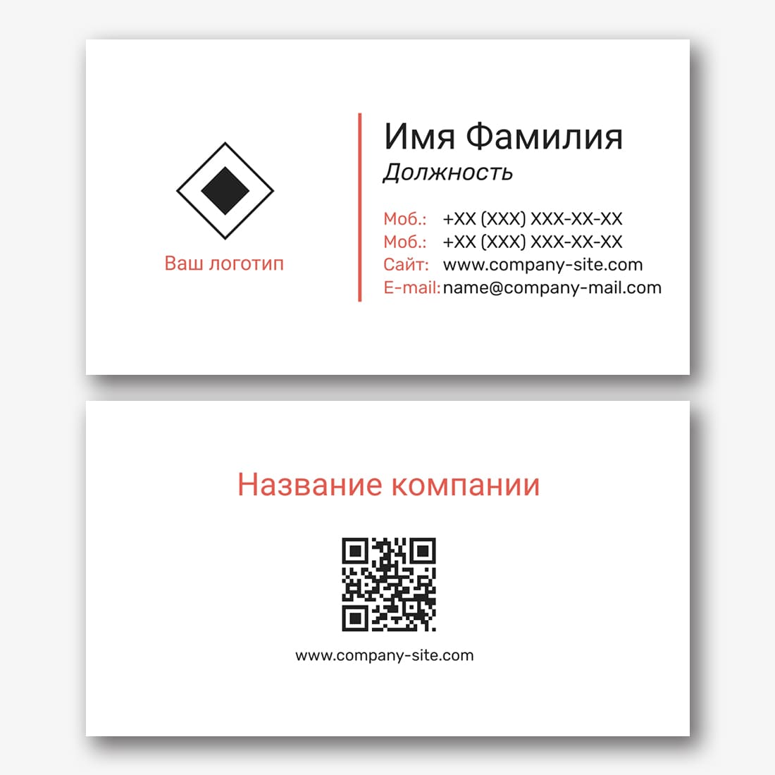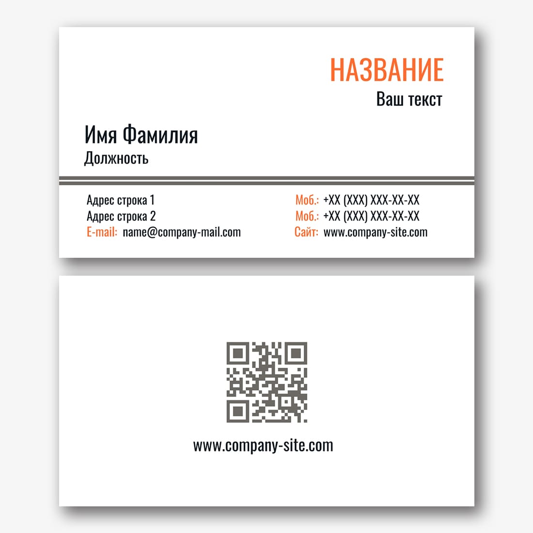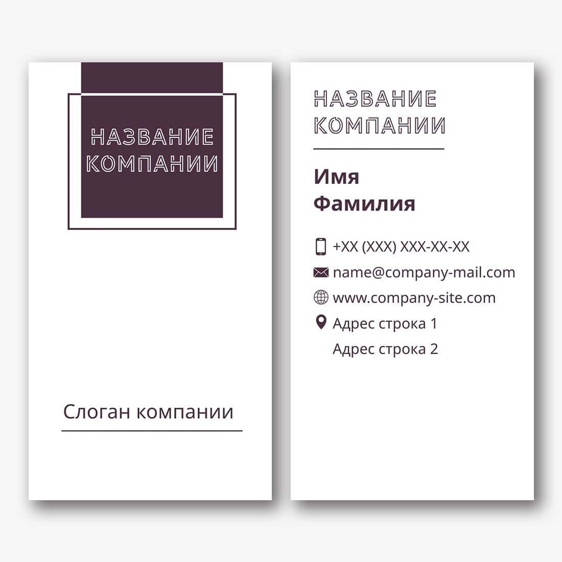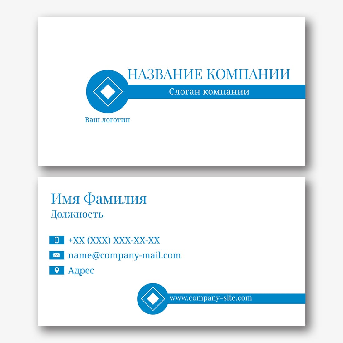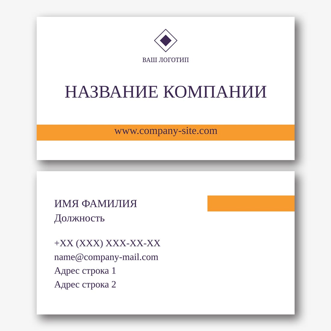 Бесплатный шаблон строгой, деловой, классической, простой визитки. Создайте макет своими руками в конструкторе визиток.