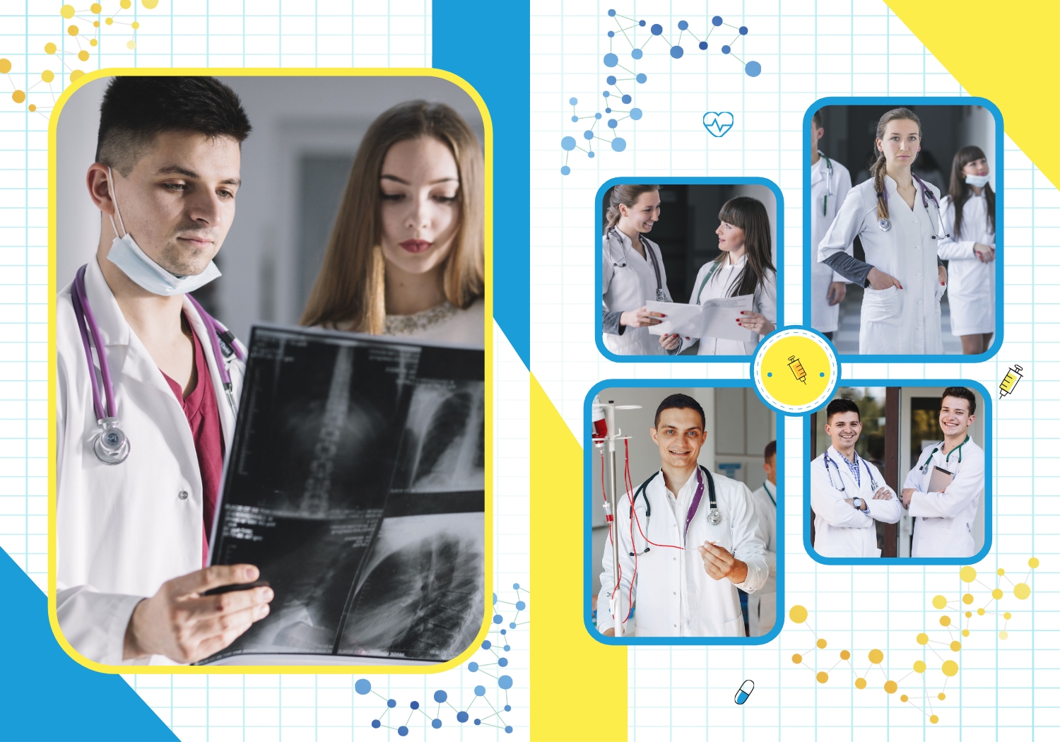 Готовый шаблон фотокниги для выпускника медицинского ВУЗа в украинском стиле представляет собой удивительно красочное и вдохновляющее творение, которое вы с лёгкостью можете адаптировать и настроить в нашем онлайн-конструкторе, чтобы создать по-настоящему уникальный фотоальбом, отражающий вашу неповторимую учебную и жизненную путь. В каждом развороте вертикального панорамного фотоальбома отражается ваш уникальный путь, начиная с учебы и заканчивая моментами радости и достижений во время учёбы в медицинском ВУЗе. Используя наш онлайн-конструктор, вы можете настроить этот шаблон под себя, выбрав цветовую гамму, добавив дополнительные страницы и вставив ваши собственные фотографии и тексты.