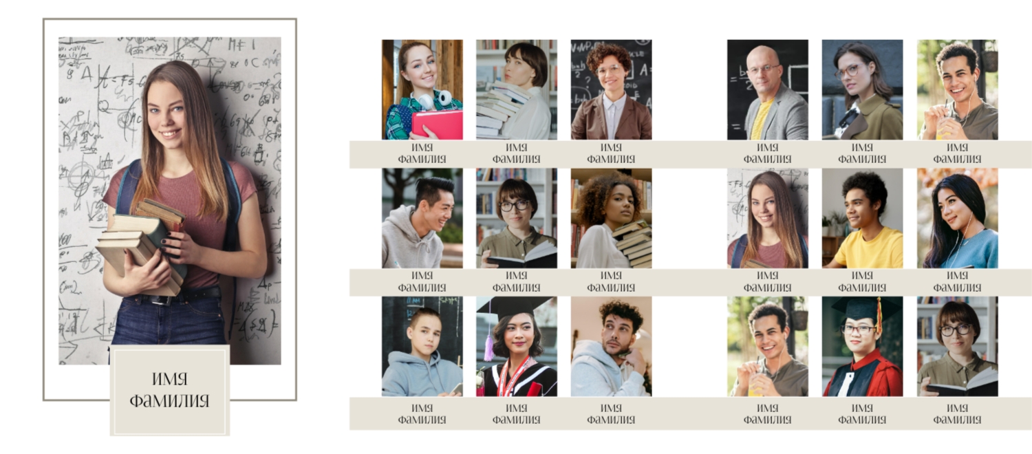 Готовый шаблон выпускной виньетки Трио для старшей школы — это идеальное решение для создания стильного и яркого альбома, который сохранит воспоминания об окончании школы. Такой шаблон позволяет легко собрать фотографии учеников, педагогов и сотрудников школы в едином стиле, что делает виньетку запоминающимся и символичным атрибутом выпускного. Этот шаблон подходит для широкого круга профессионалов: преподавателей, организаторов школьных мероприятий, сотрудников фотостудий и даже самих учеников и родителей, которые хотят сделать персонализированный подарок. Выпускные виньетки, созданные в таком формате, могут стать не только памятным сувениром, но и стильным портфолио для образовательных учреждений, позволяя показать классную атмосферу школы или подвести итоги учебного года. С помощью конструктора можно легко менять расположение фотографий, подбирать подходящие фоны и декоративные элементы, а также добавлять текстовые блоки с именами учеников, преподавателей, датами и другими значимыми деталями. Это позволяет каждому создать уникальную виньетку Трио, отражающую особенности класса, выбранные стили и индивидуальные предпочтения.