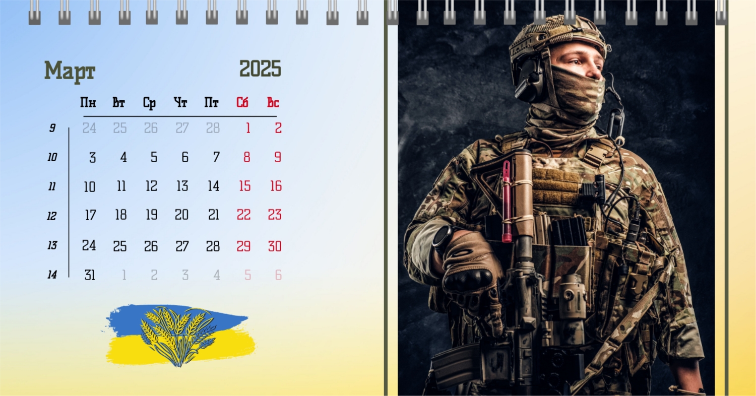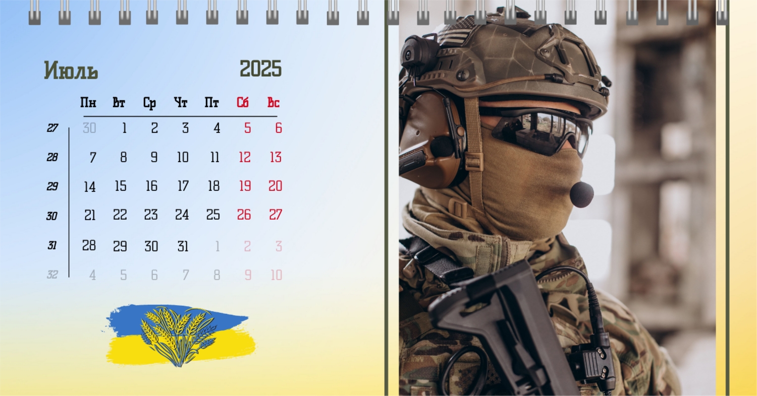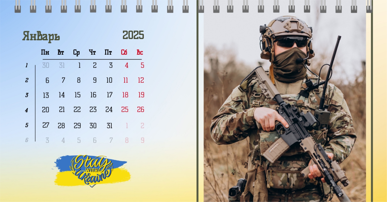 Наши пользователи могут воспользоваться уникальным шаблоном настольного календаря, который отличается особой национальной гордостью, посвященной украинским защитникам. Этот шаблон разработан с учетом национальных символов и героев, чтобы создать особенный календарь, отражающий важные события в истории Украины и почитающий тех, кто служил и защищал свою страну. В нашем удобном онлайн-конструкторе пользователи имеют широкий спектр возможностей для редактирования этого уникального шаблона. Вы можете легко настраивать фотографии, добавлять персональные подписи, выбирать цветовую палитру и шрифты, чтобы придать календарю индивидуальный характер. Возможность изменять формат дат и добавлять важные личные события делает каждый календарь уникальным и персонализированным. Онлайн-конструктор предоставляет простой и интуитивно понятный интерфейс, что делает процесс создания календаря увлекательным и доступным для всех.