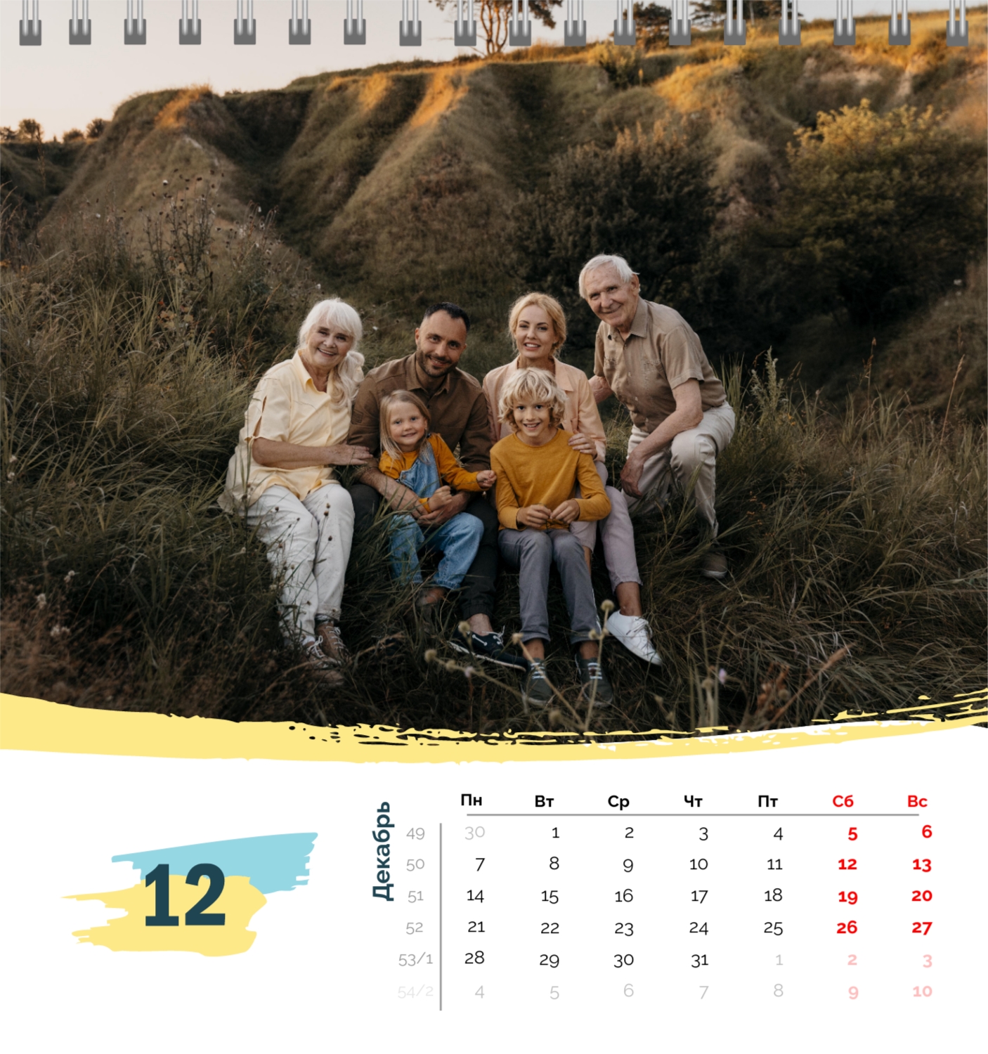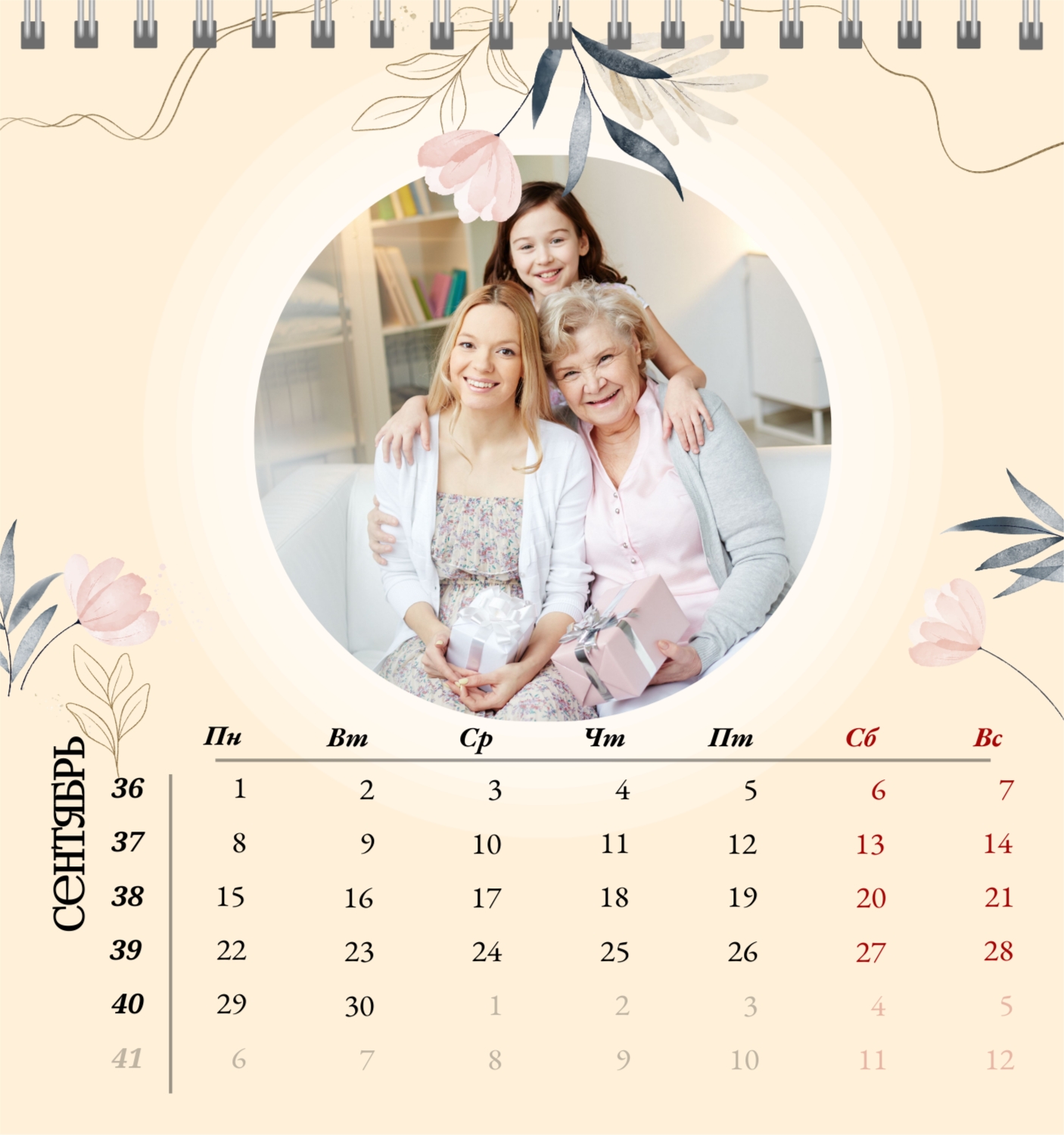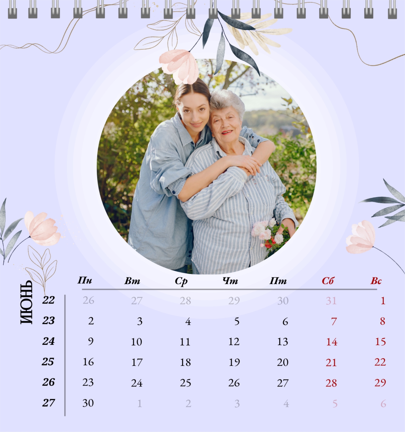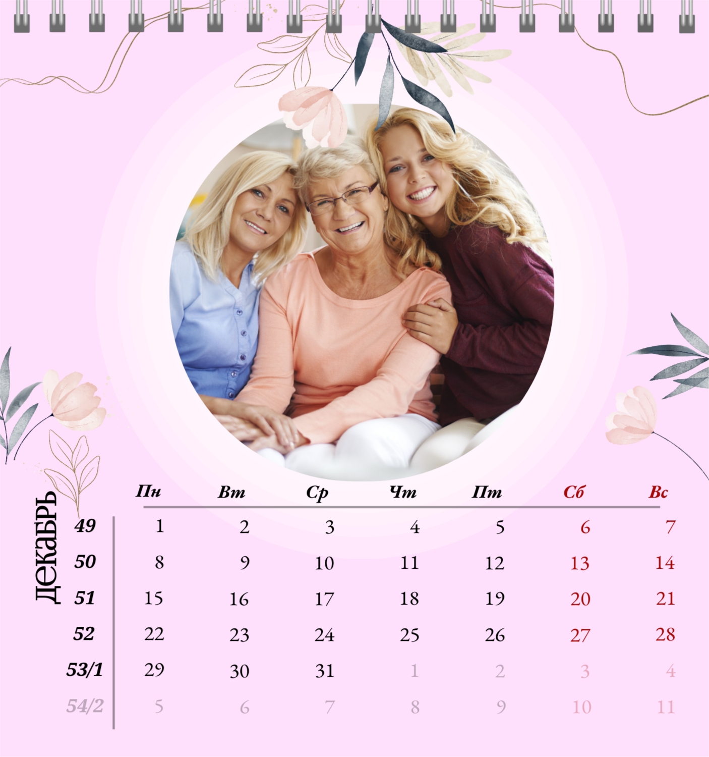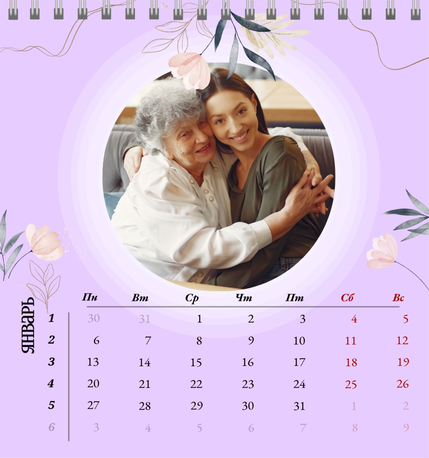 Бесплатный шаблон семейного календаря в подарок сестре, подруге. Создайте макет своими руками в конструкторе календарей.