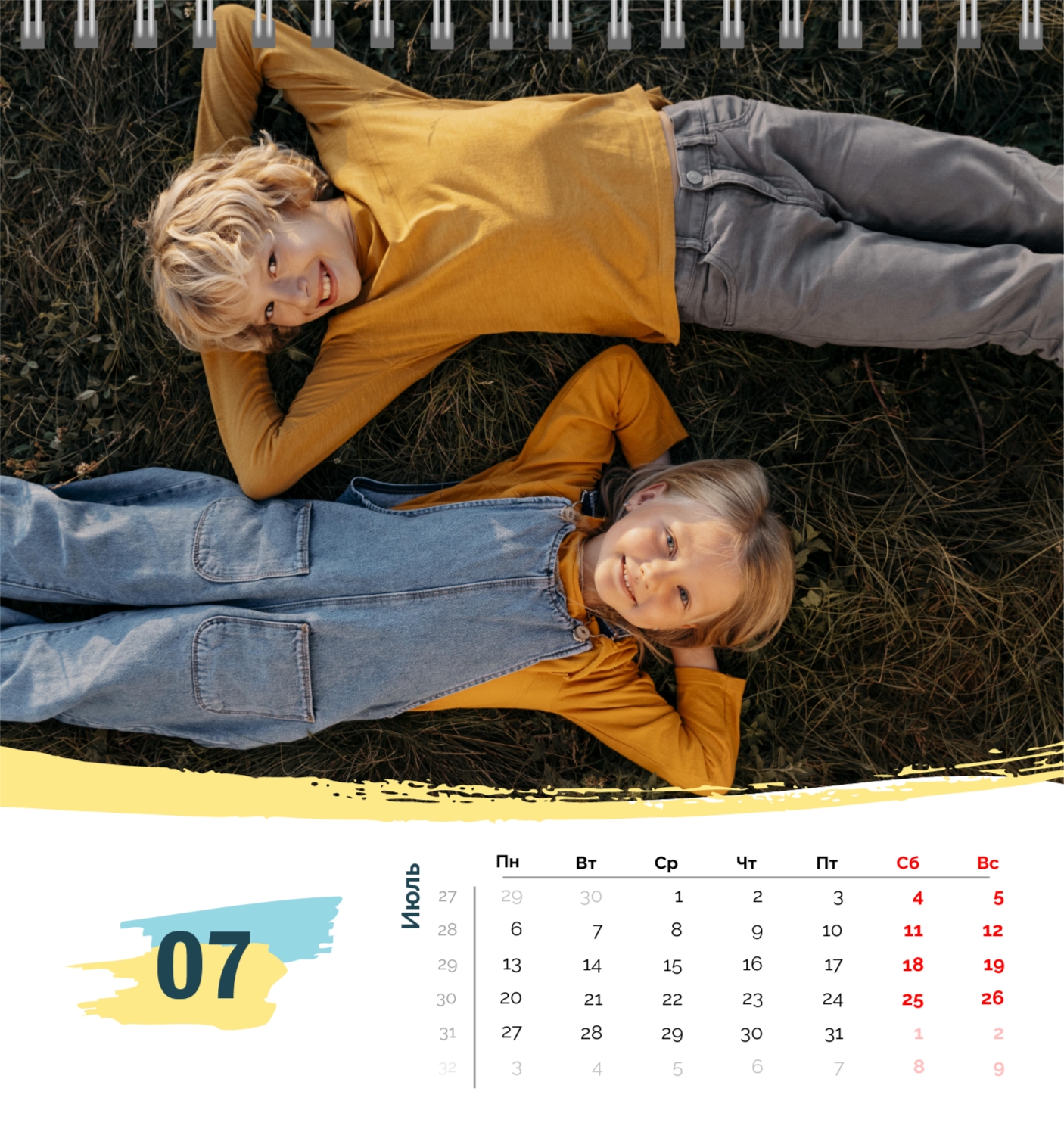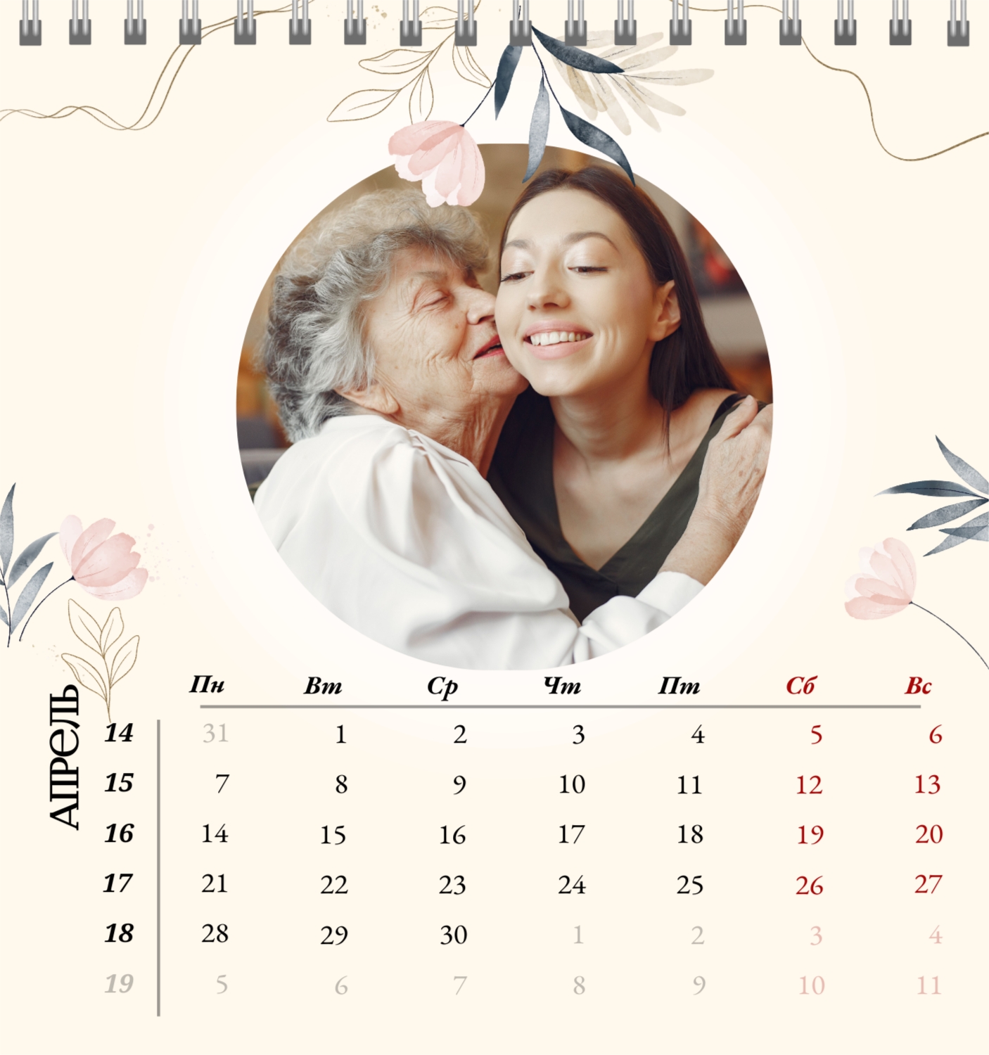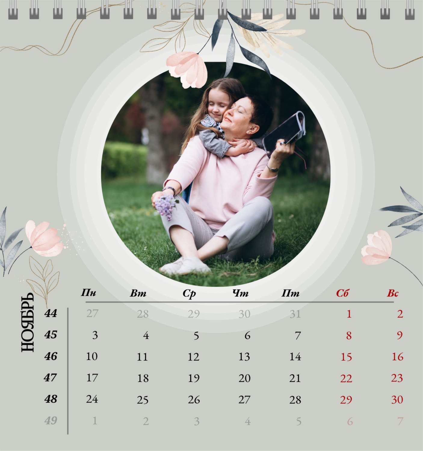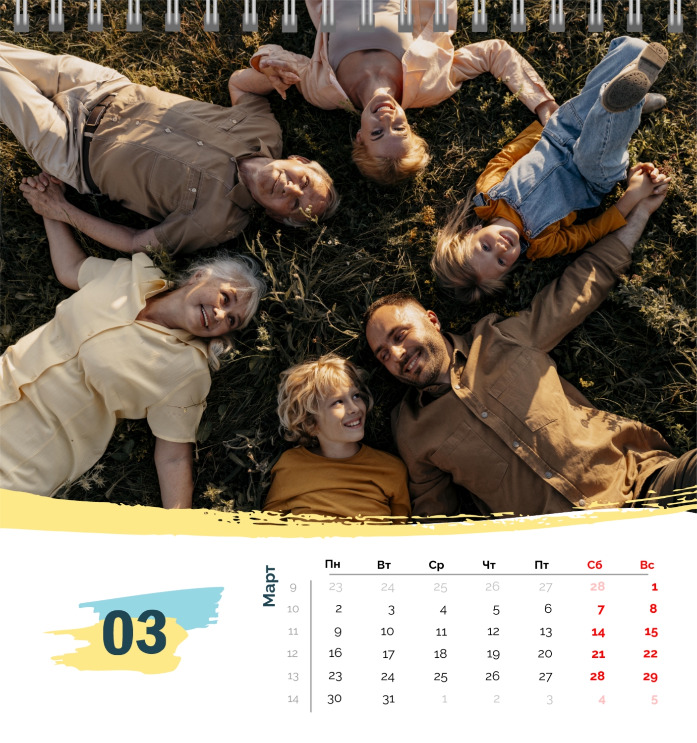 Бесплатный шаблон семейного календаря в подарок сестре, подруге. Создайте макет своими руками в конструкторе календарей.