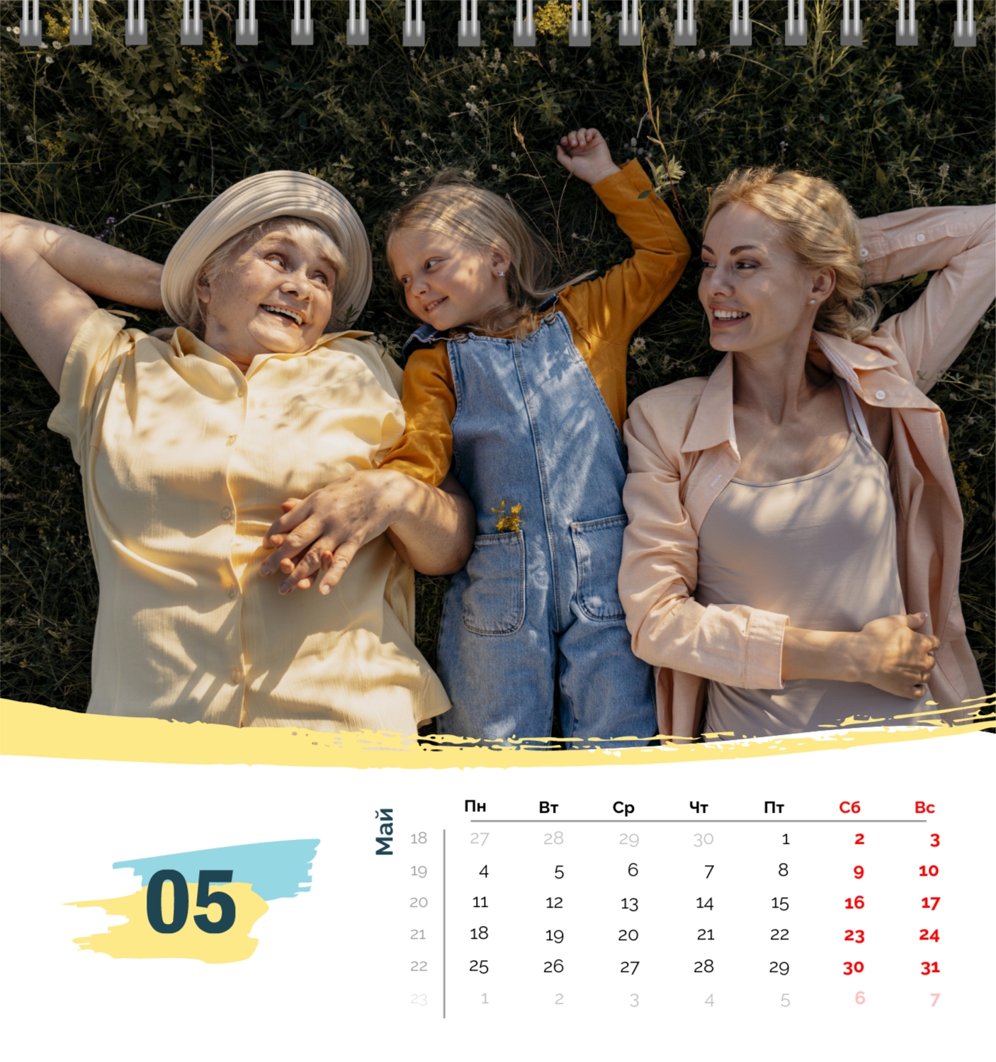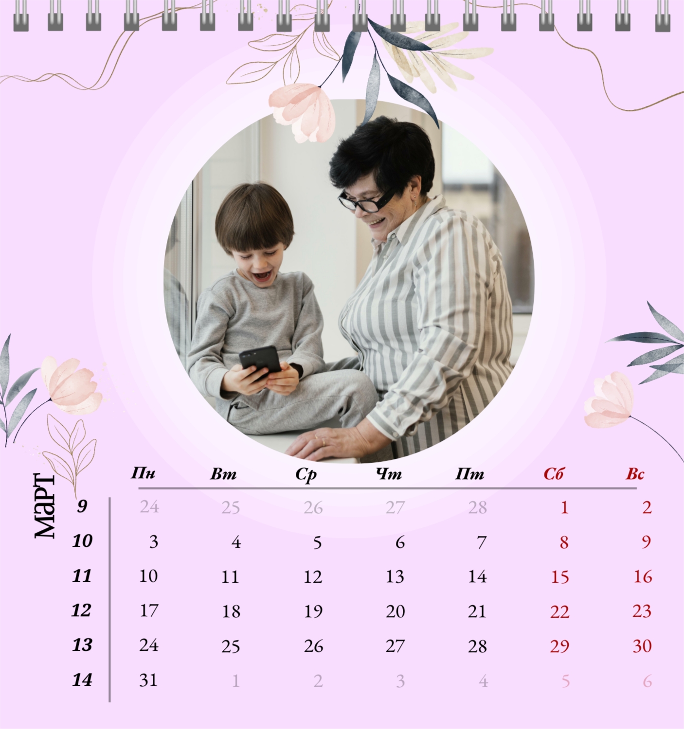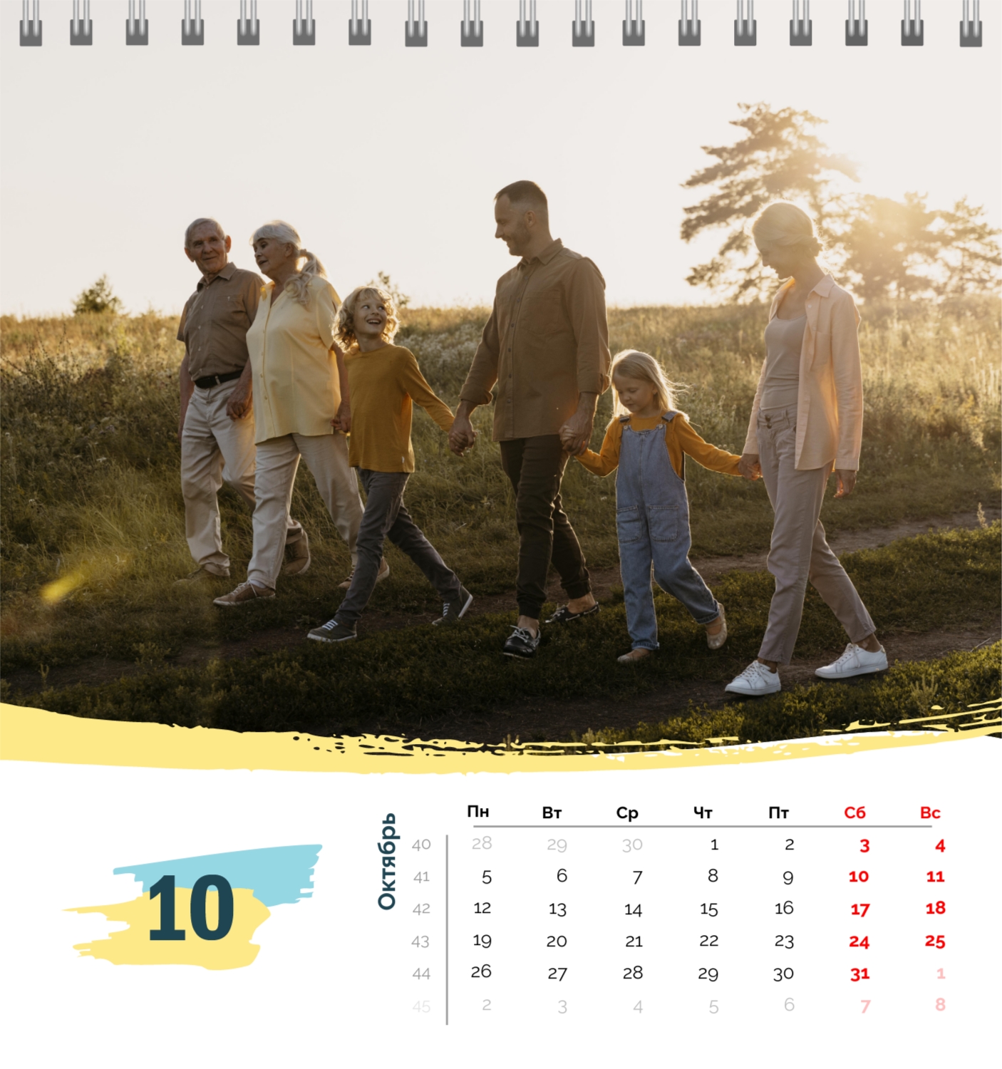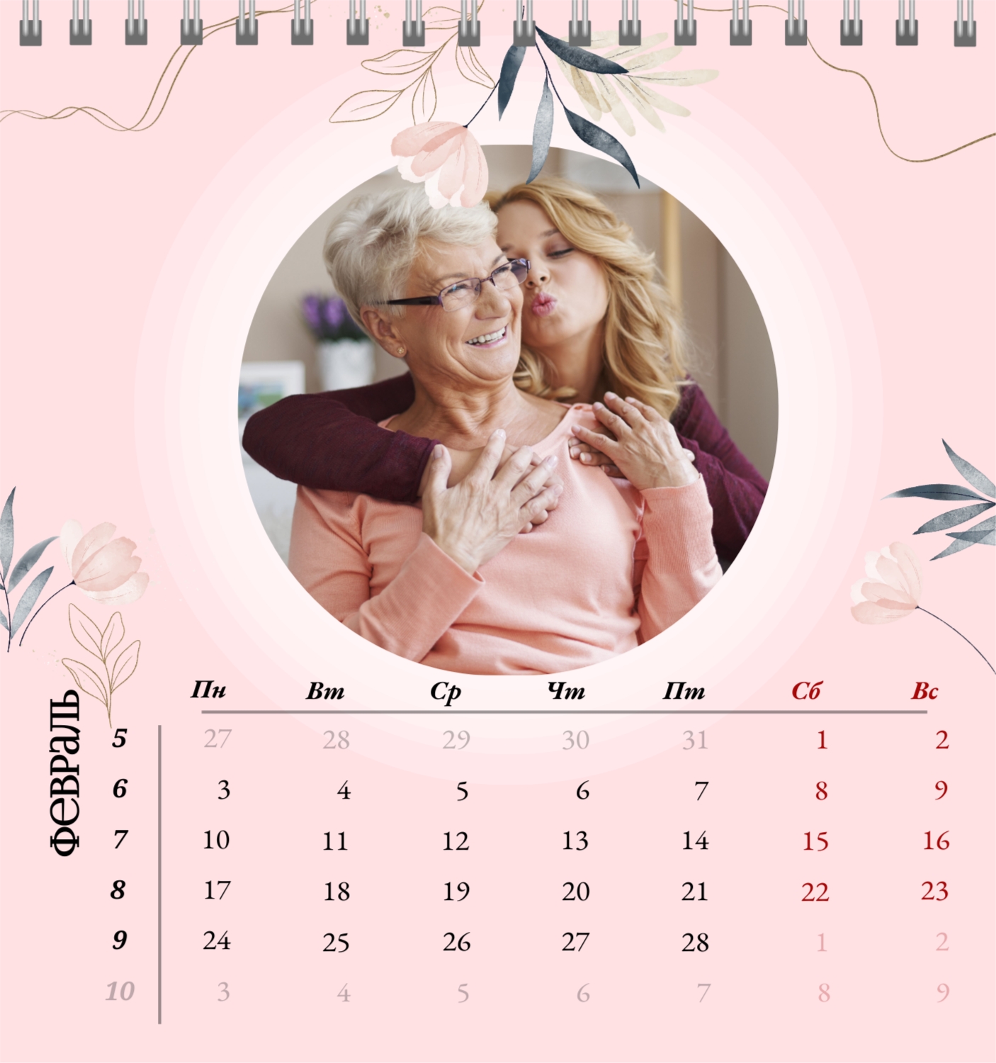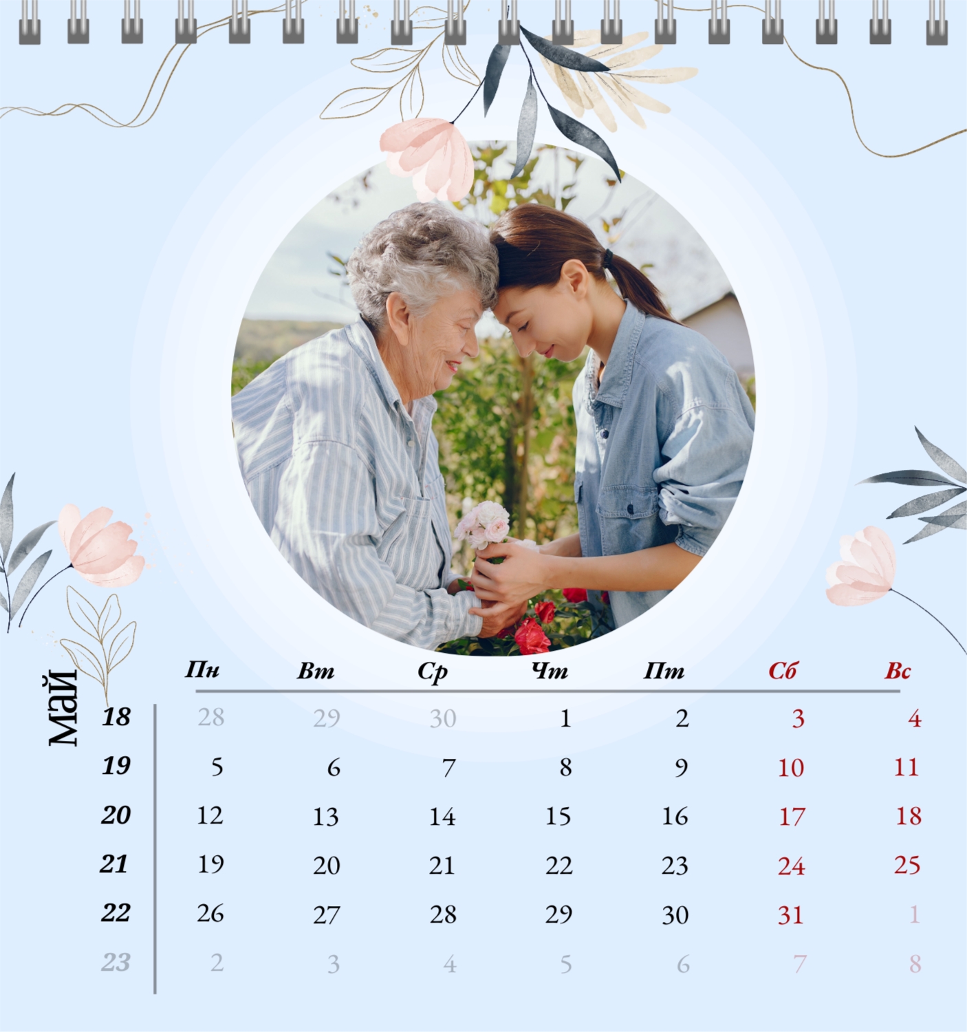 Бесплатный шаблон семейного календаря в подарок сестре, подруге. Создайте макет своими руками в конструкторе календарей.