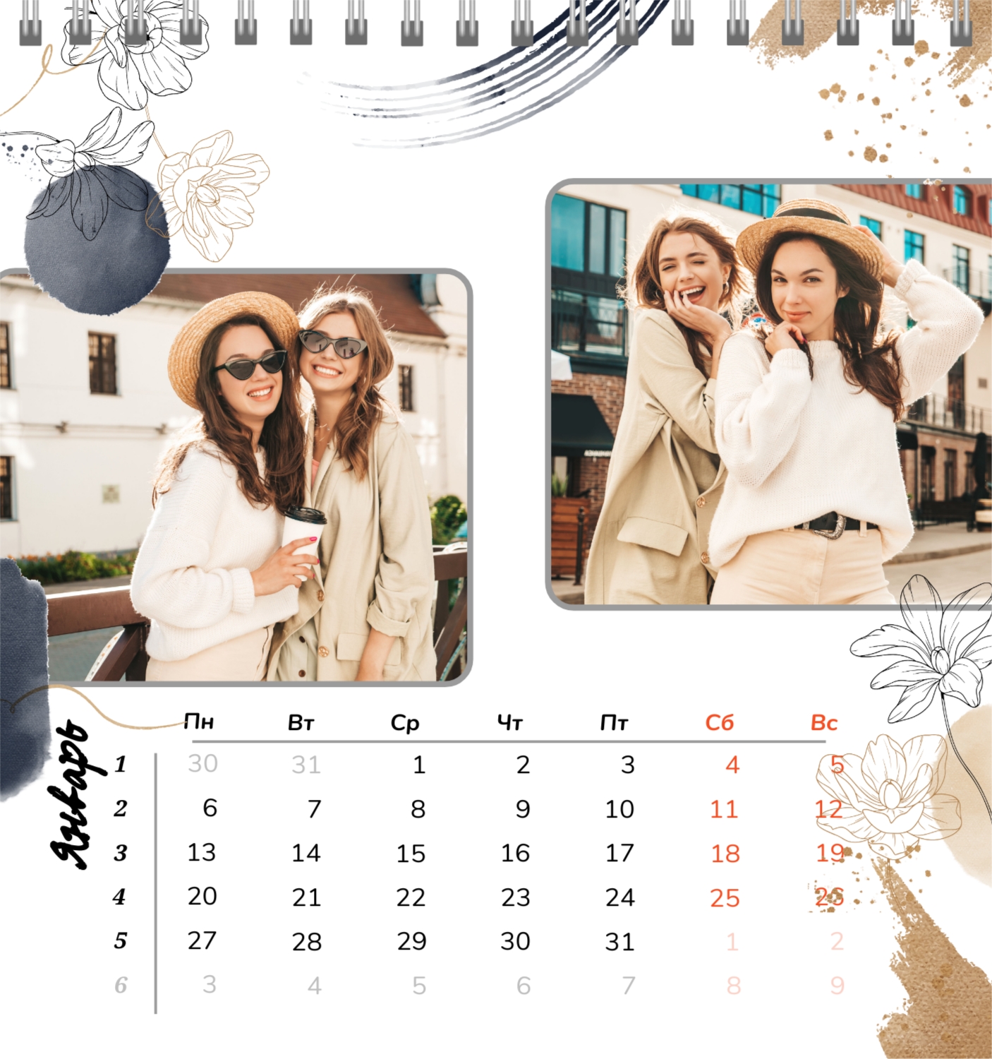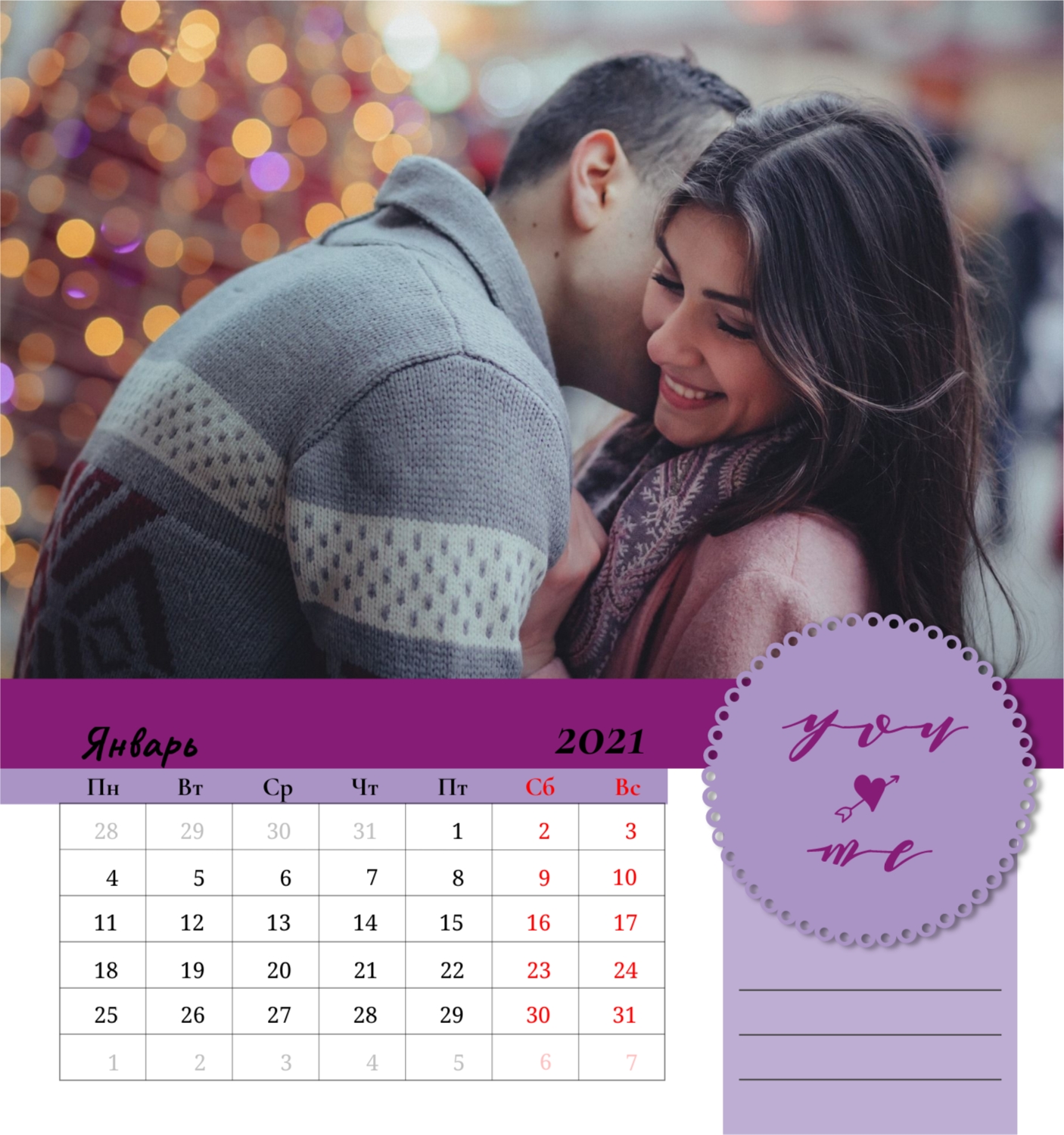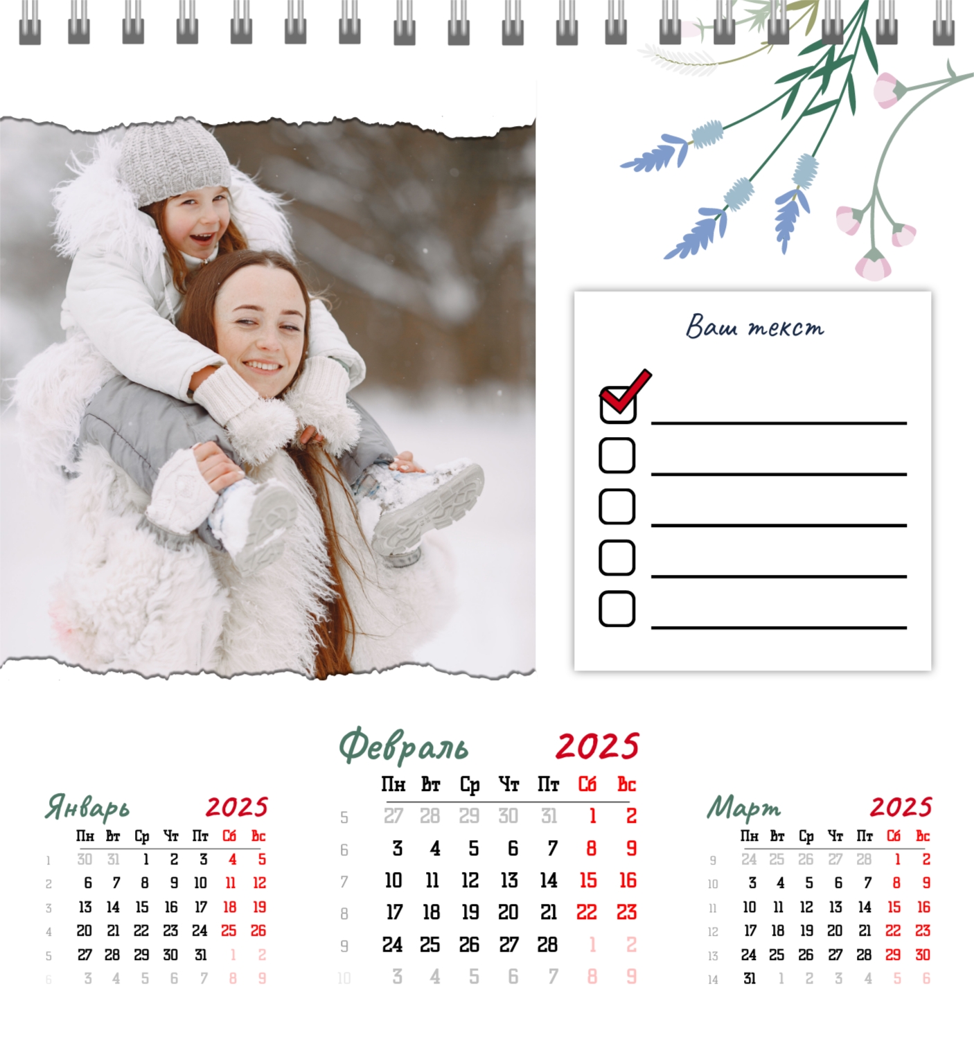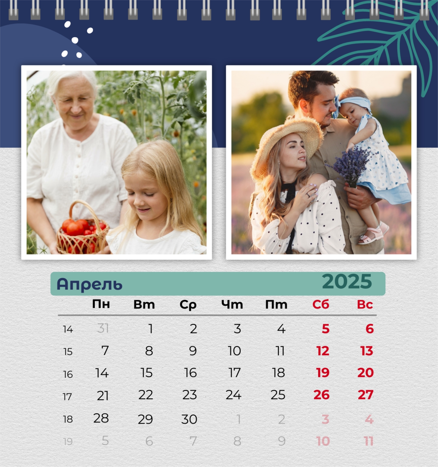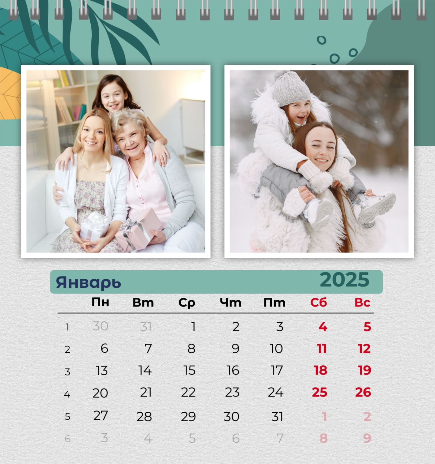 Бесплатный шаблон семейного календаря в подарок сестре, подруге. Создайте макет своими руками в конструкторе календарей.