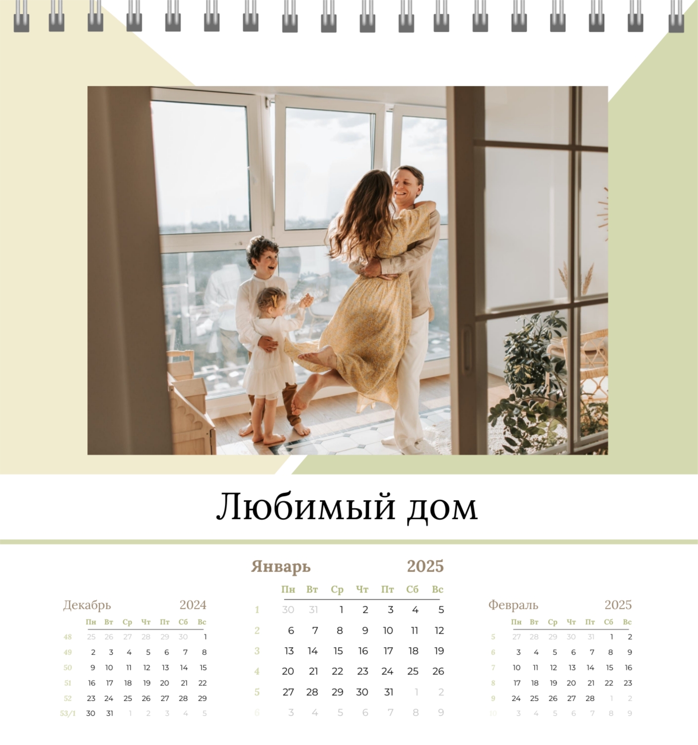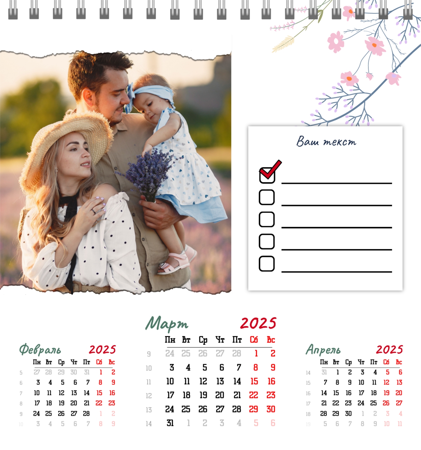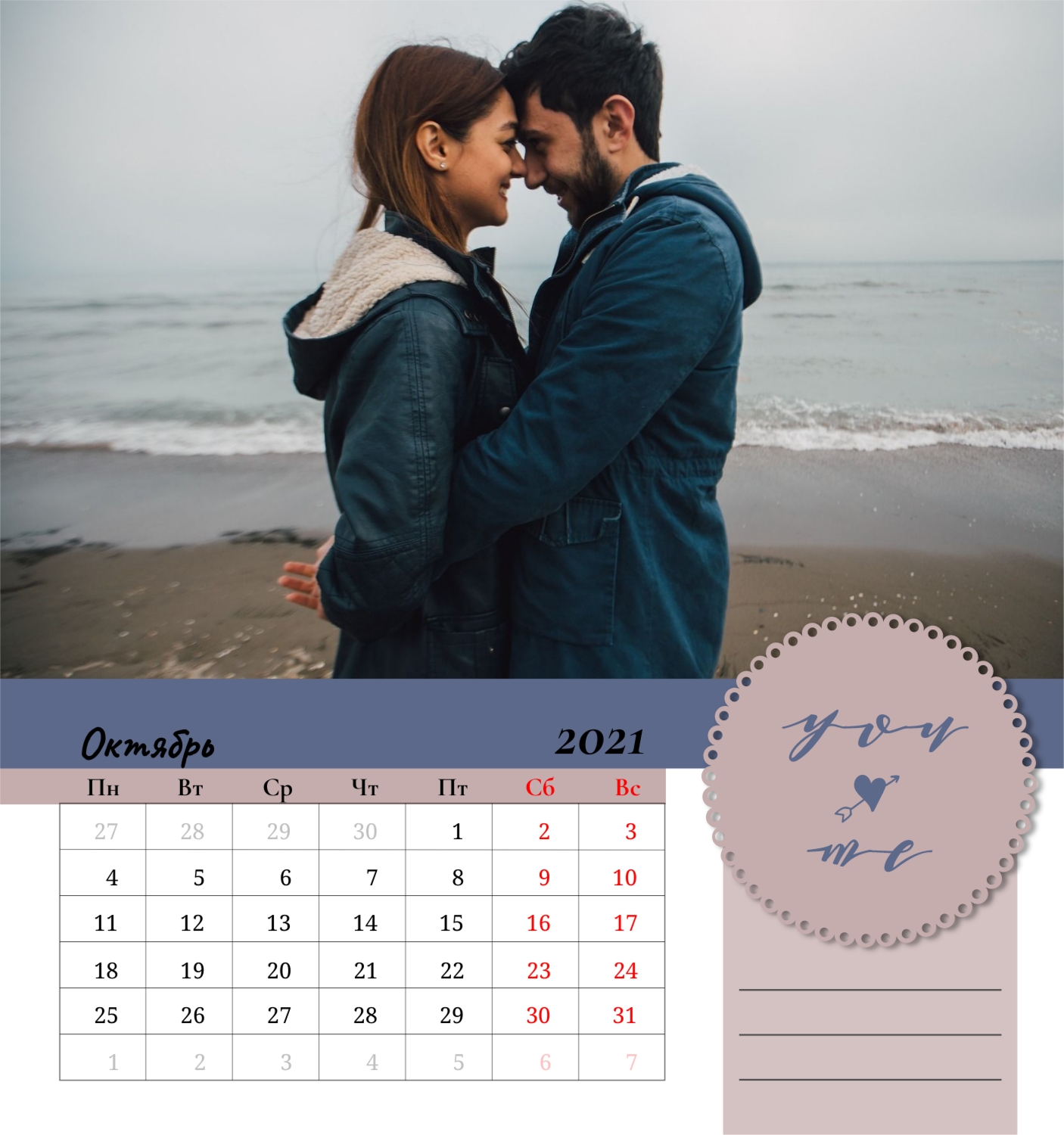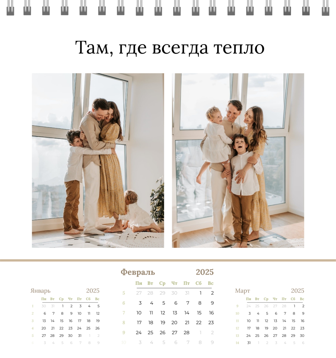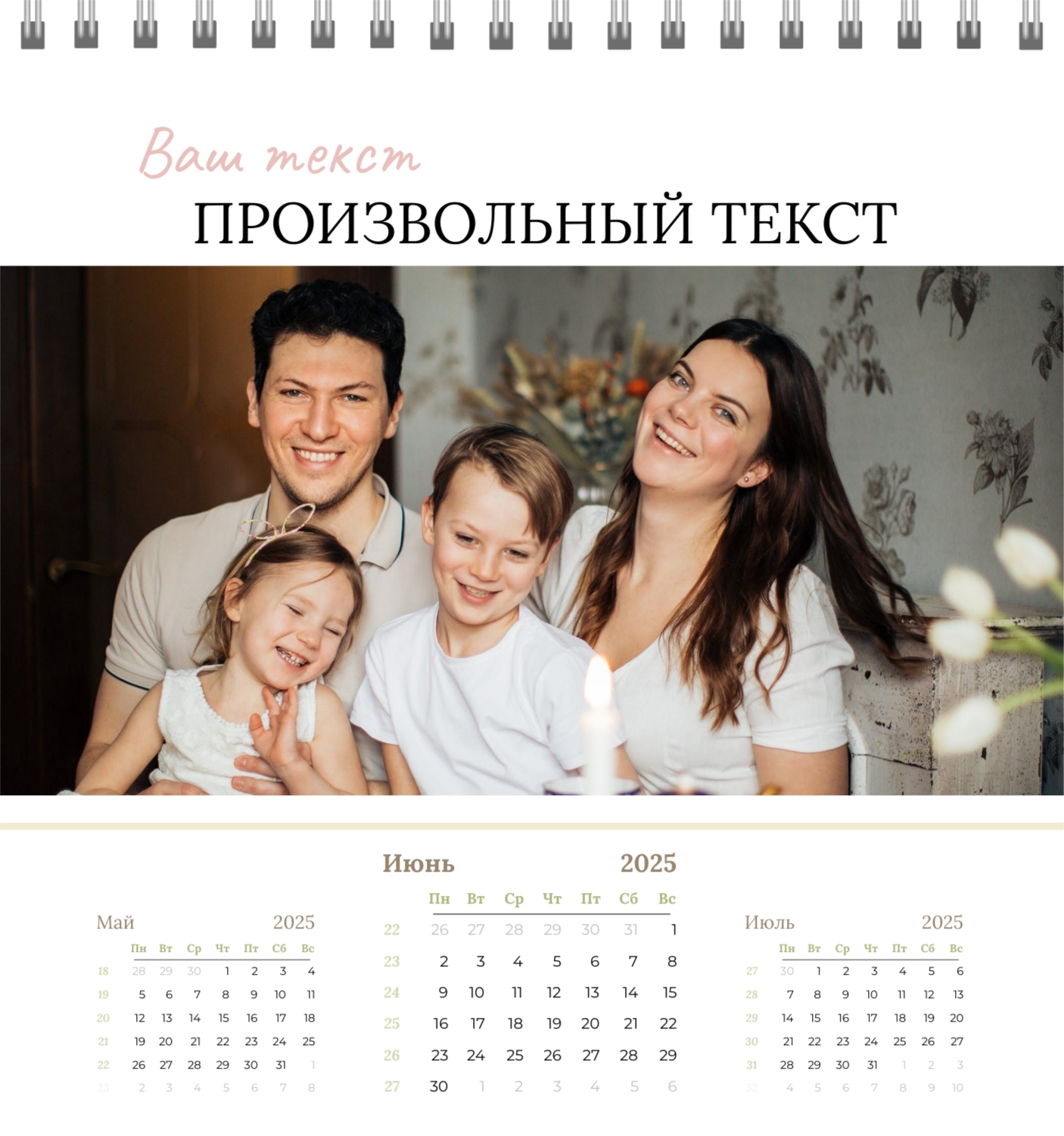 Бесплатный шаблон семейного календаря в подарок сестре, подруге. Создайте макет своими руками в конструкторе календарей.