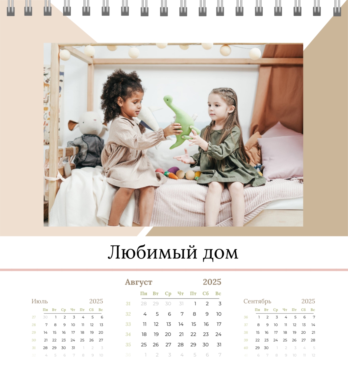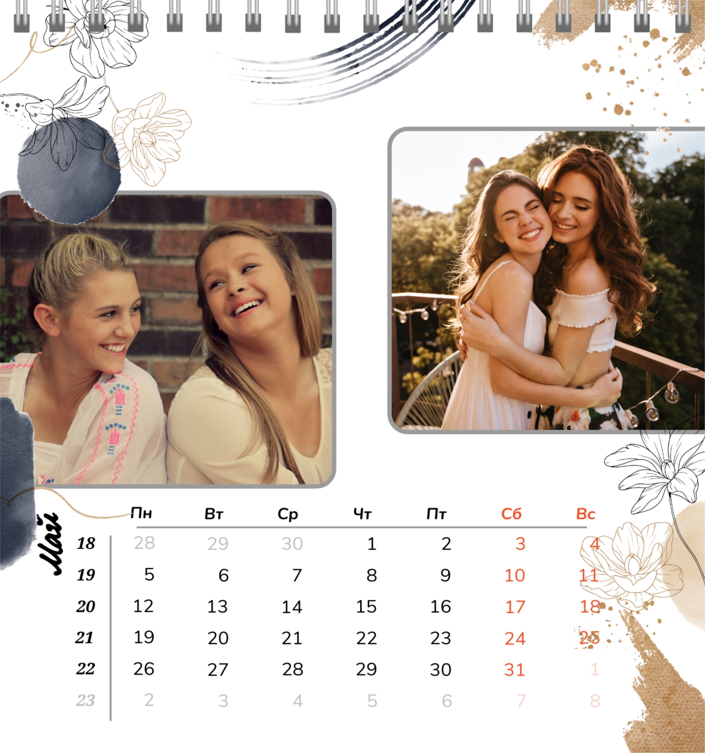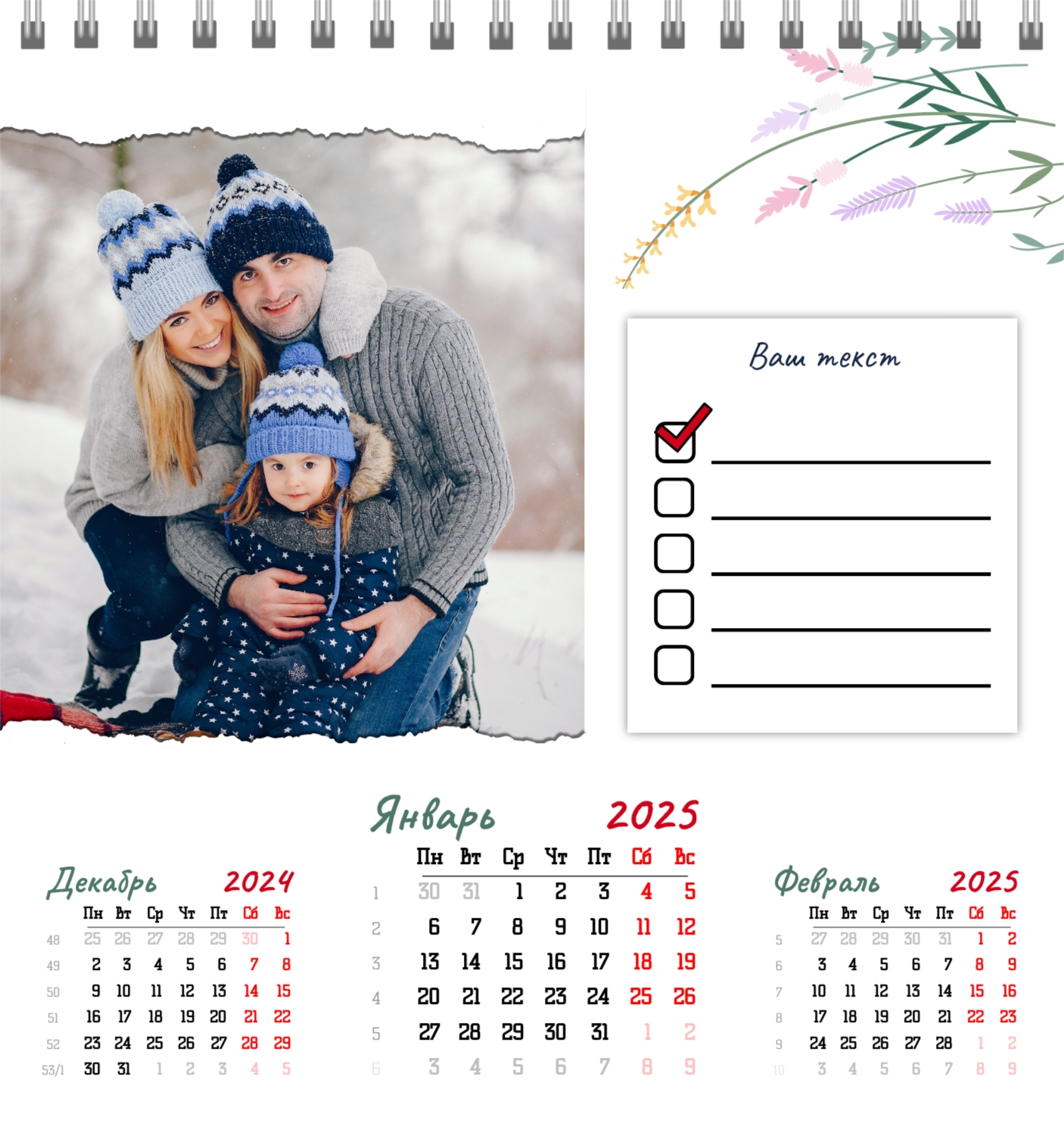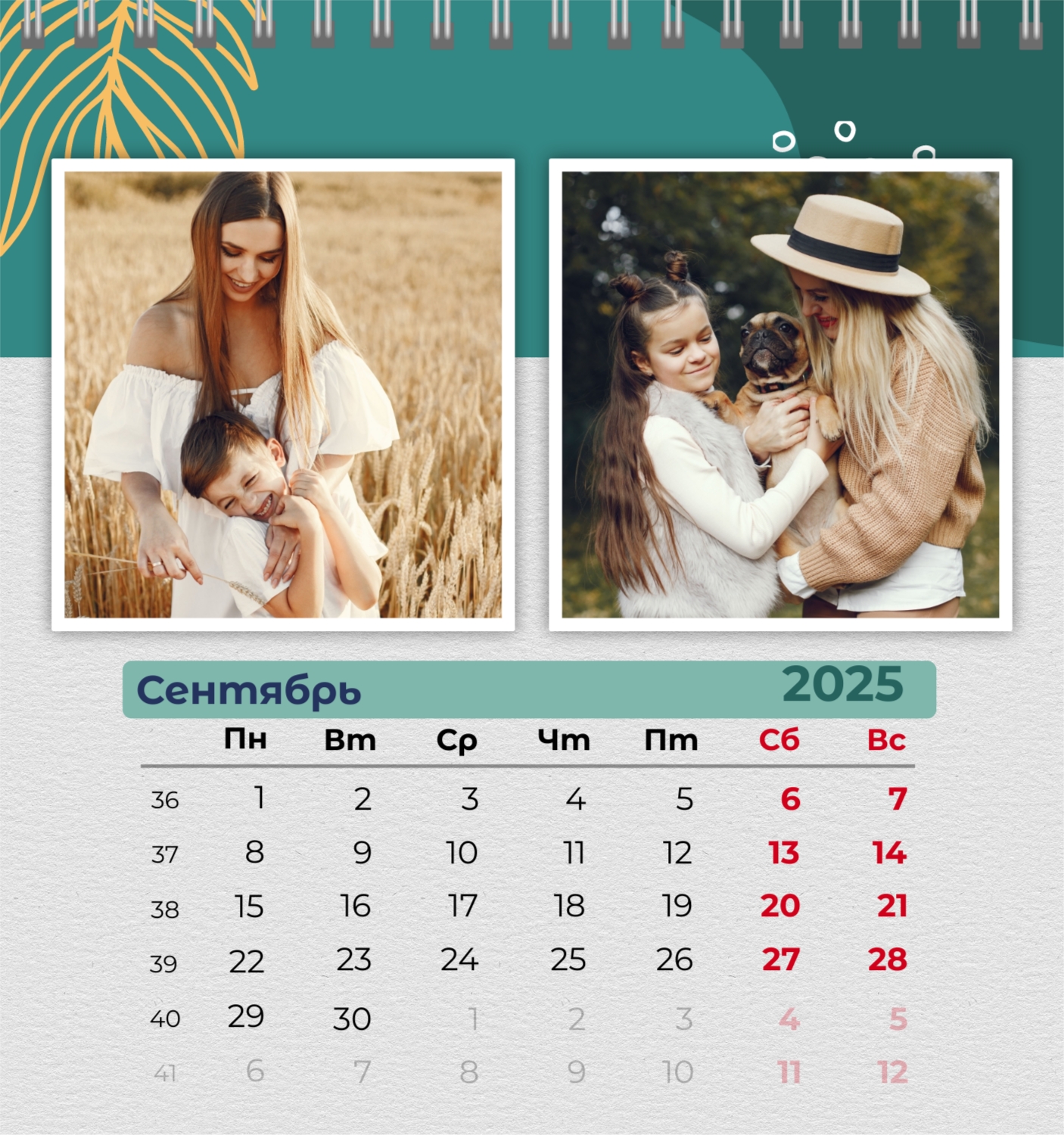 Бесплатный шаблон семейного календаря в подарок сестре, подруге. Создайте макет своими руками в конструкторе календарей.