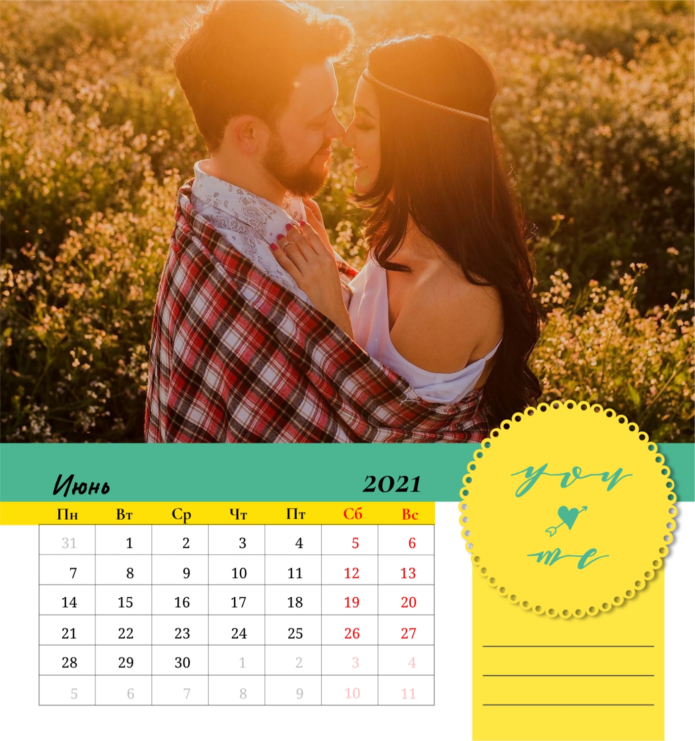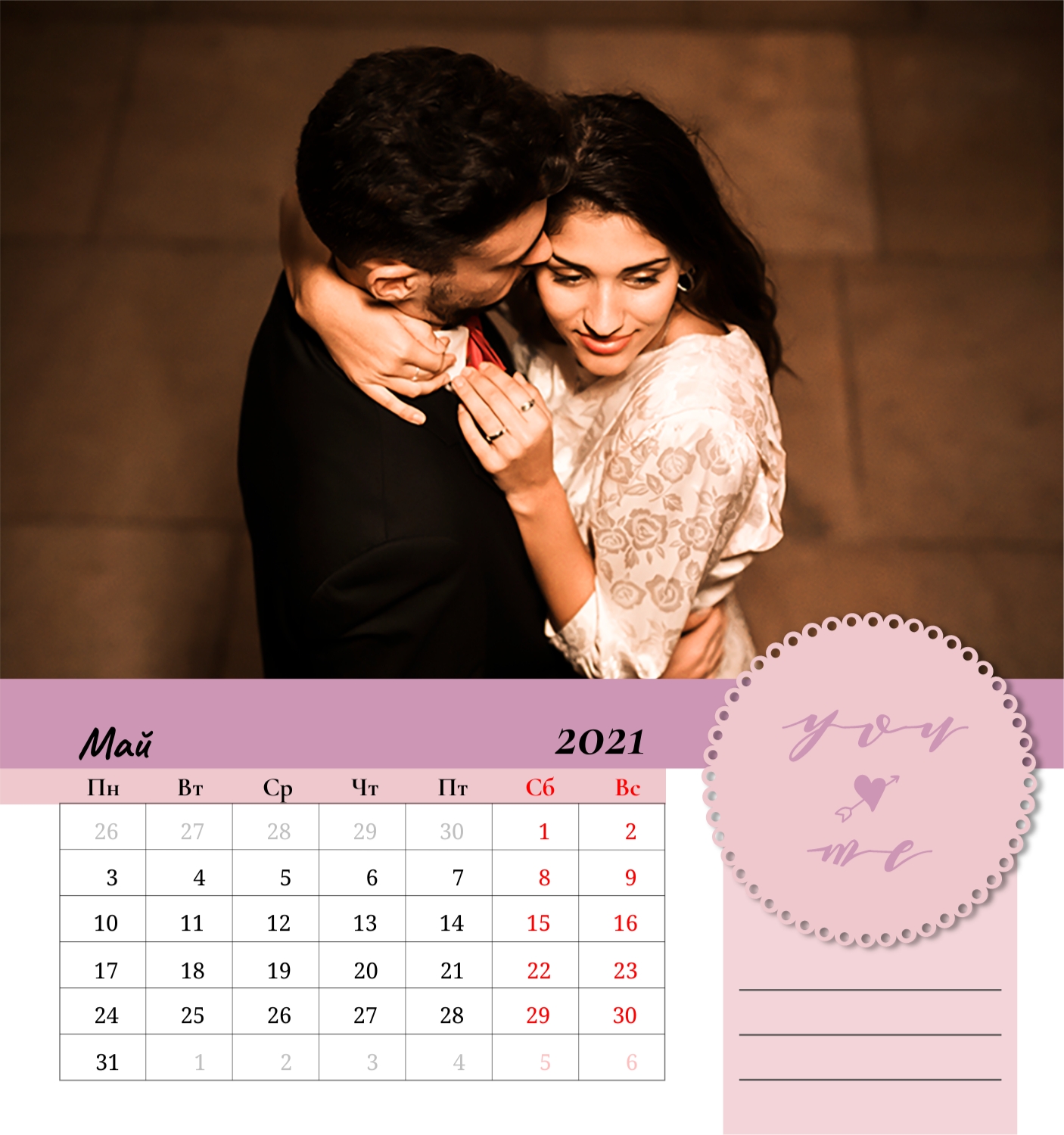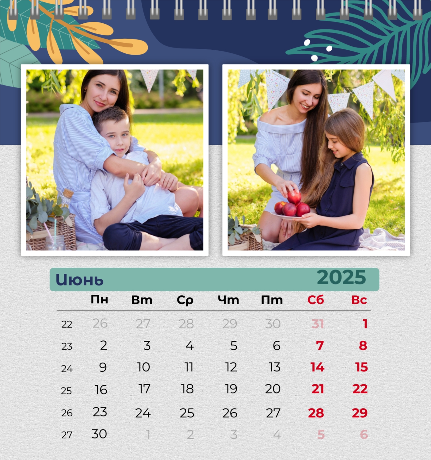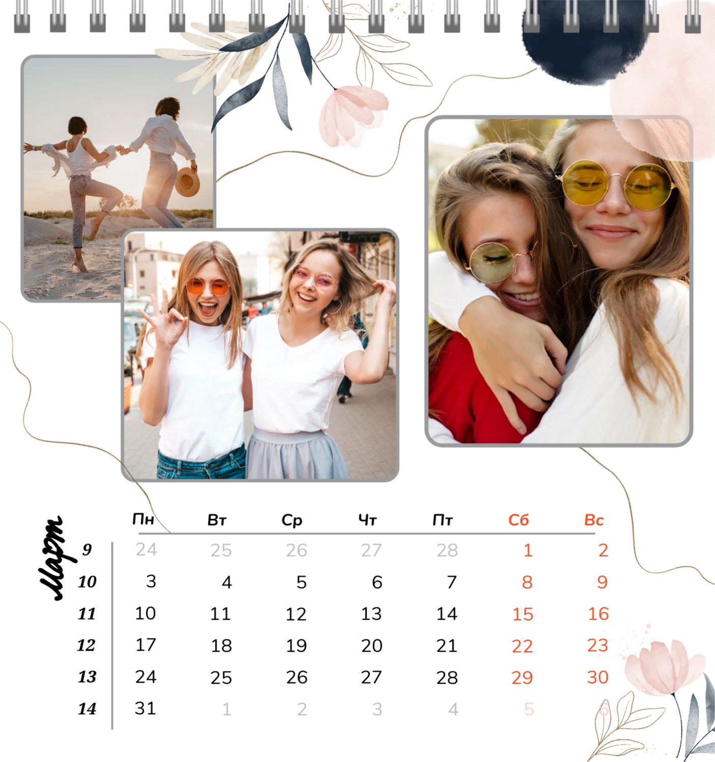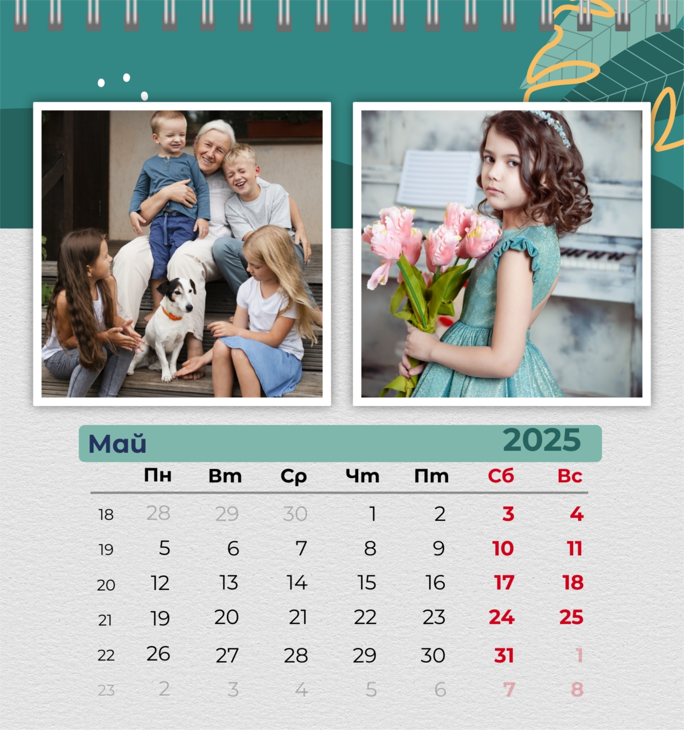 Бесплатный шаблон семейного календаря в подарок сестре, подруге. Создайте макет своими руками в конструкторе календарей.