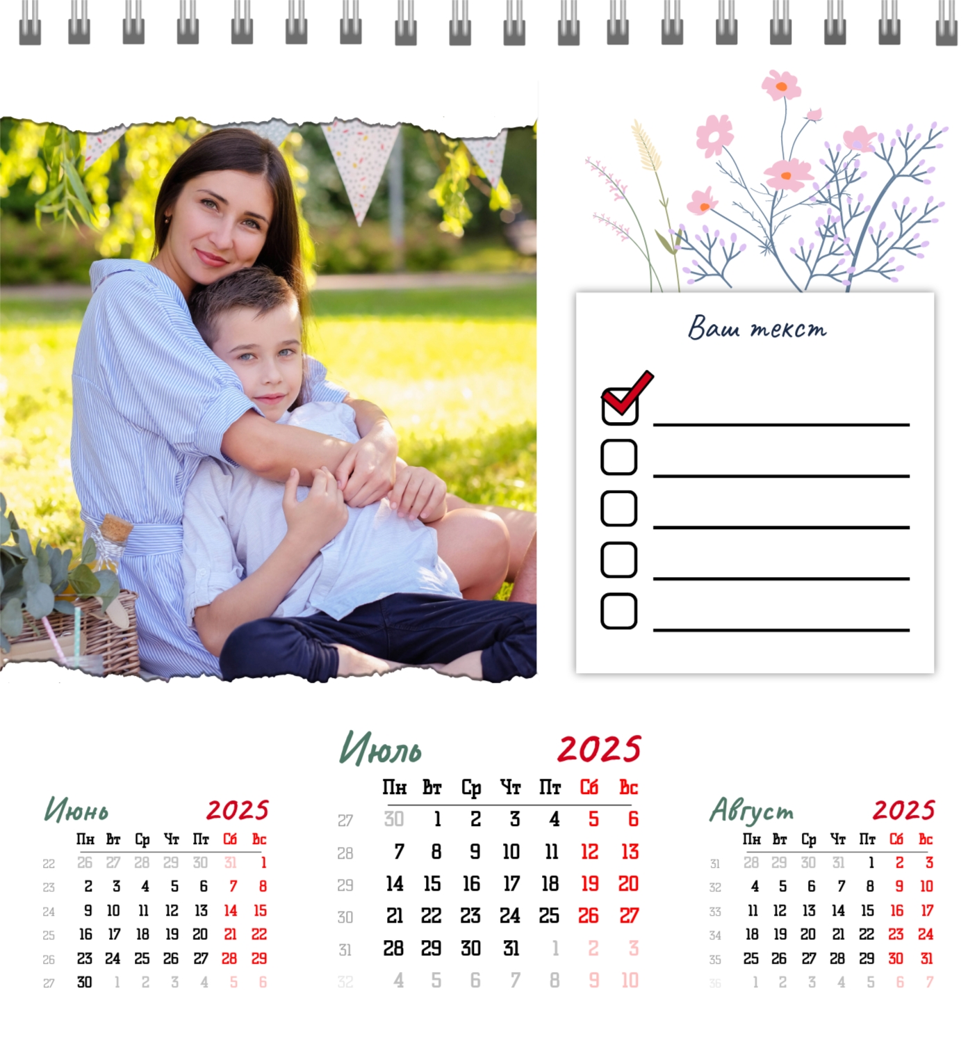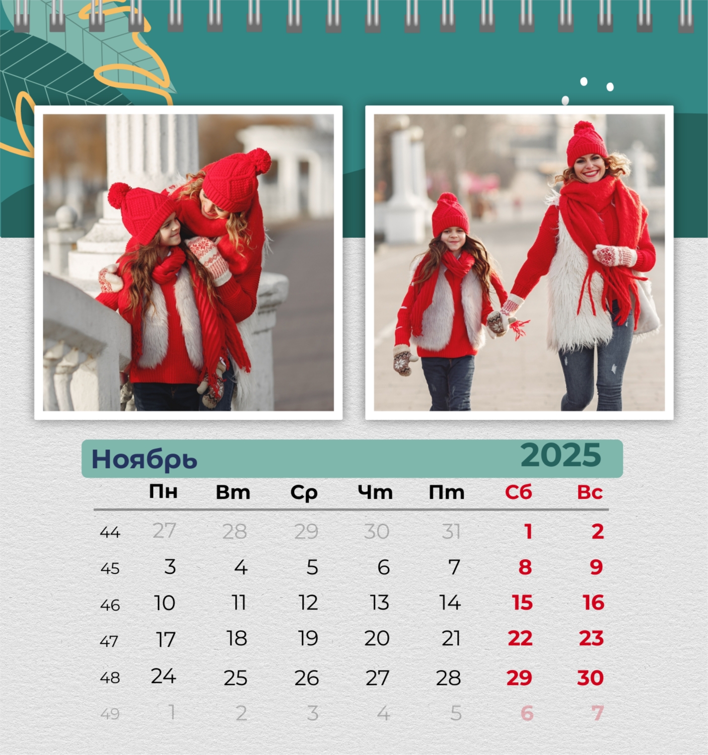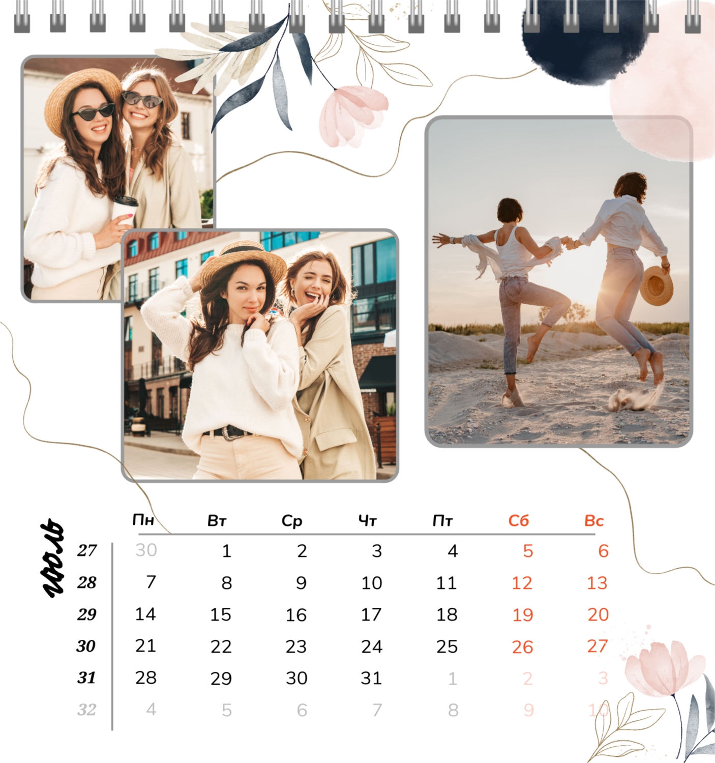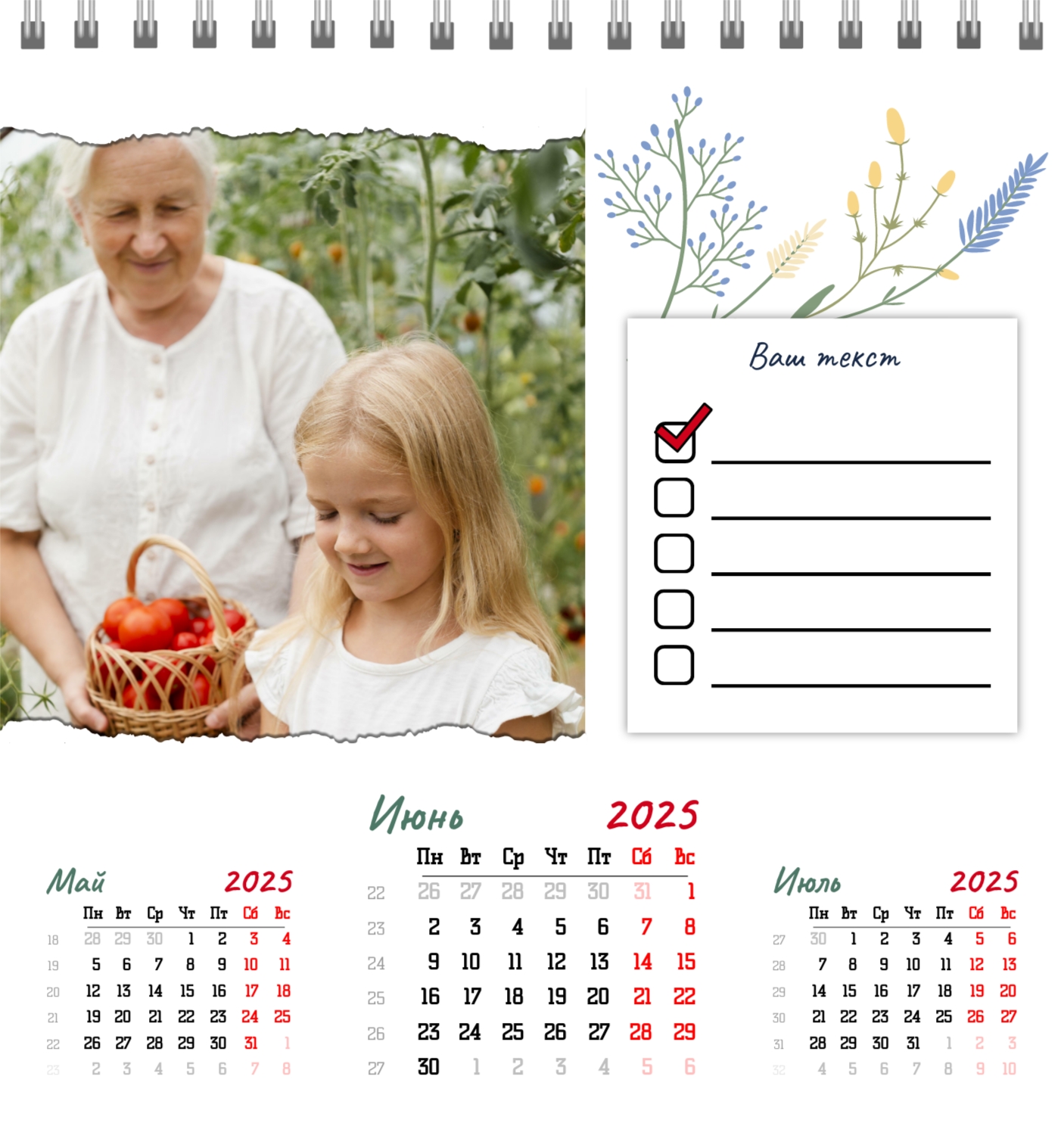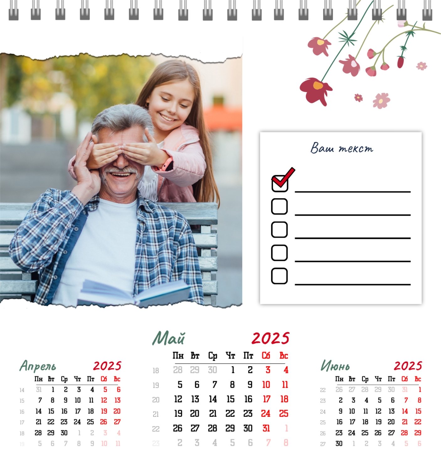 Бесплатный шаблон семейного календаря в подарок сестре, подруге. Создайте макет своими руками в конструкторе календарей.