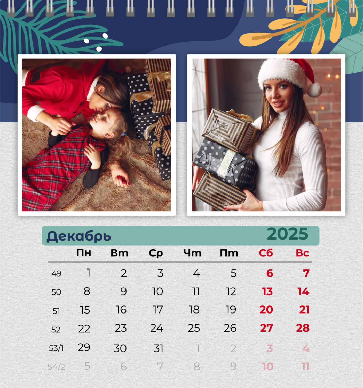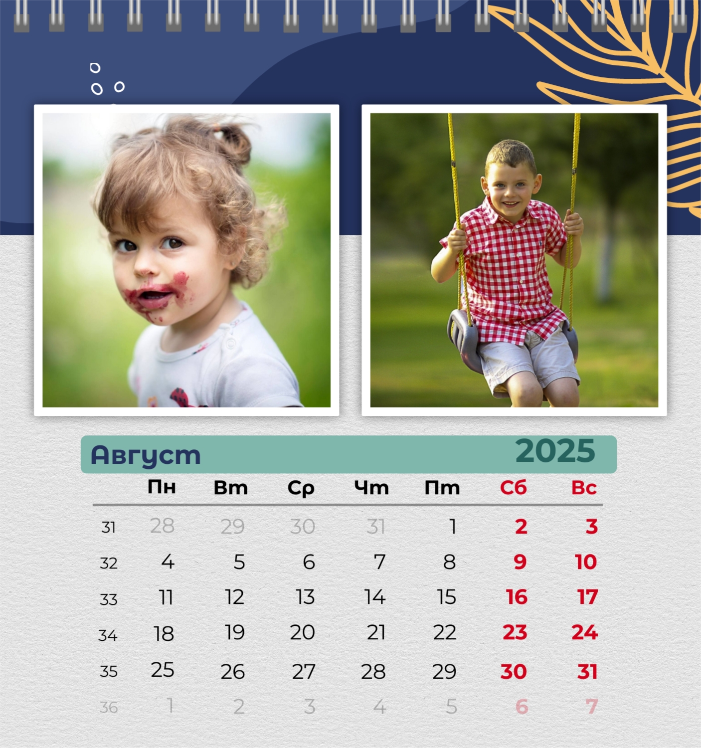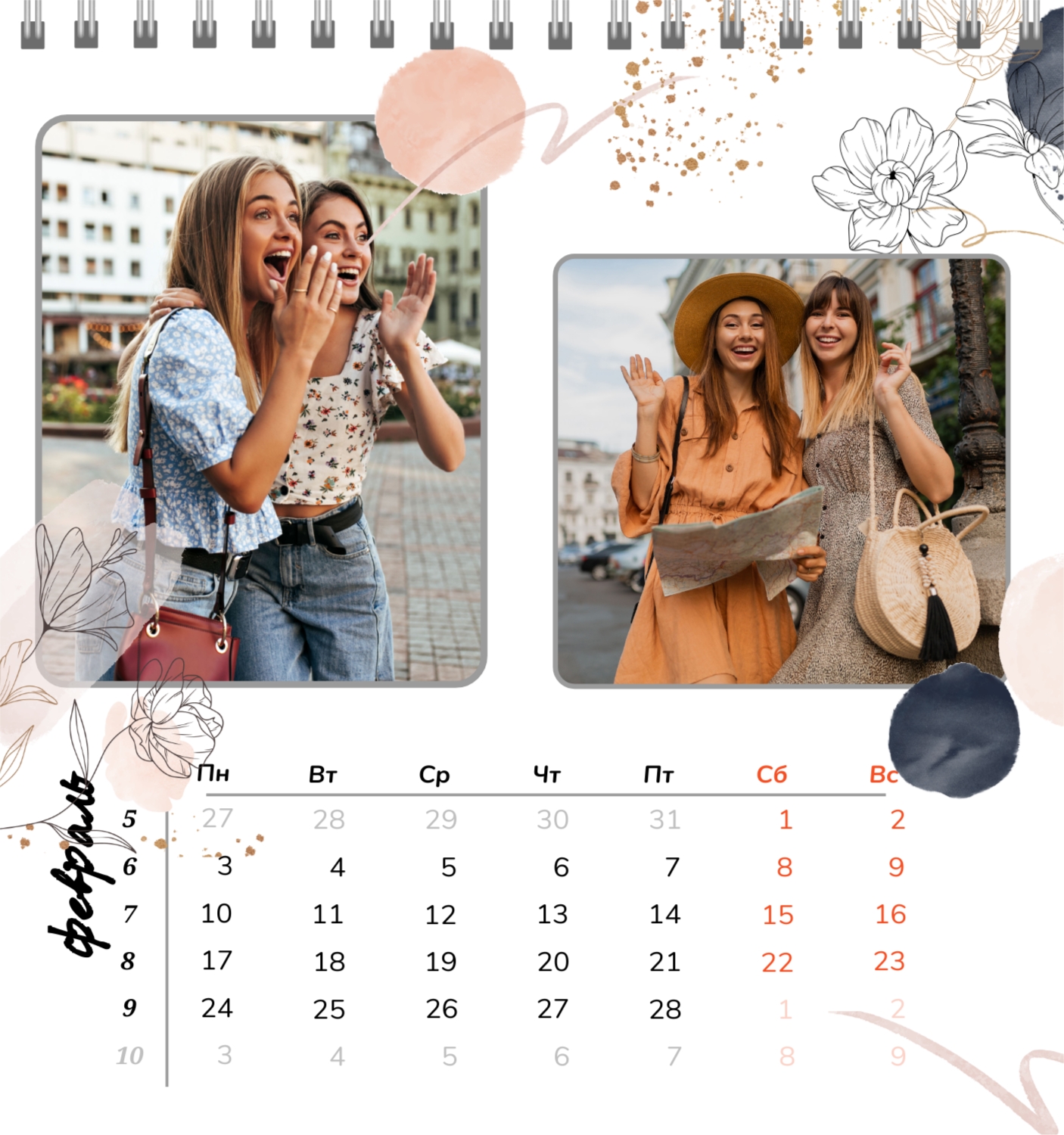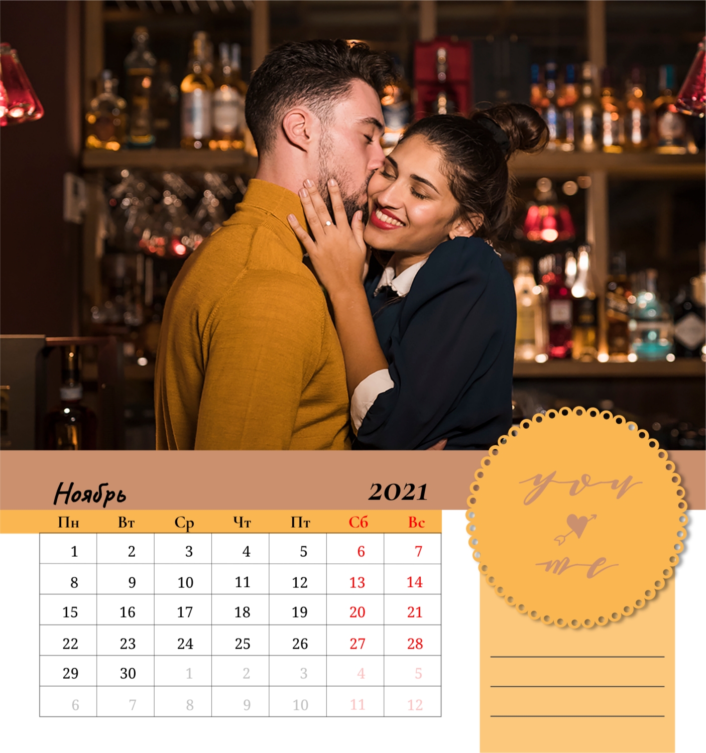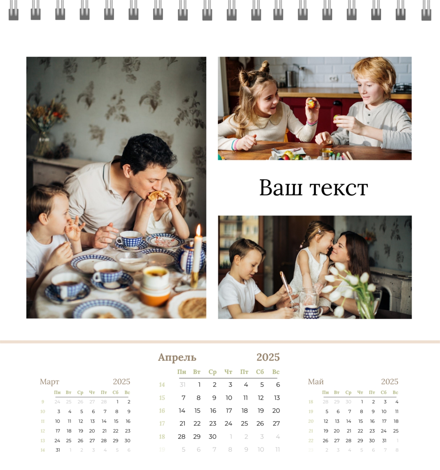 Бесплатный шаблон семейного календаря в подарок сестре, подруге. Создайте макет своими руками в конструкторе календарей.