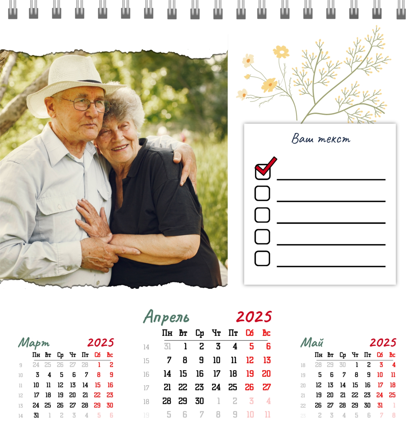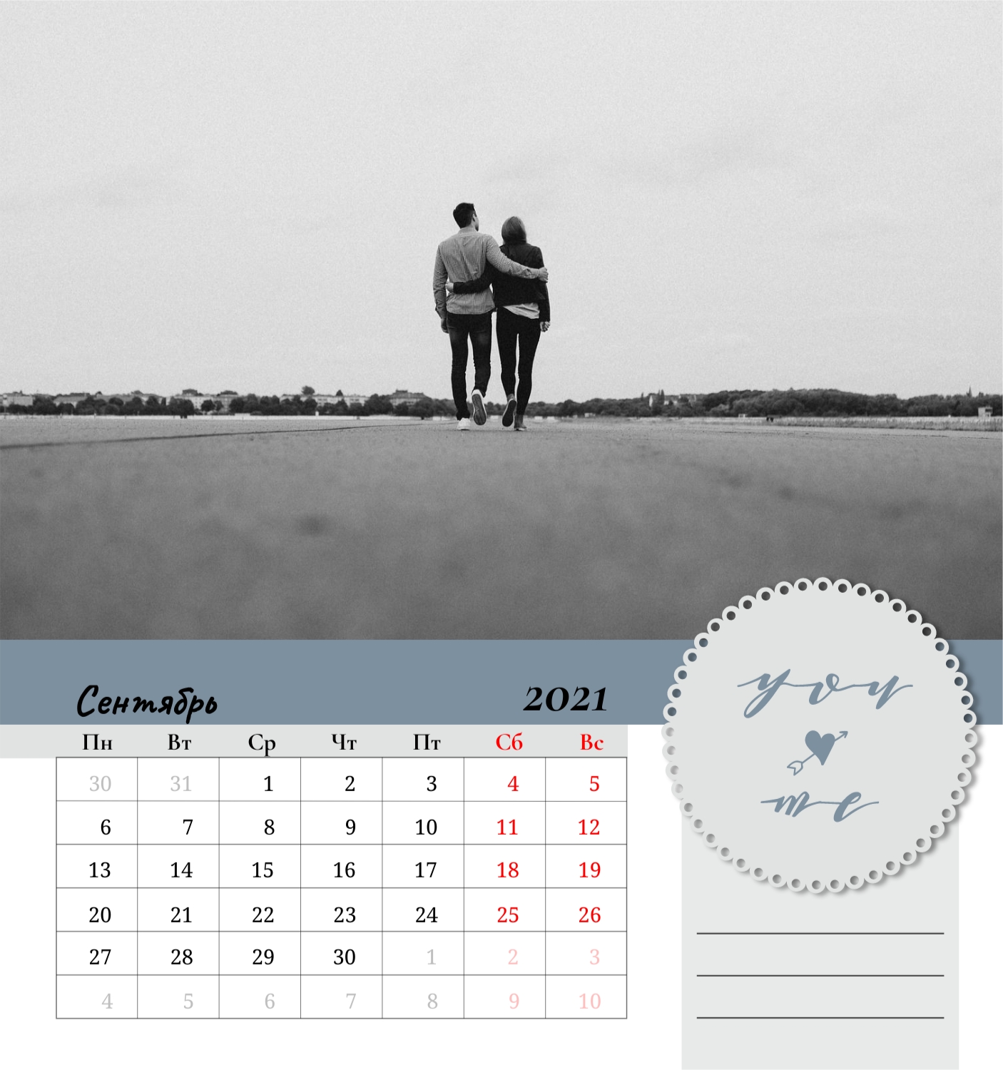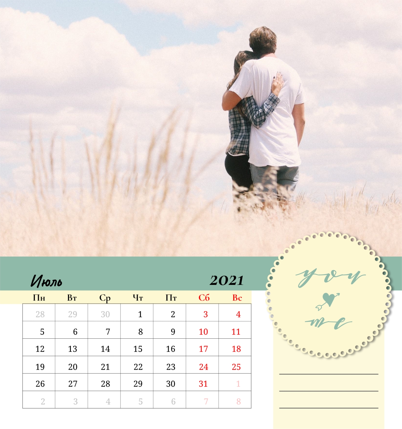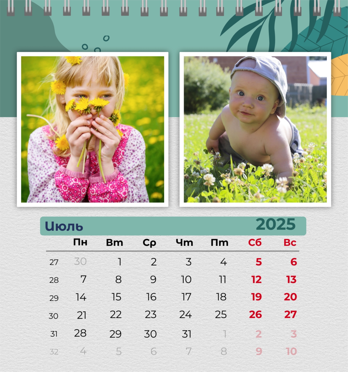 Бесплатный шаблон семейного календаря в подарок сестре, подруге. Создайте макет своими руками в конструкторе календарей.