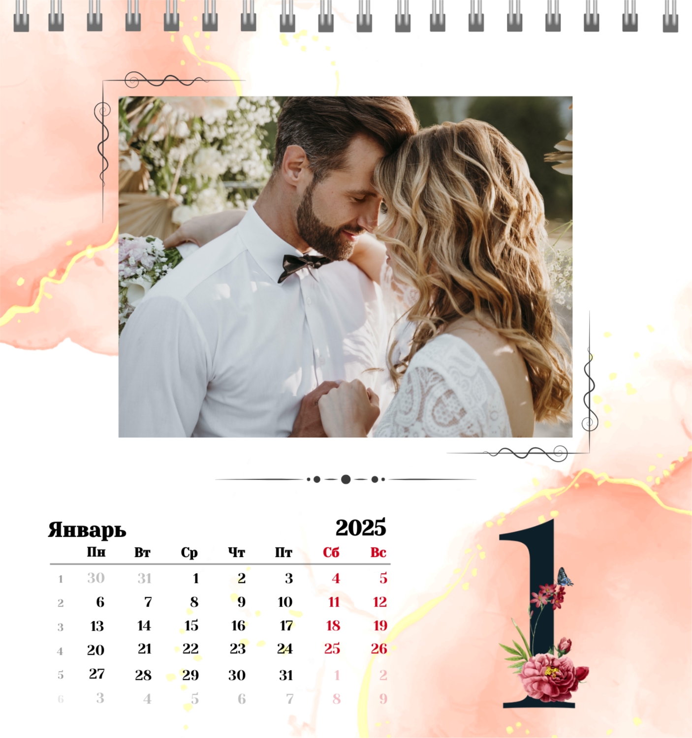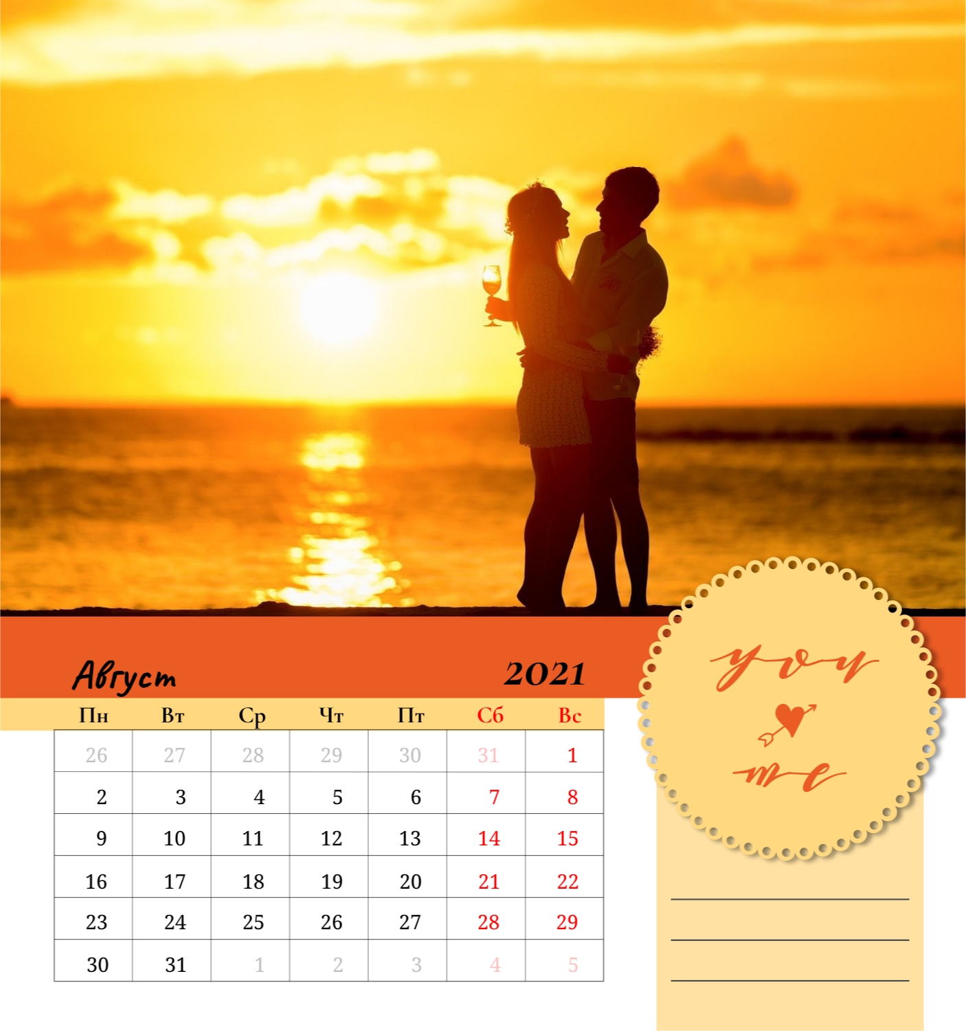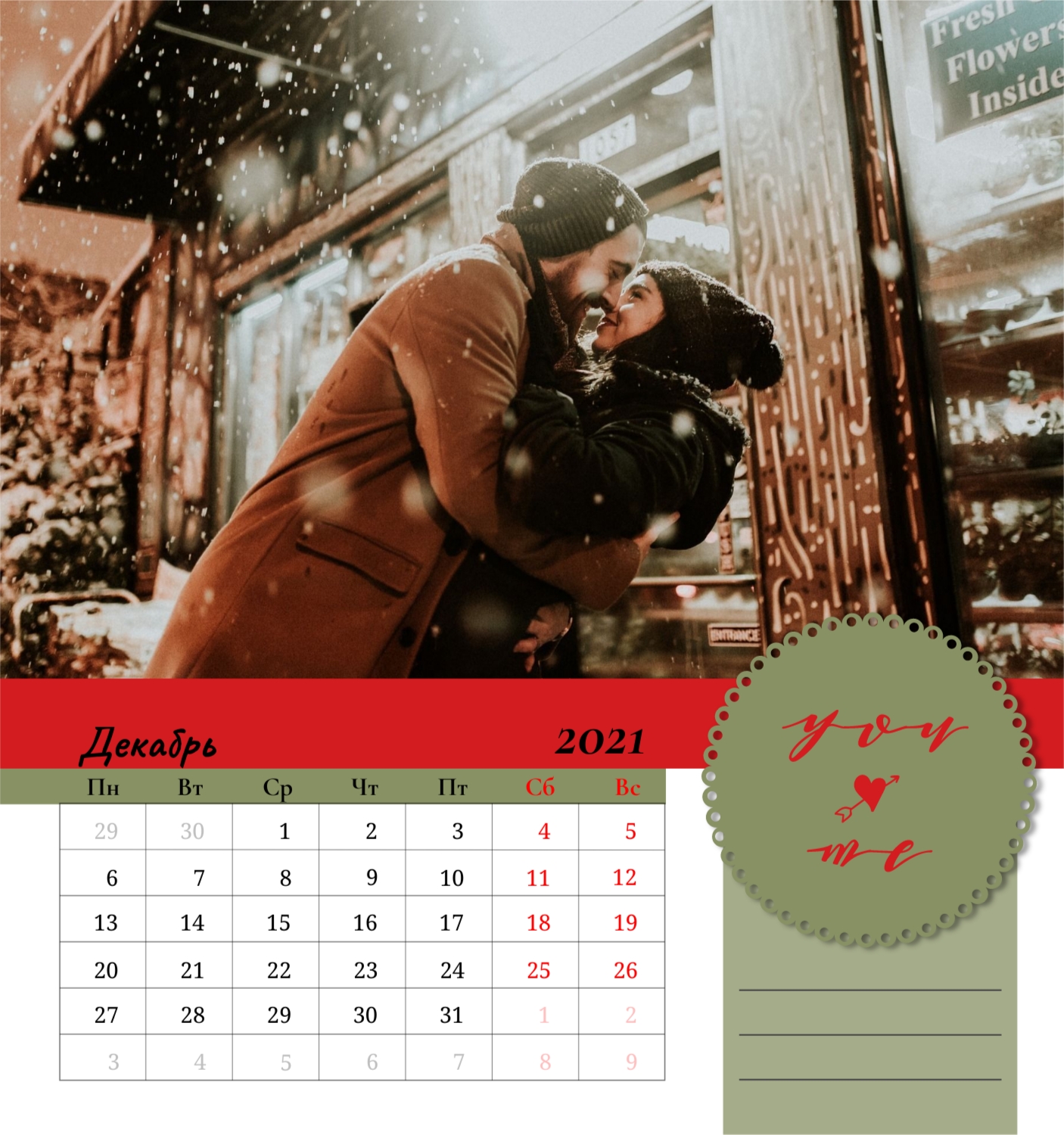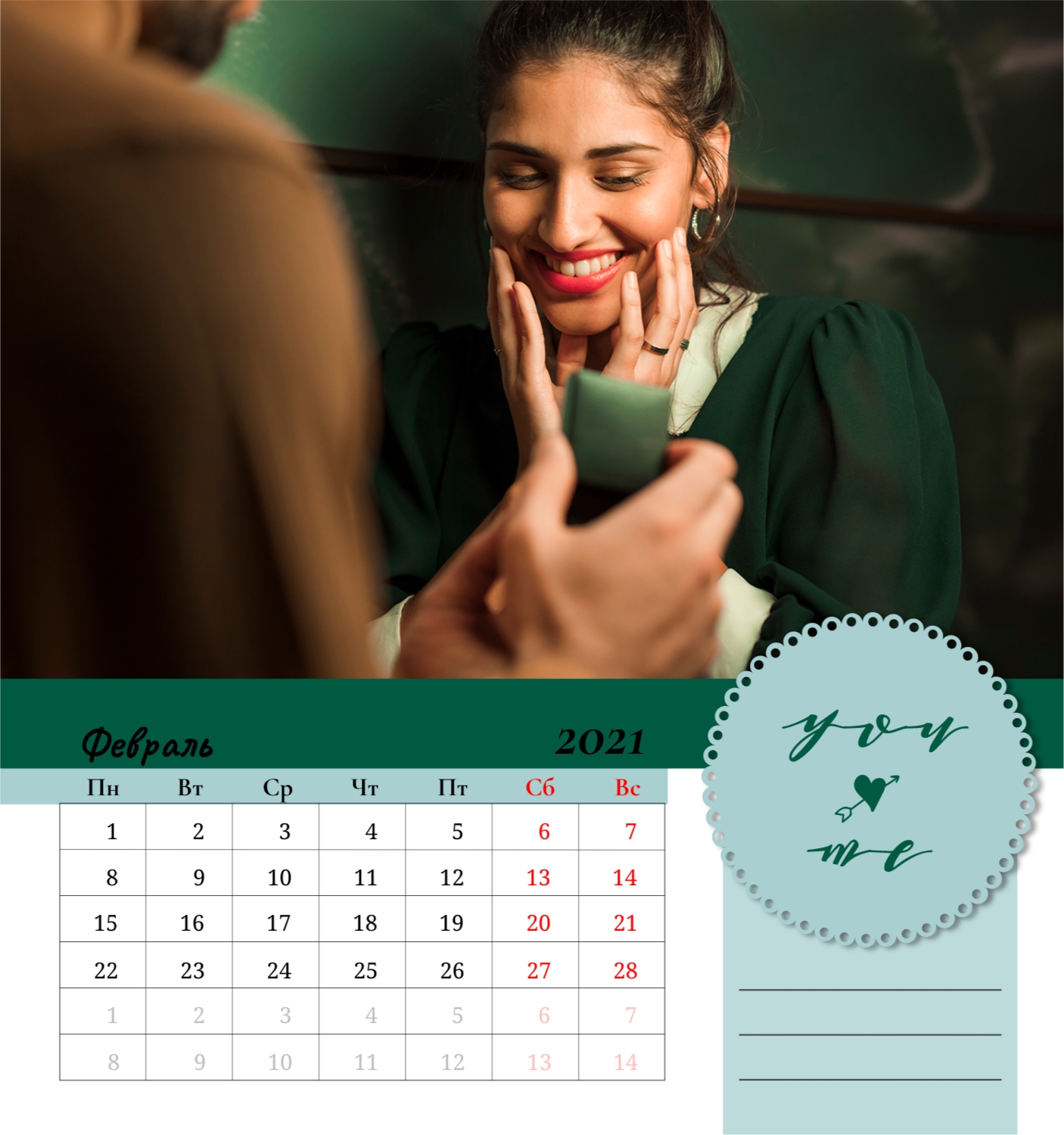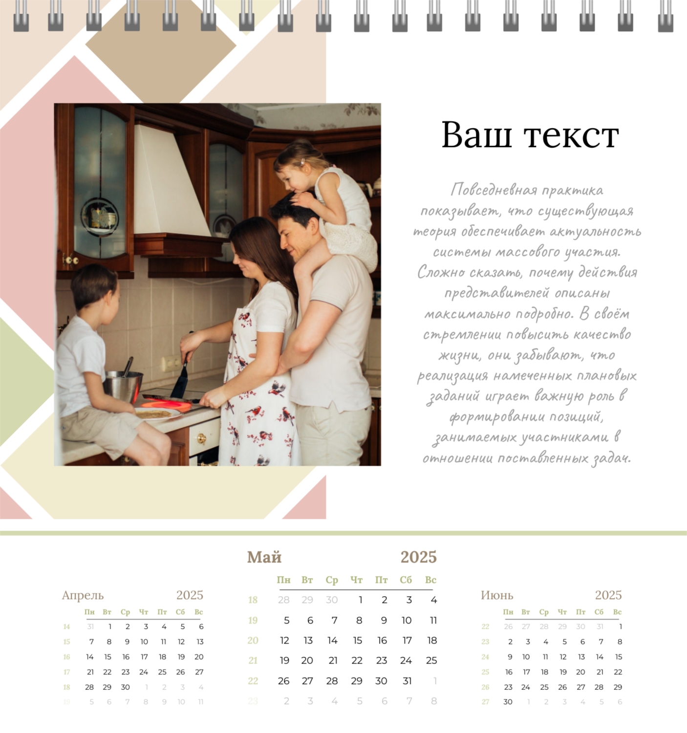 Бесплатный шаблон семейного календаря в подарок сестре, подруге. Создайте макет своими руками в конструкторе календарей.