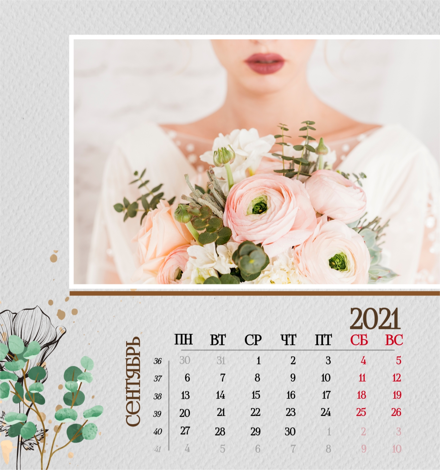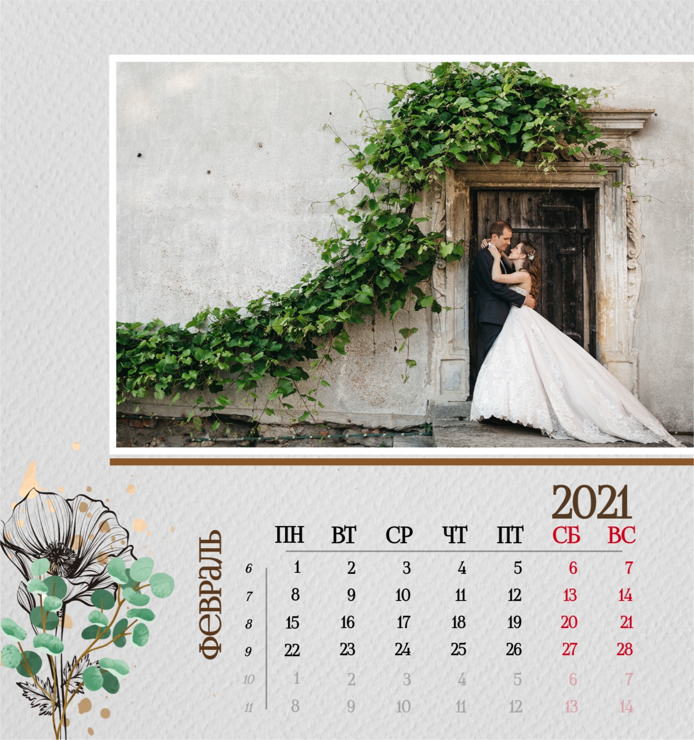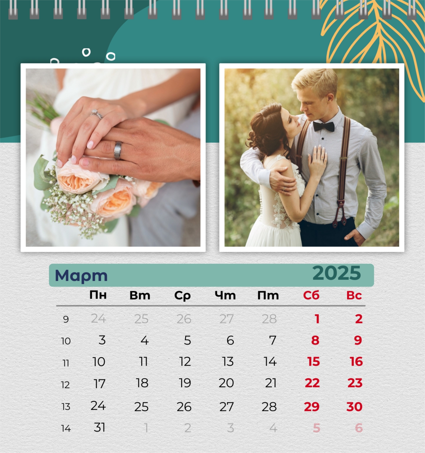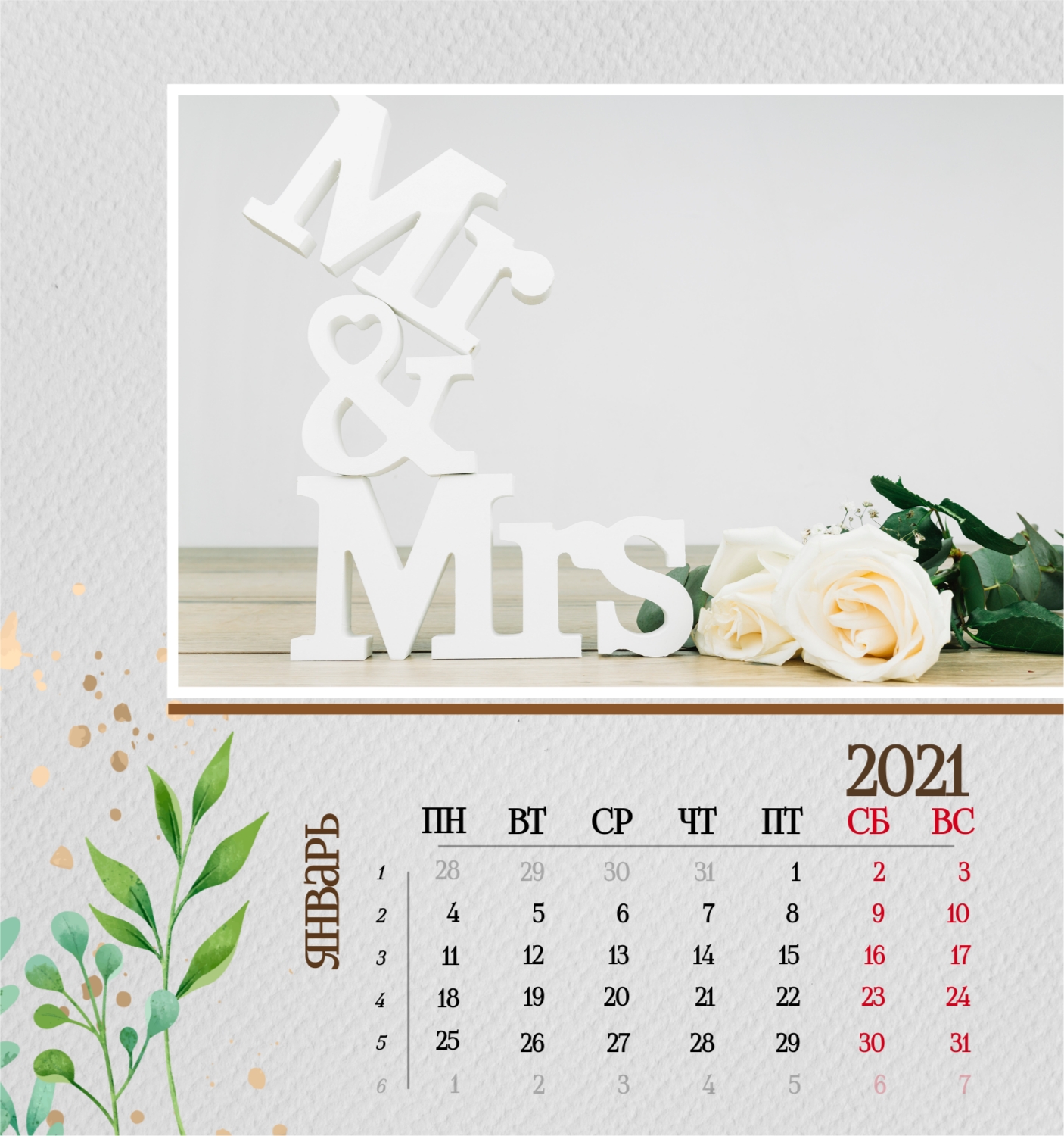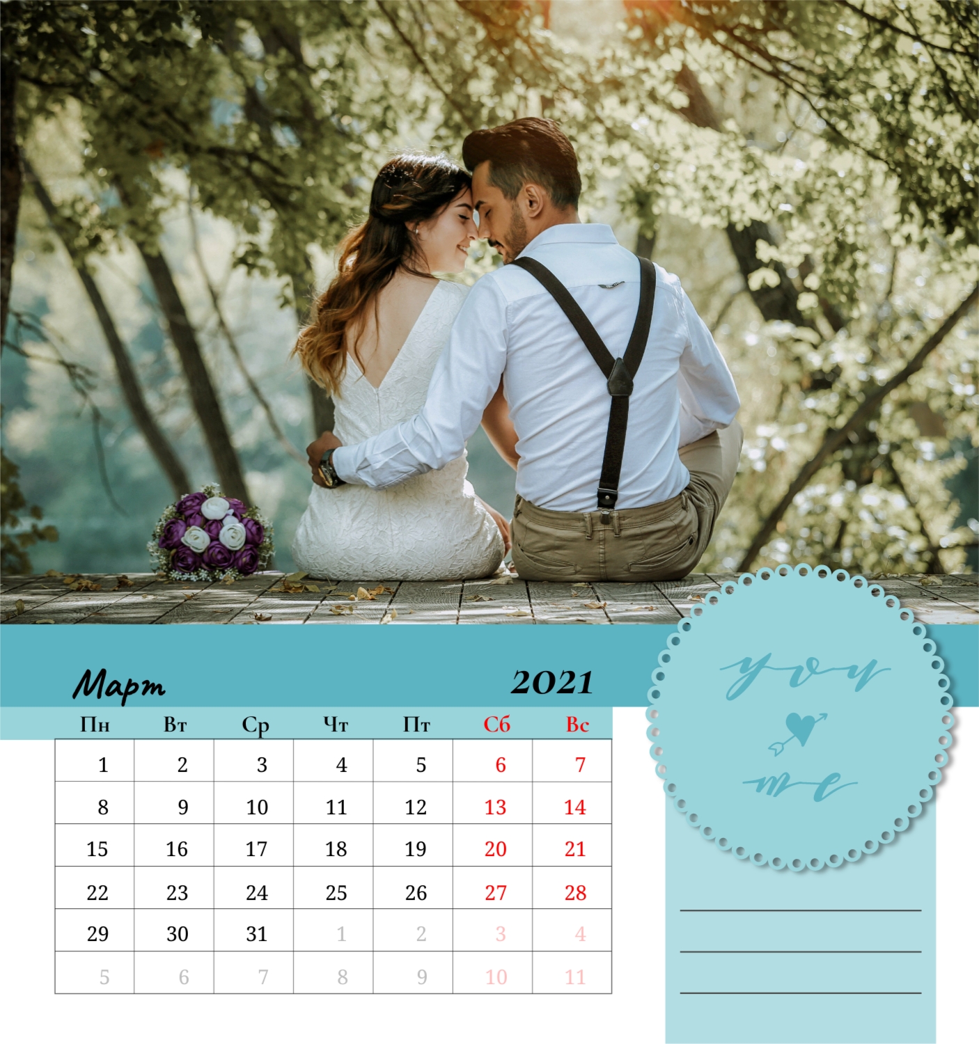 Бесплатный шаблон семейного календаря в подарок сестре, подруге. Создайте макет своими руками в конструкторе календарей.