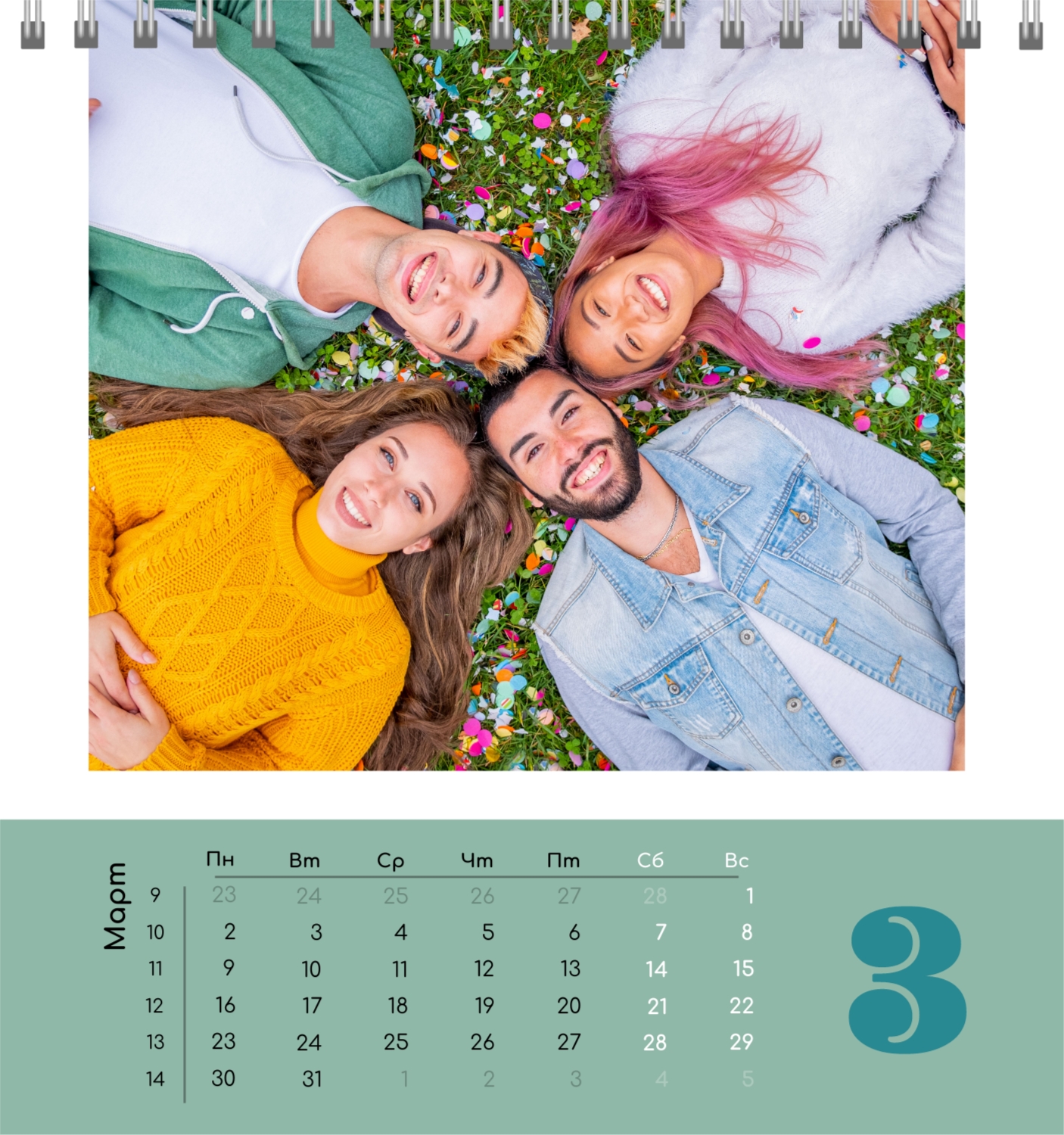 Бесплатный шаблон школьного календаря с фотографиями класса или группы. Создайте макет своими руками в онлайн-конструкторе календарей.