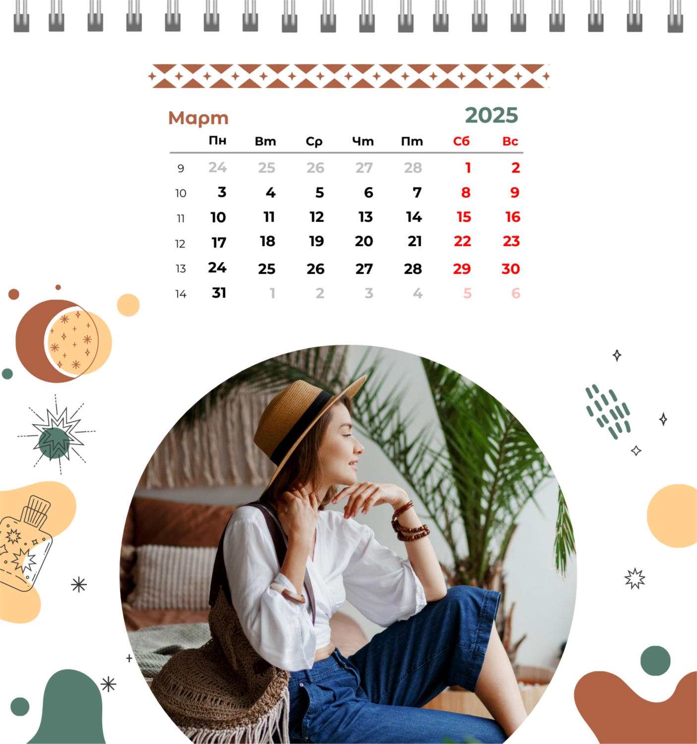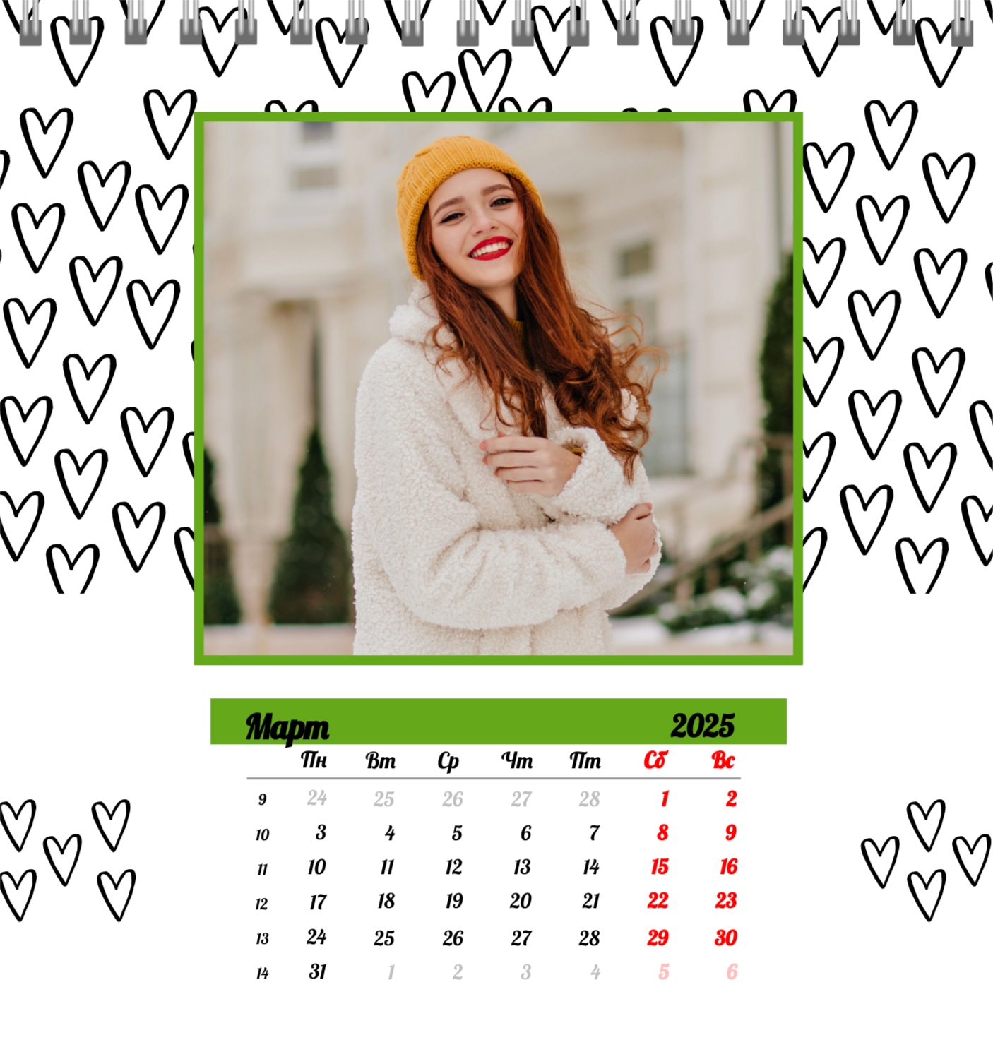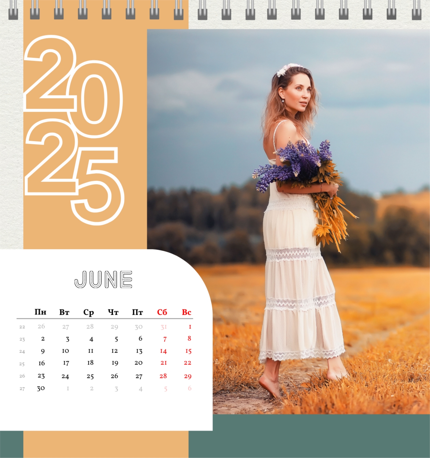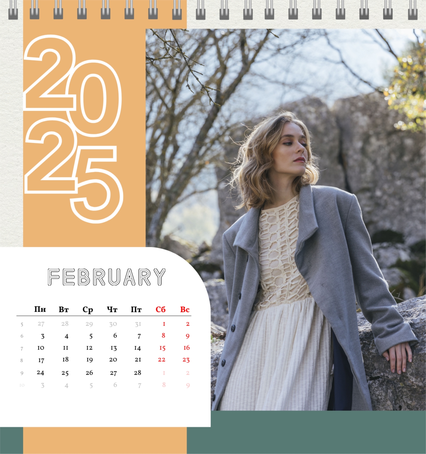 Наш уникальный шаблон "Лучшие воспоминания" представляет собой идеальное сочетание ярких цветов, креативного дизайна и функциональности. Выбирайте оттенки, которые вам нравятся, чтобы календарь стал не просто практичным аксессуаром, но и настоящим произведением искусства. Что делает этот шаблон уникальным - это возможность индивидуализации каждой страницы. Вы можете загружать свои фотографии, добавлять текстовые заметки, создавать коллажи и расставлять элементы дизайна в соответствии с вашим вкусом. При этом онлайн-конструктор обеспечивает простоту использования, чтобы каждый мог легко создать свой неповторимый календарь. Наш шаблон "Лучшие воспоминания" в нашем онлайн-конструкторе не просто предоставляет красивый дизайн, но и дает вам полный контроль над созданием вашего уникального календаря.